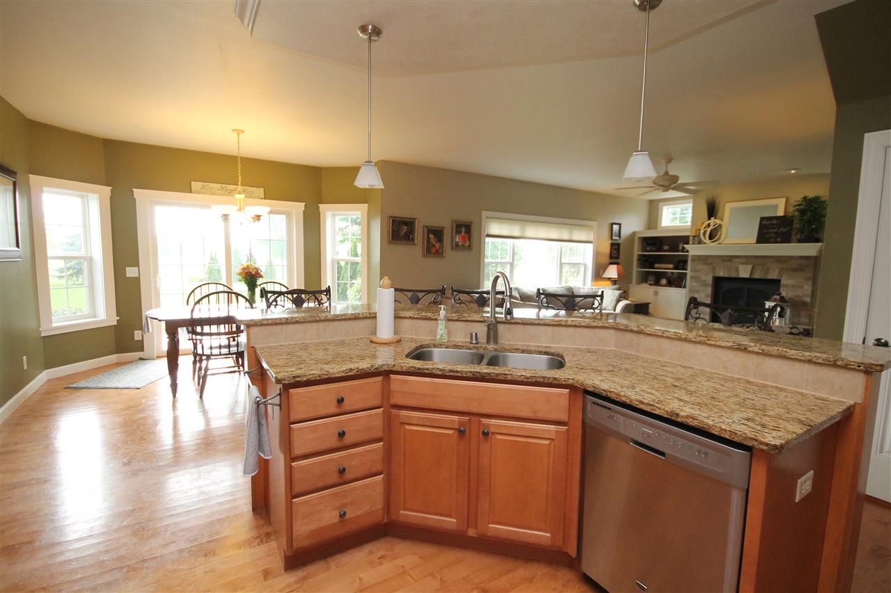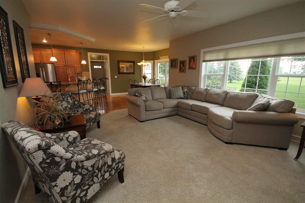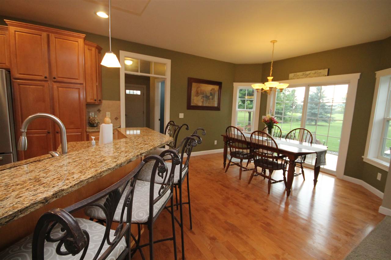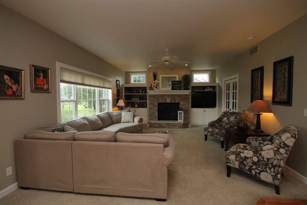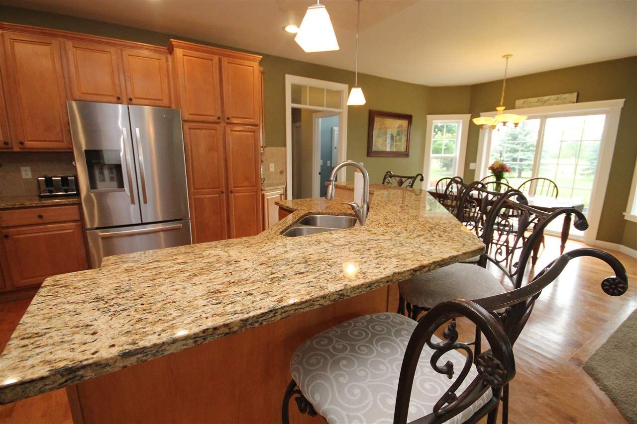 2003 Rick Grahl custom parade home showcasing an incredible design with nature’s essence! Just the right blend of elegance & simplicity describes this open concept home. Chef's grade kitchen with maple cabinets, granite countertops and island seating. Generous dining area looking out at patio & open green space. Inviting family room with built-ins, gas fireplace & seating. Additional main floor living room & home office with french doors. Home features 4 bedrooms, 3.5 bath & finished rec room in lower. Attached 3 car garage, lower stairs to garage. Town taxes, private well. A home to cherish!!
