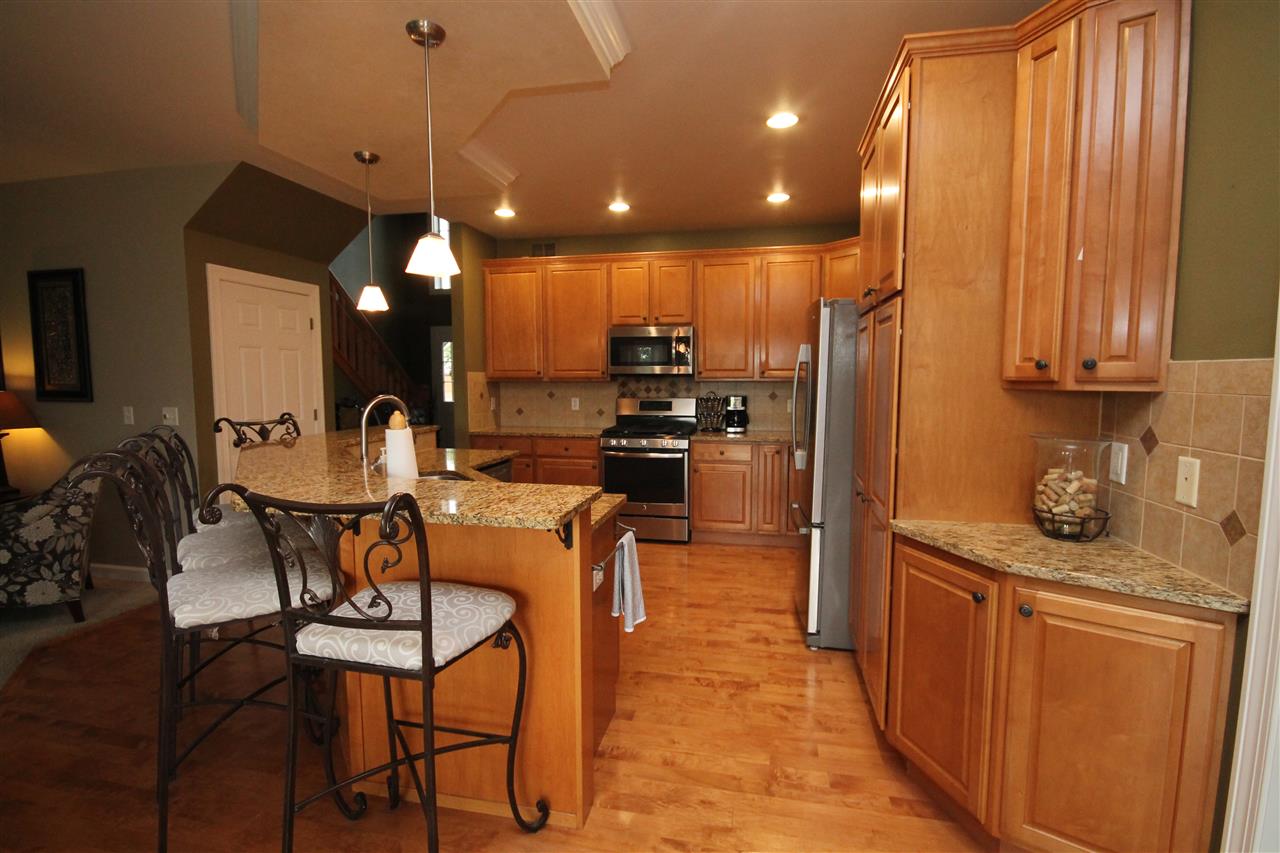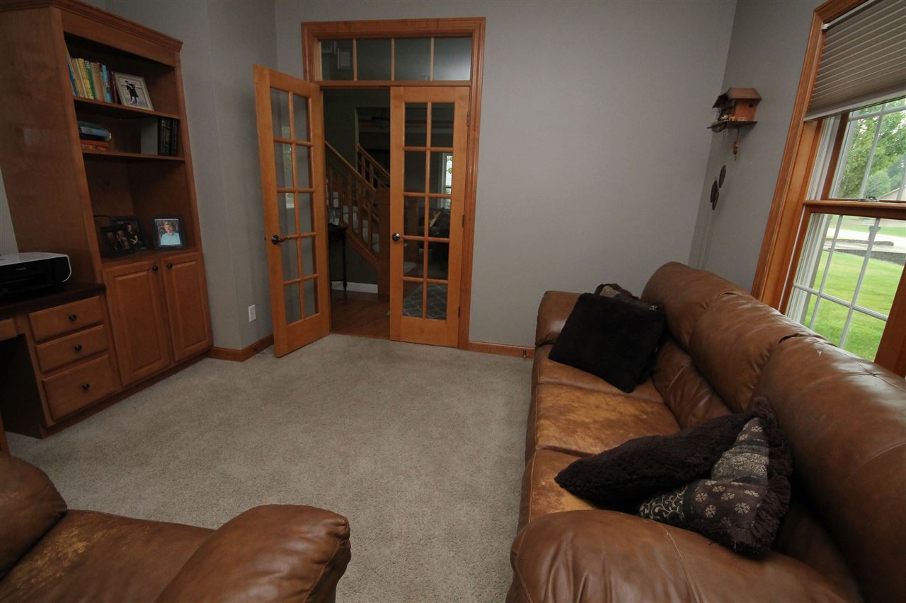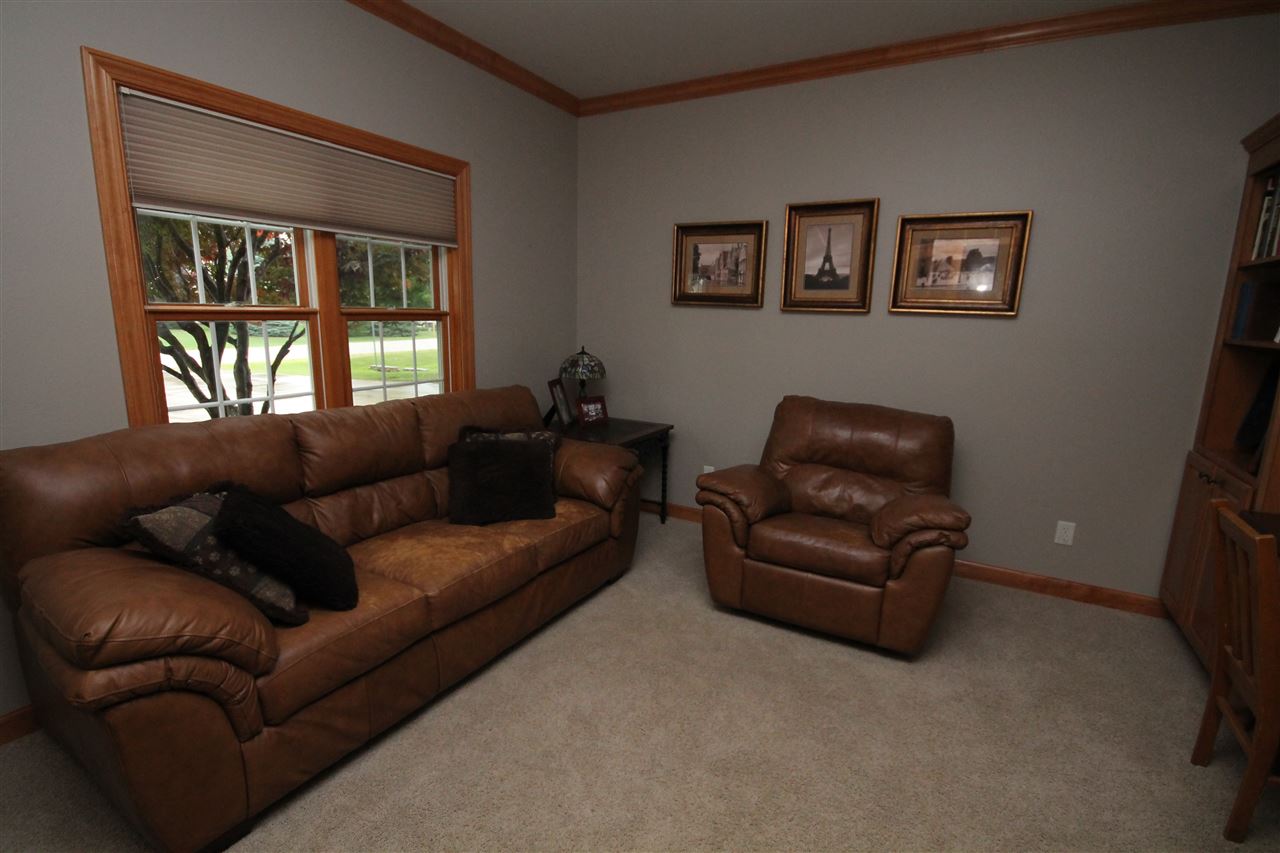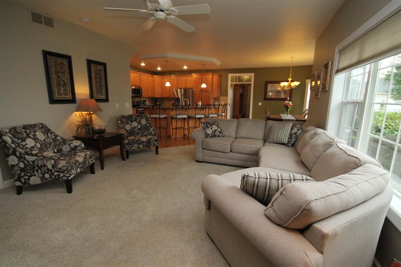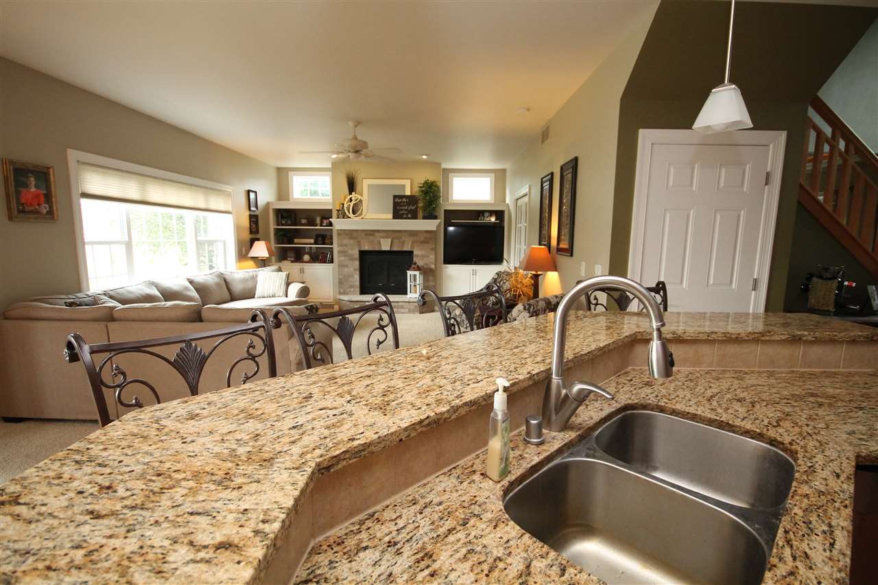 2003 Rick Grahl custom parade home showcasing an incredible design with nature’s essence! Just the right blend of elegance & simplicity describes this open concept home. Chef's grade kitchen with maple cabinets, granite countertops and island seating. Generous dining area looking out at patio & open green space. Inviting family room with built-ins, gas fireplace & seating. Additional main floor living room & home office with french doors. Home features 4 bedrooms, 3.5 bath & finished rec room in lower. Attached 3 car garage, lower stairs to garage. Town taxes, private well. A home to cherish!!