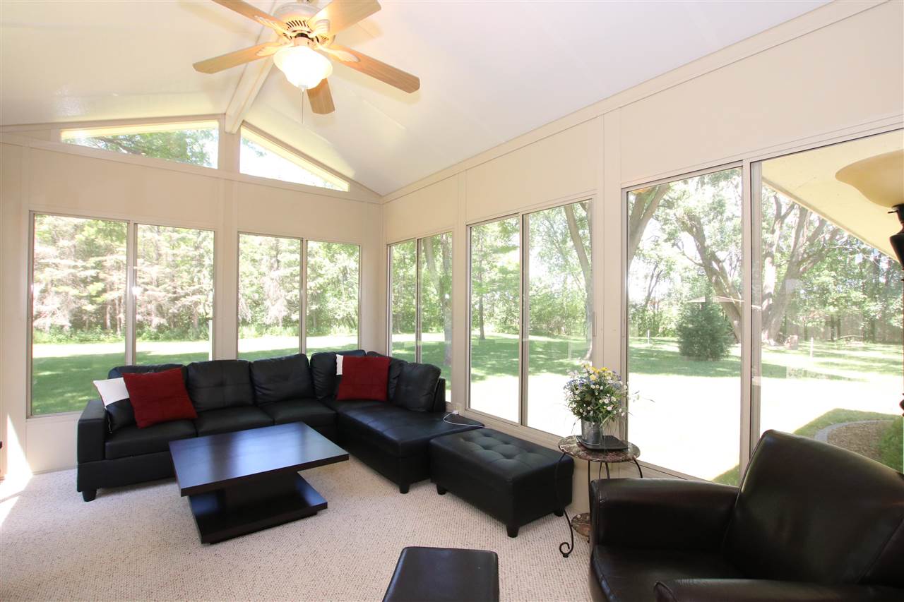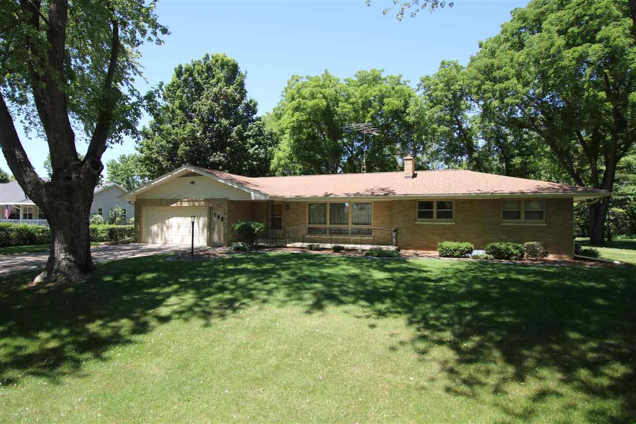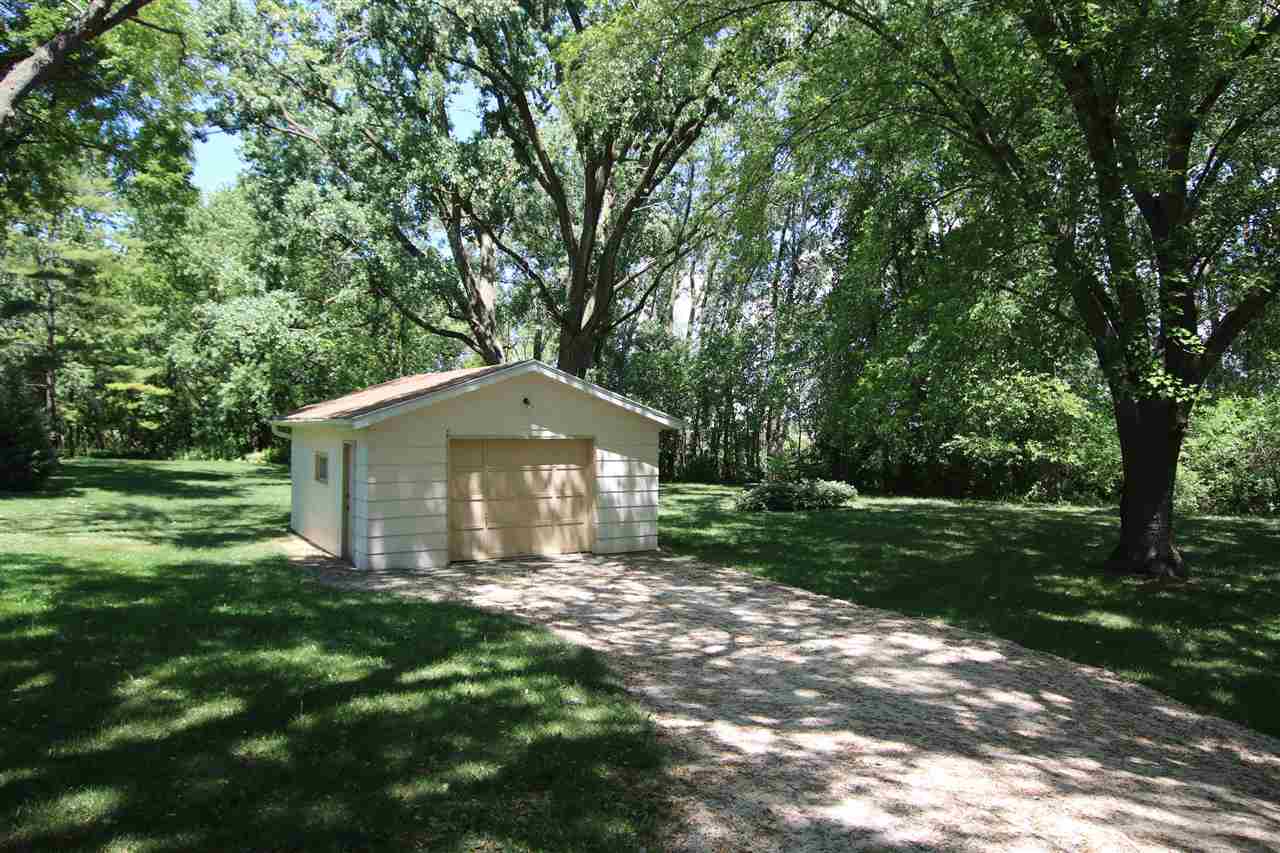 Quality built and serene location! Outskirts of town reaping all of the benefits; lower taxes, private well and city sewer, an extra garage, AND located on 1.25 acres! Enjoy fishing from your creek frontage! Large 3 BR ranch that has the potential for a 4th bedroom if desired - otherwise you have 2 great main floor living rooms. Bright and sunny 3 seasons room that you are sure to spend all of your time in! Newer roof, freshly painted, detail finished garage floor & front porch, and all appliances included. Hardwood floors, gas fireplace, finished rec room area in the LL - the list goes on!