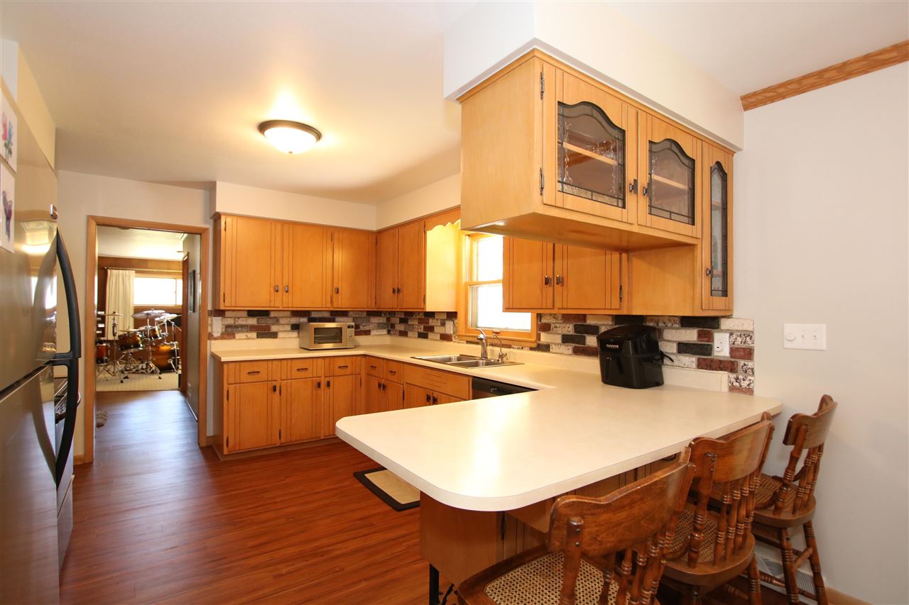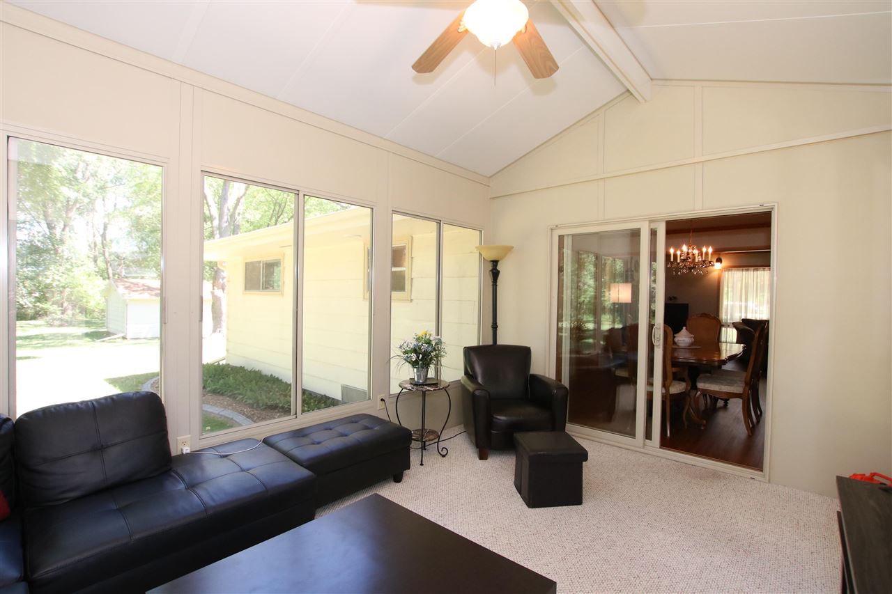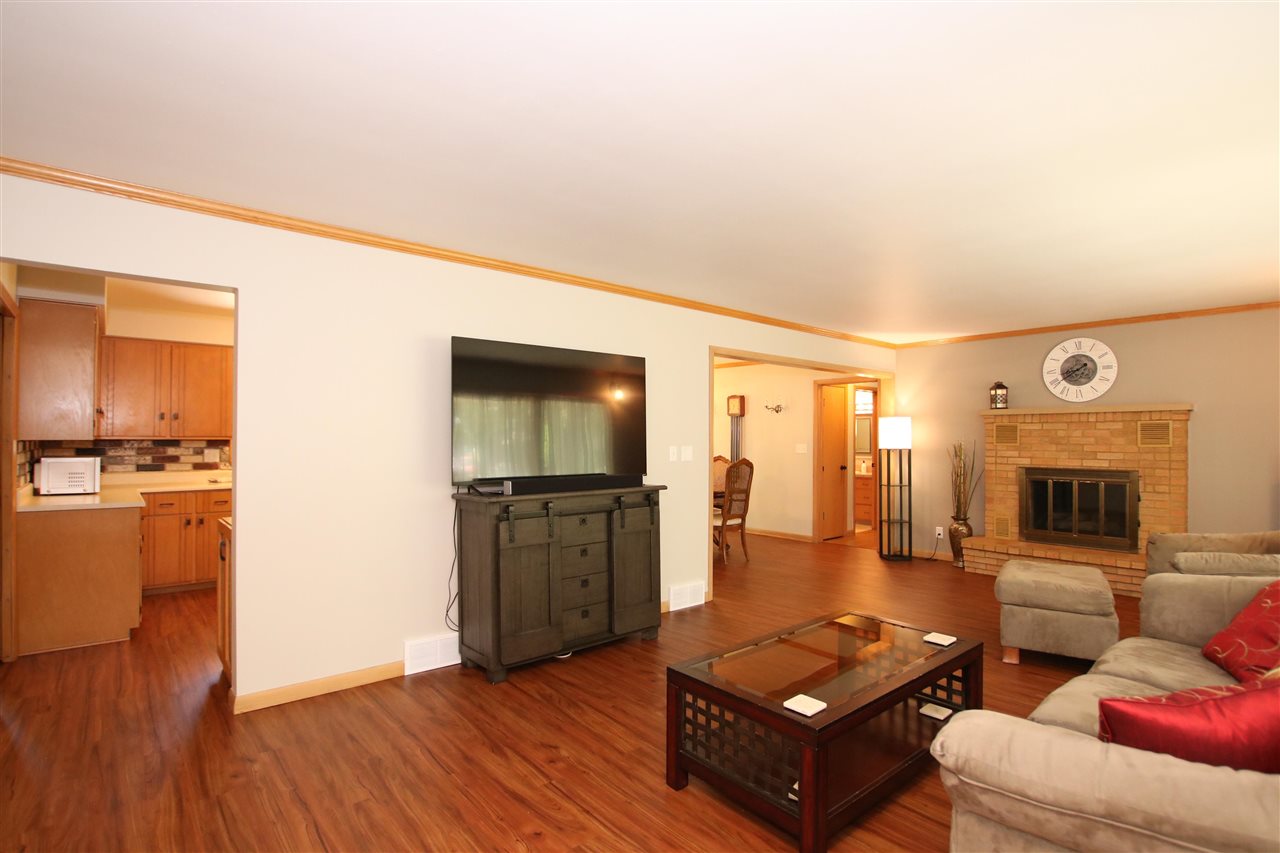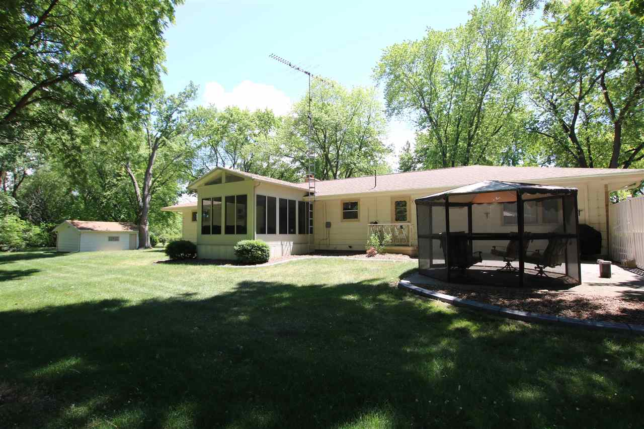 Quality built and serene location! Outskirts of town reaping all of the benefits; lower taxes, private well and city sewer, an extra garage, AND located on 1.25 acres! Enjoy fishing from your creek frontage! Large 3 BR ranch that has the potential for a 4th bedroom if desired - otherwise you have 2 great main floor living rooms. Bright and sunny 3 seasons room that you are sure to spend all of your time in! Newer roof, freshly painted, detail finished garage floor & front porch, and all appliances included. Hardwood floors, gas fireplace, finished rec room area in the LL - the list goes on!