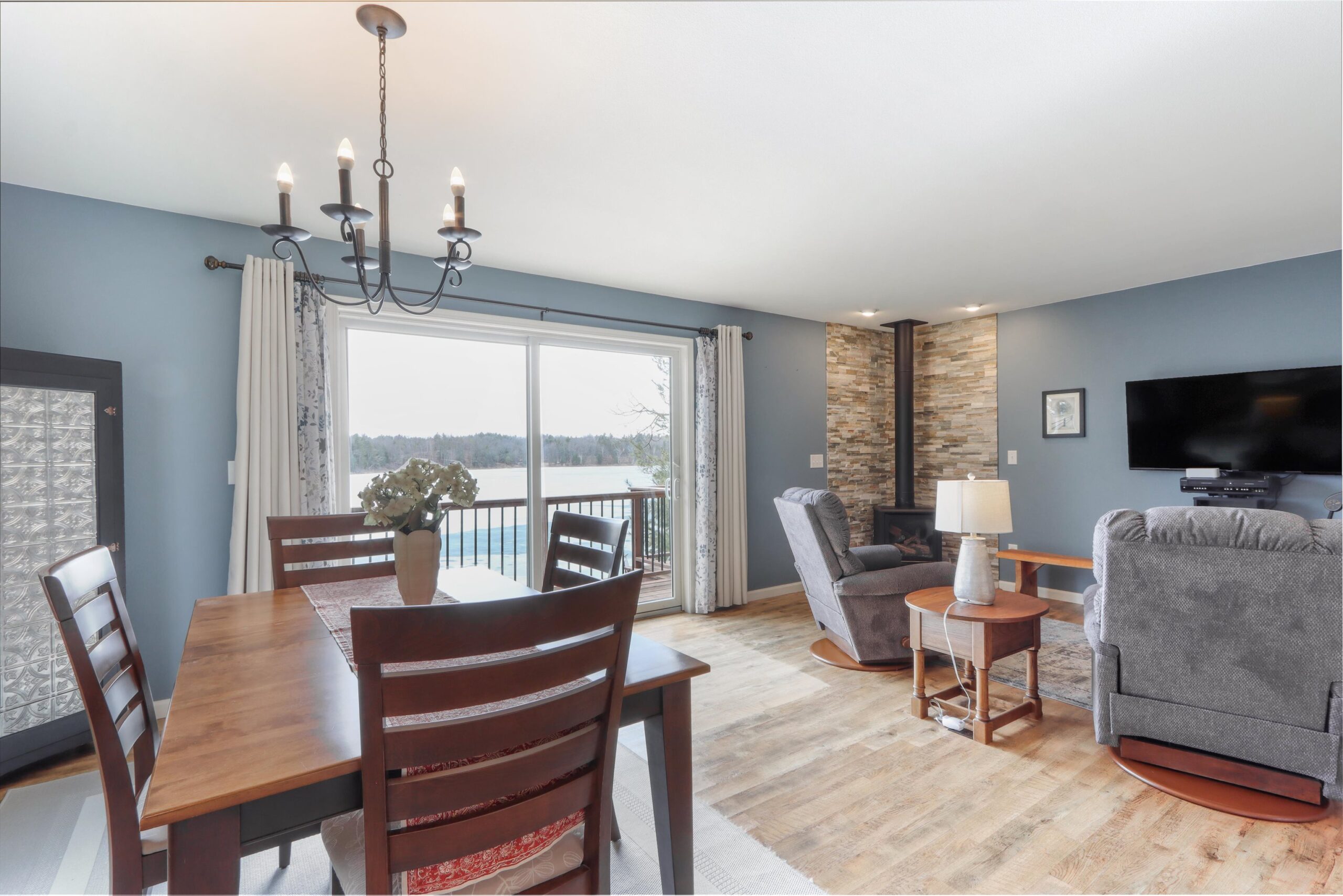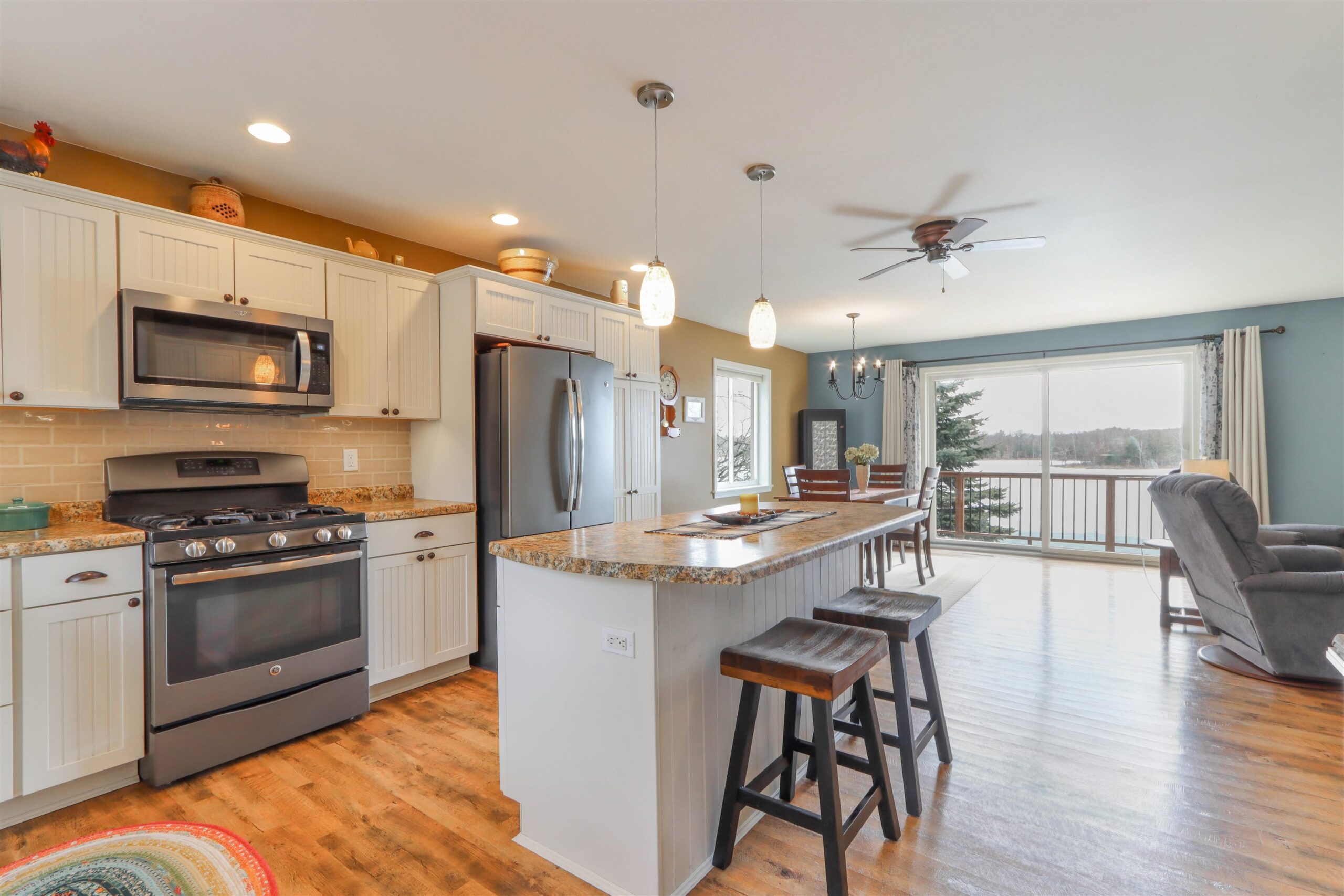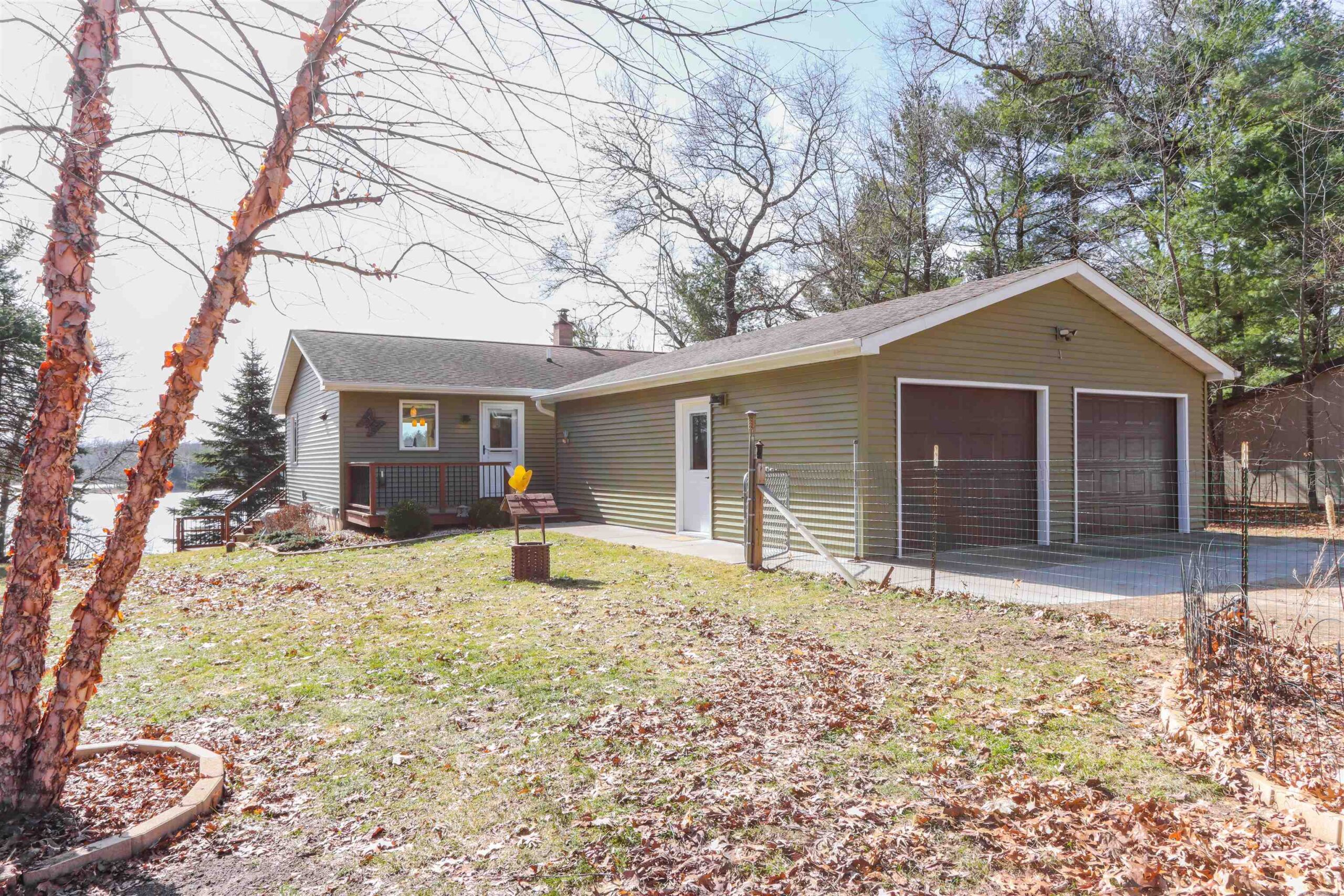 Enjoy peaceful lake living on quiet Twin Lake w/ 100ft of sand frontage! This beautifully updated ranch offers move-in ready comfort with main floor living & finished walkout lower level (painted block walls) leading to patio. Updates throughout the past decade include windows, siding, flooring, and deck. Set on a scenic half-acre parcel, the property features a detached 2.5-car garage, 22x16 shed, chicken coop/run, and a charming potting shed (all w/ electricity!) surrounded by established gardens & beautiful perennial landscaping (raspberry bushes & plum trees). No-wake lake ideal for pontooning, fishing, kayaking, and relaxing days on the water. This meticulously maintained year-round home has great storage space throughout, gas fireplace upstairs, wood-burning stove in lower level.