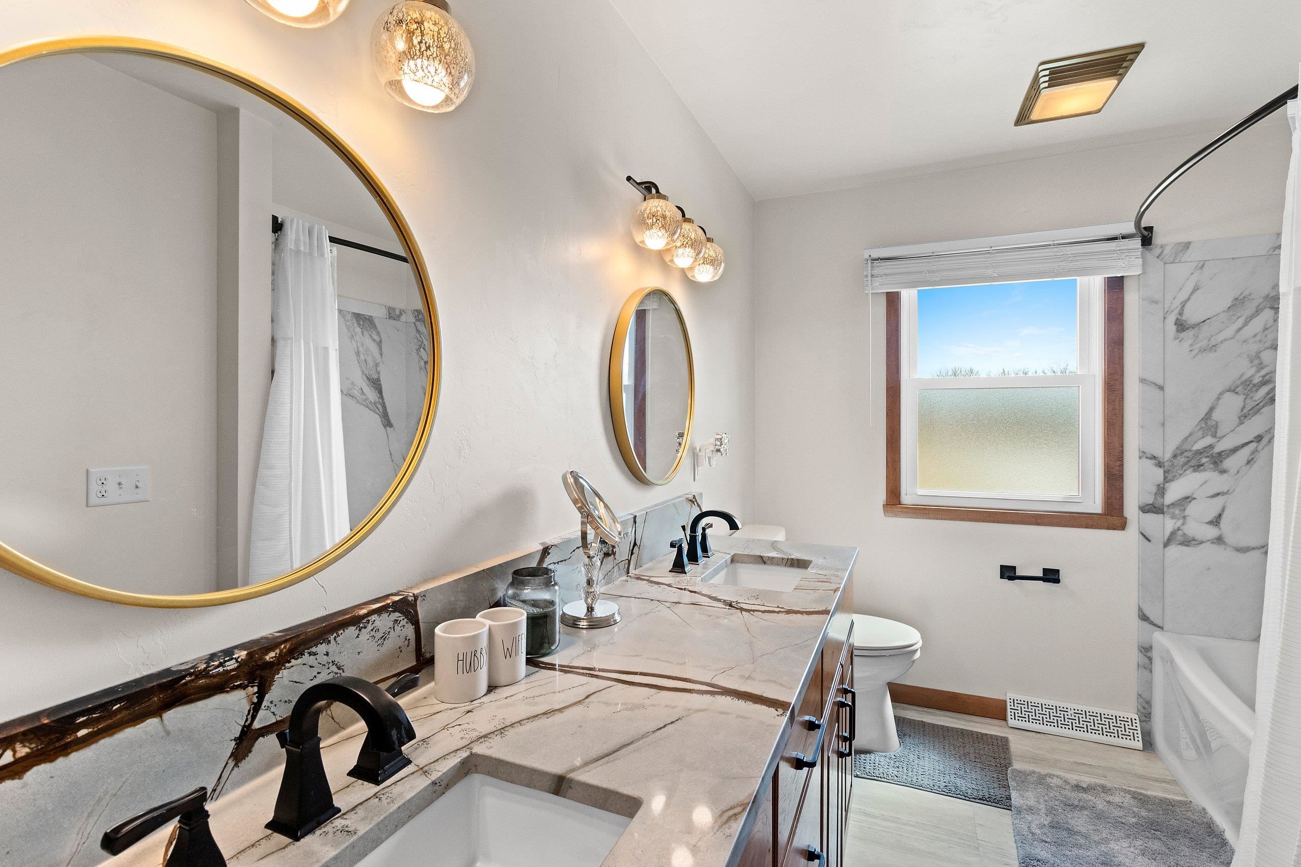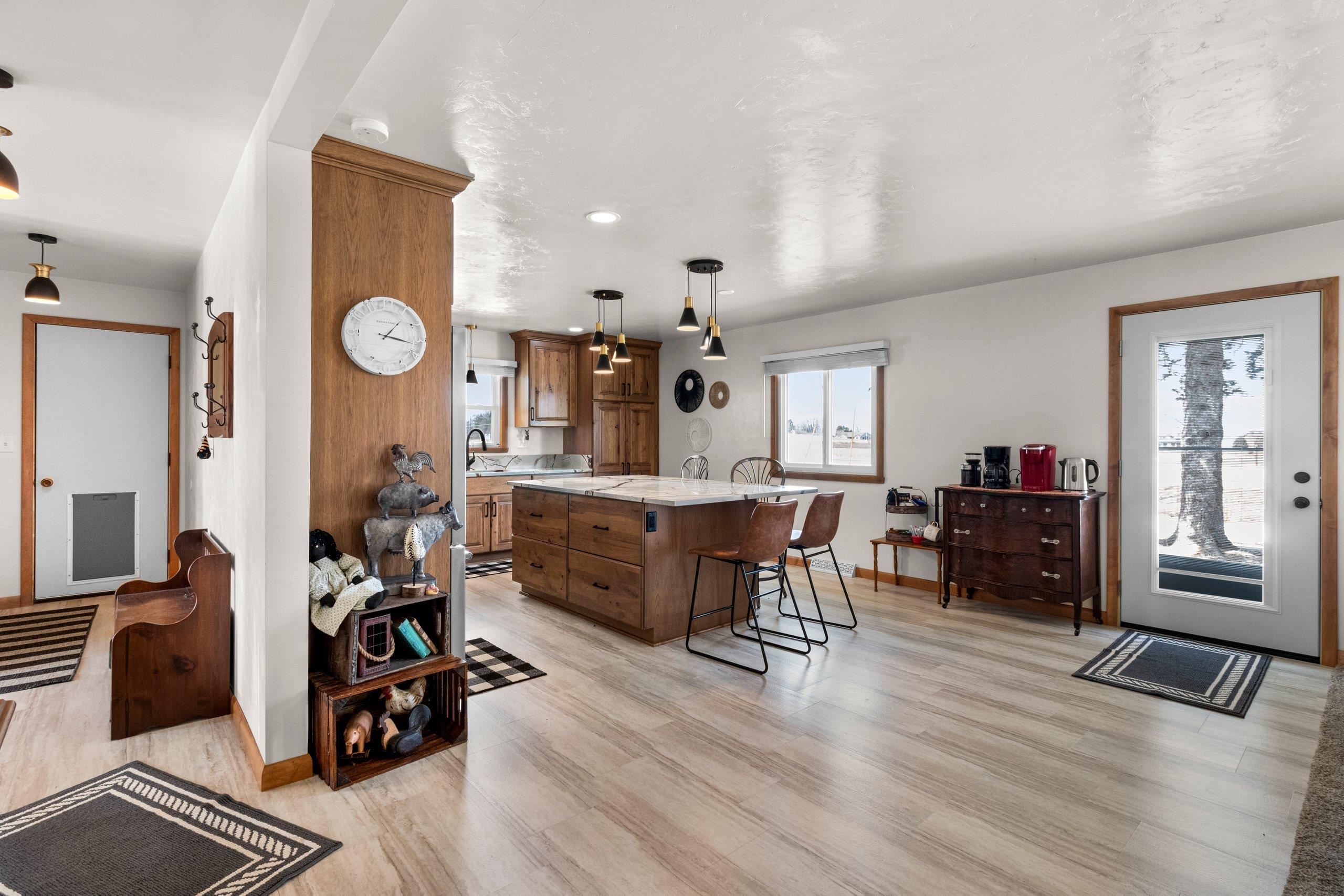 This one-of-a-kind property offers incredible versatility with two parcels, two homes, three garages, and a finished office shed, all set on over 2 scenic acres with a creek running through the property. The main home features 3 bdrms and 2 full baths and has been completely remodeled, showcasing high-end finishes throughout. The custom-designed kitchen is a true centerpiece, beautifully coordinated with the bathrooms and laundry room, all featuring granite countertops and high-end appliances. Additional upgrades include new windows, furnace, and A/C, along with thoughtful details at every turn. 2-car attached garage, an additional carport, and a second detached garage, also 16x40 mini barn/shed. Along with a 2-3 bdrm Mobile home for quests or rental opportunity.
