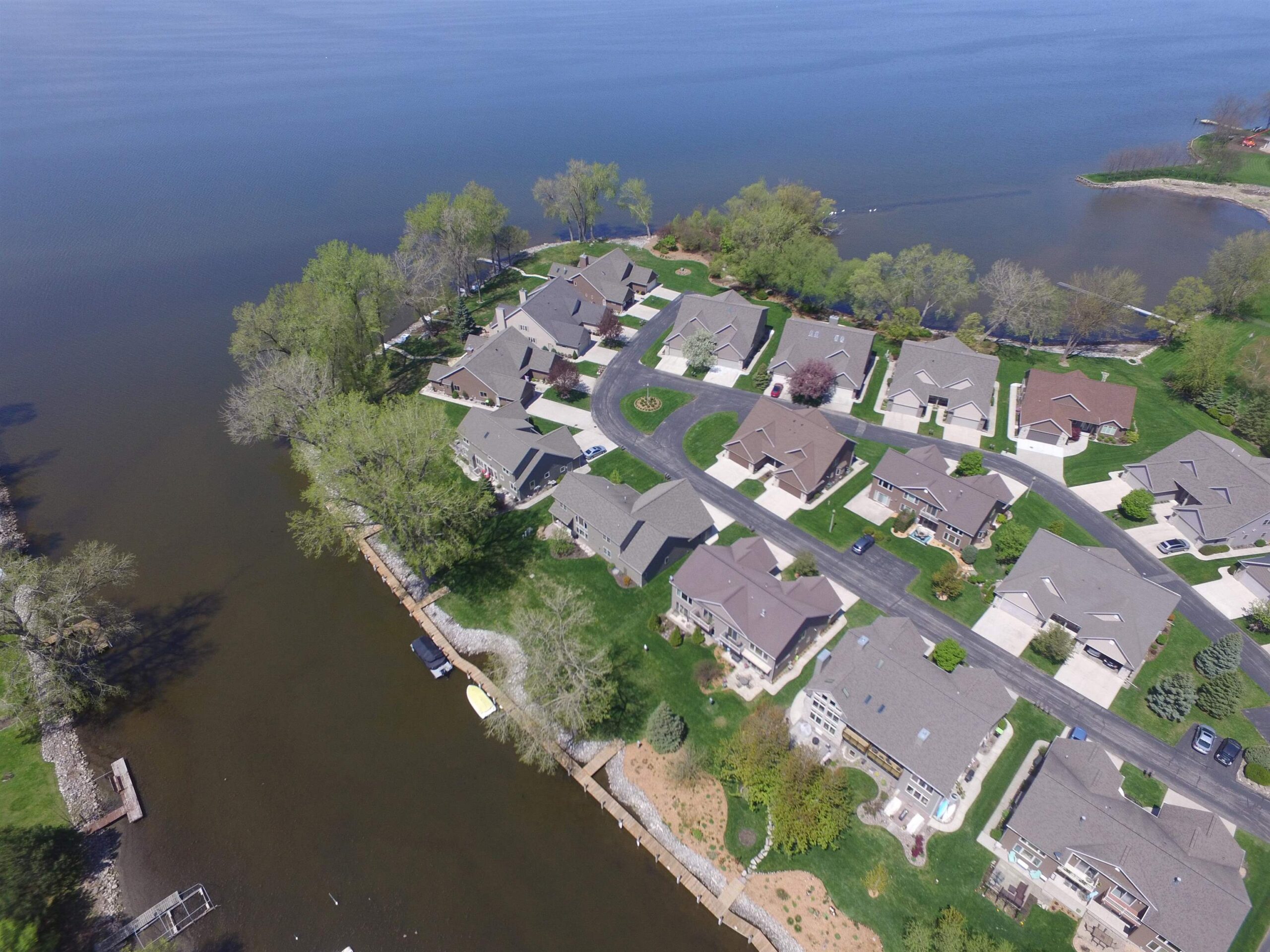 Have it all with this FREE STANDING HOME within the Bay Pointe Shores Condo Association with common areas of lake & channel frontage, boat launch area & docks for owners. A superior 3-4 bedroom & 2.5 bath condo with a ton of upgrades! This trendy condo is highlighted by a dramatic 2 story living room with great natural light & views for miles. A smartly styled kitchen with island & stainless appliances plus a completely renovated master suite with tiled walk-in shower, double vanity, & a huge walk-in closet. A sunny office/den & laundry complete this floor. Upper bedrooms & bath are connected by a dramatic open hallway. Wow...a 3 car garage with a tandem space can easily hold a 4th vehicle or your boat! The pretty patio with lighthouse views will mark the end of a perfect day!