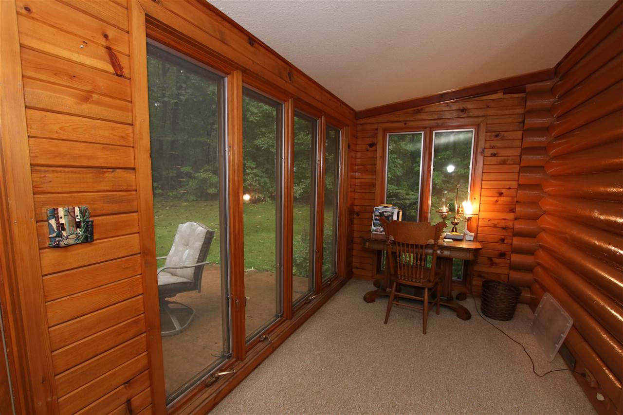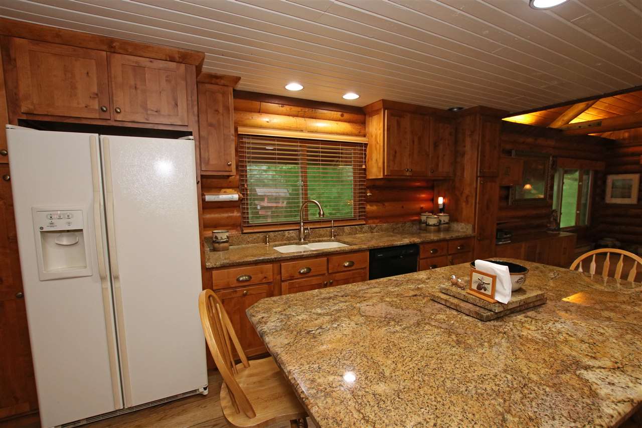 This property is your slice of privacy and wooded heaven all rolled into one! Enjoy a log home lifestyle & take advantage of a 24 x 36 outbuilding for storage complete with a heated section in back. Home features a custom Amish kitchen with granite countertops, double ovens, huge island for food prep. Great room with wood fireplace & plenty of space for your trophy mounts. Other features include main floor laundry, huge sunken master on the main, central vac, & attached finished garage for workshop or convert to sleeping space. Smell the campfire & pass the smores! Internet is available.