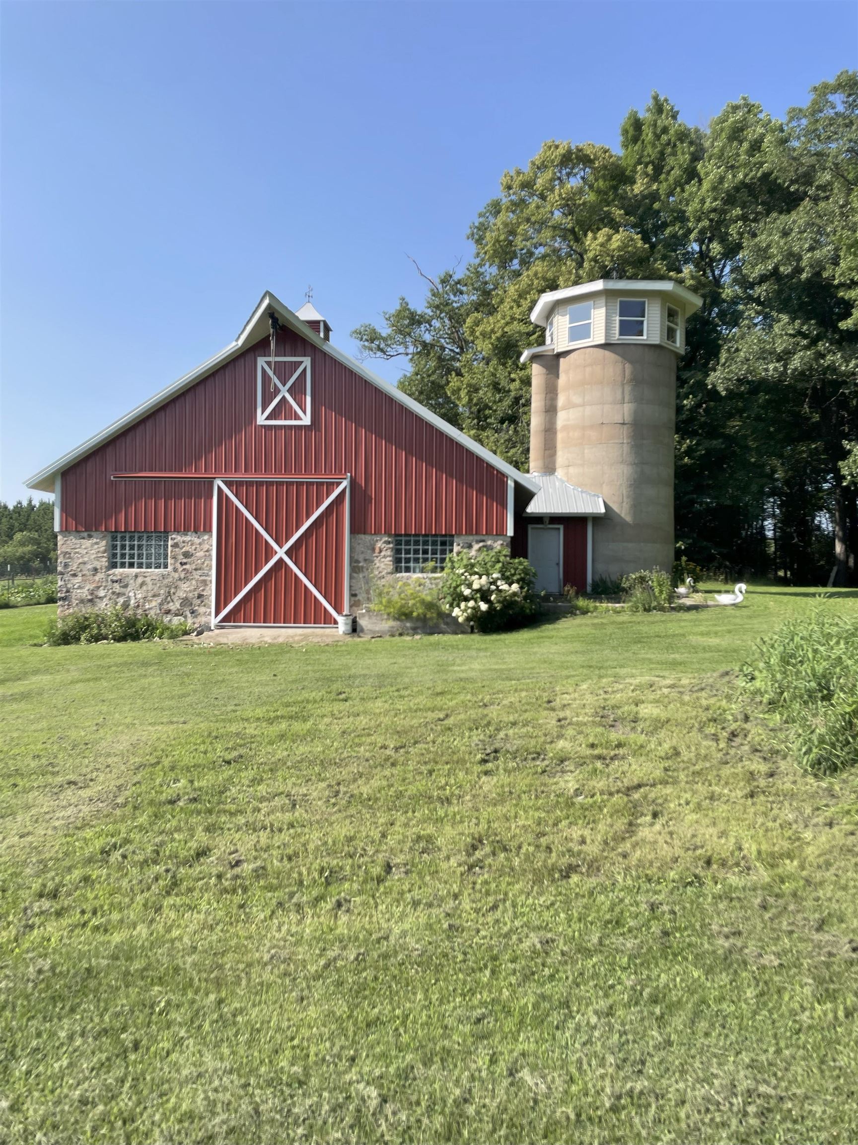 This property is full of opportunity for recreational fun. 40.5 acres of excellent hunting land with trails throughout offering endless ATV riding in the summer and snowmobiling in the winter. Fish, swim, tube and kayak the nearby Pike and Menominee rivers. The farmhouse features four bedrooms, kitchen, dining room, living room, a full bathroom, mudroom and basement with laundry. The house has been updated with maintenance-free vinyl siding and thermal pane windows in 2019. The well and septic system installed new in 2006. Overflow guests can be accommodated in a cozy knotty pine bunk house that can sleep six. A modern steel building sits atop the 48ft X 34ft stone barn foundation. Great for toys or animals. A gazebo sits on top of the 3-floor silo with spiral stairs for entertaining.