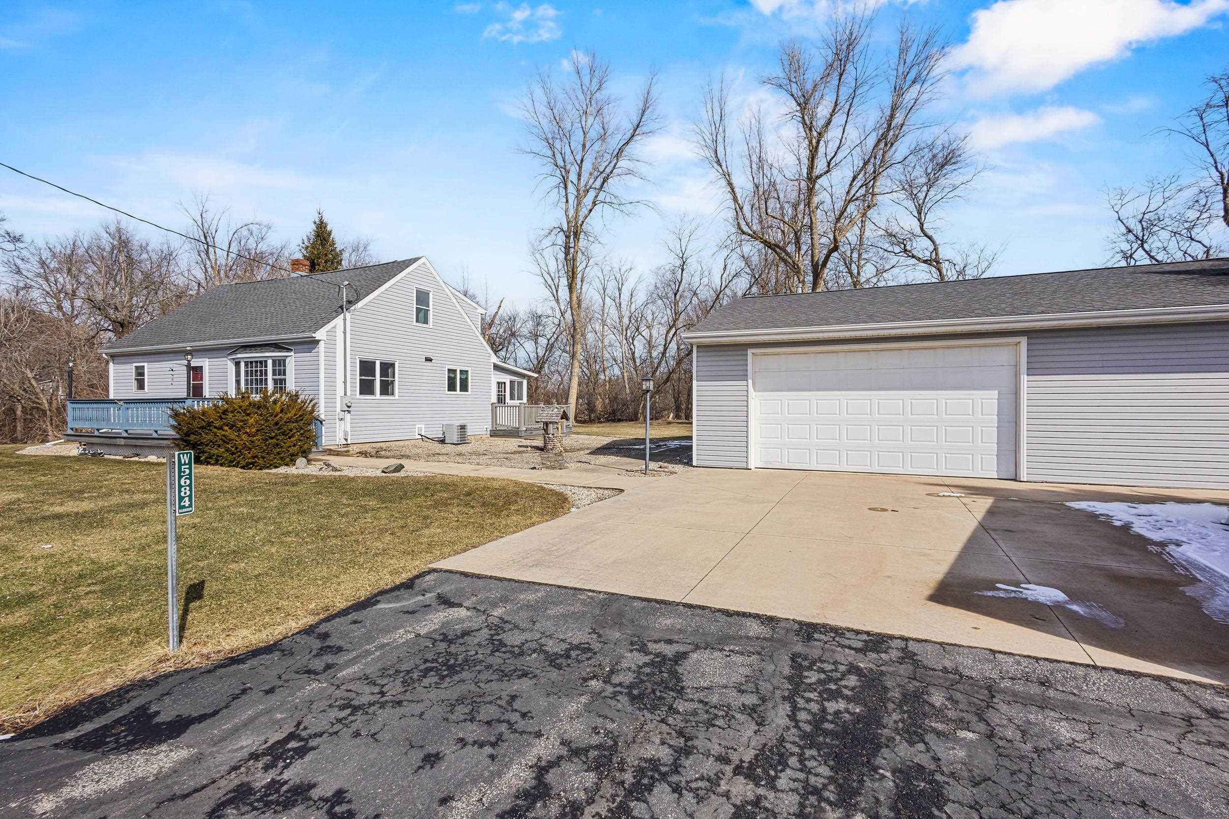 Situated on 1.23 wooded acres across from Lake Winnebago and a public boat launch/snowmobile trail, this Cape Cod offers privacy with convenience. Enjoy a peaceful ravine backdrop while still being close to everything. Inside you’ll find two main floor bedrooms and two upstairs, a nice eat-in kitchen with a full appliance package, main floor laundry, and a functional back mudroom/sunroom entrance. Need garage space? You’ve got it - two detached garages totaling 4 stalls, including a 3-car insulated and heated garage with surround sound and a pull-through door. Well & septic. The setting, space, and potential here are undeniable. Located in Menasha with Village of Harrison taxes - country feel with everyday convenience. Some images virtually altered. No offers will be presented until 3-9-26