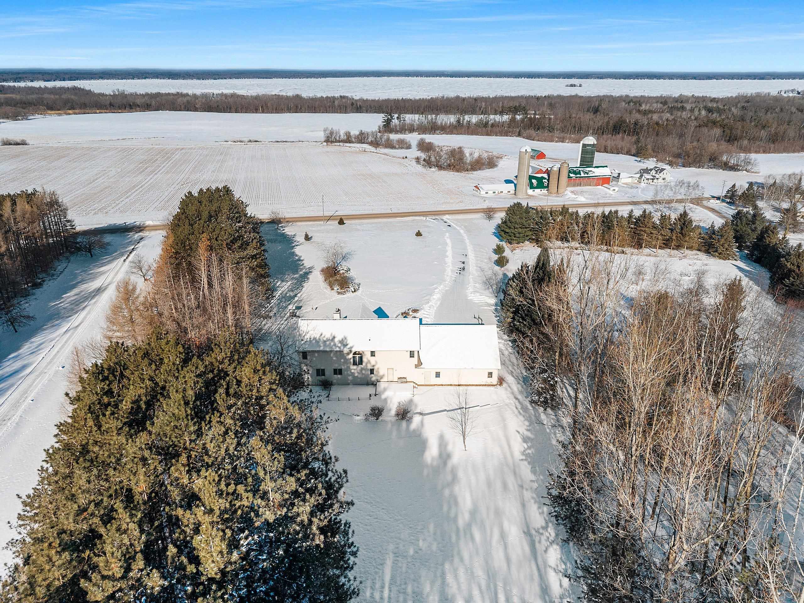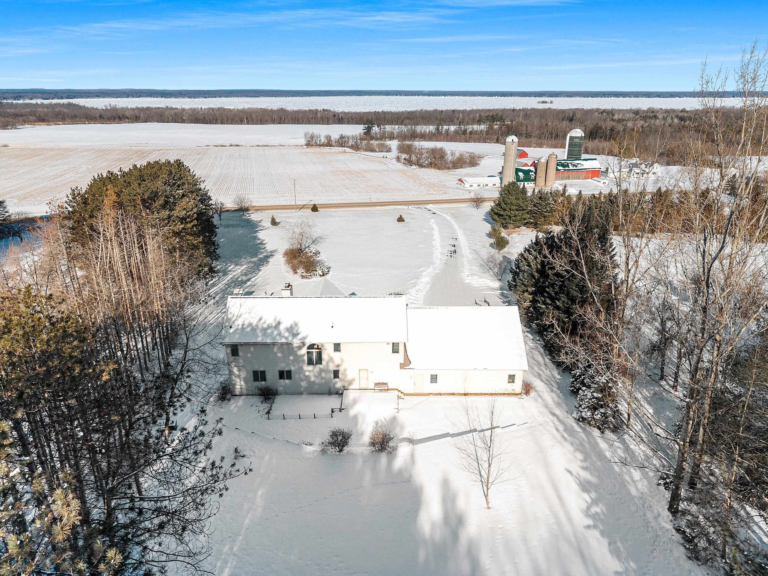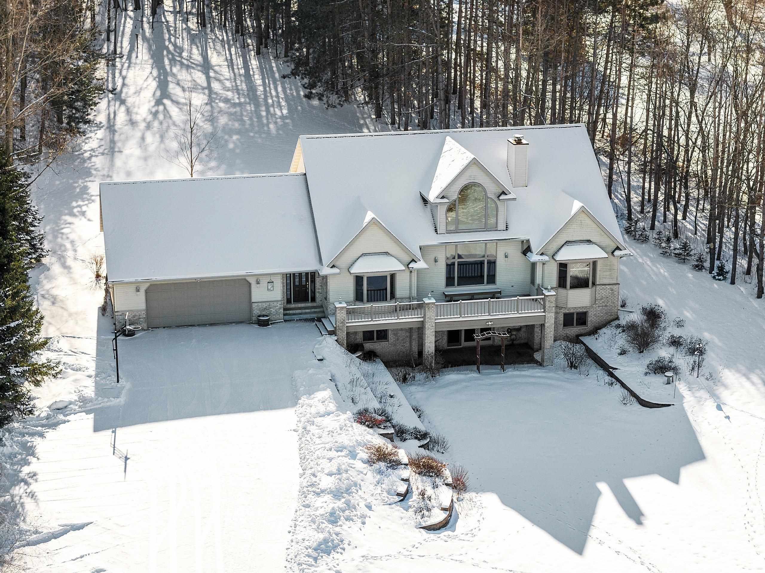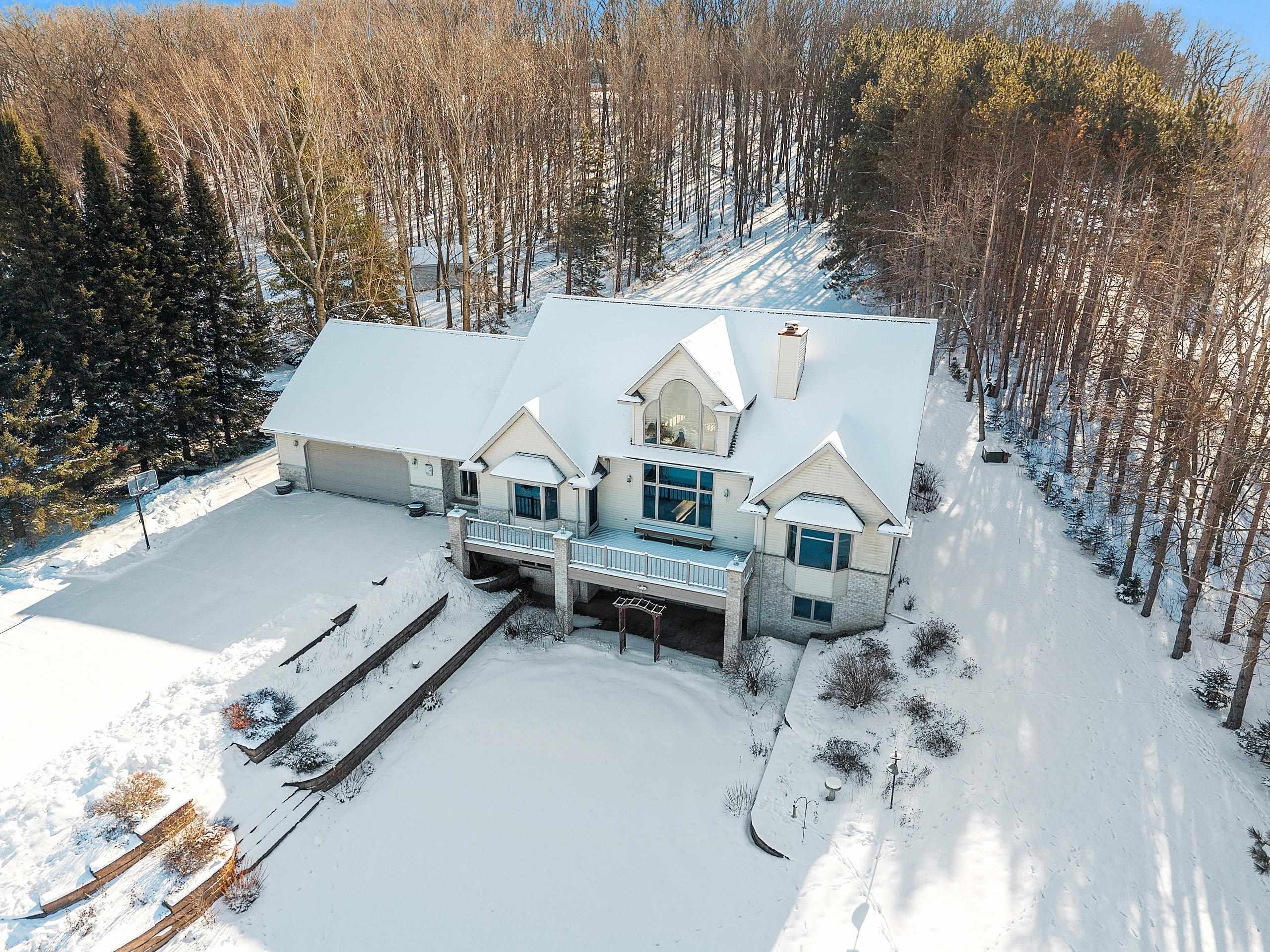 Picturesque views and landscape, beautiful Custom Designed home, and acreage, await the second owner of this meticulously maintained 1.5 Story Home. The 2.59 acres of picturesque landscaped, tree lined with privacy, the gorgeous sunsets and views of Shawano Lake you’ll find absolutely amazing! In this home you’ll find something for everyone, 4 generously sized bedrooms all with spacious walk-in closets, 3 large full baths, a half bath, the beautiful great room with magnificent wall of windows and gas fireplace, the walk-out family room with pellet stove, huge bonus room, oversized attached garage, workshop space in lower level with garage access, 2 large decks to with amazing views, all the birds, and wildlife provide unlimited space for every desire. The best of country living, with c