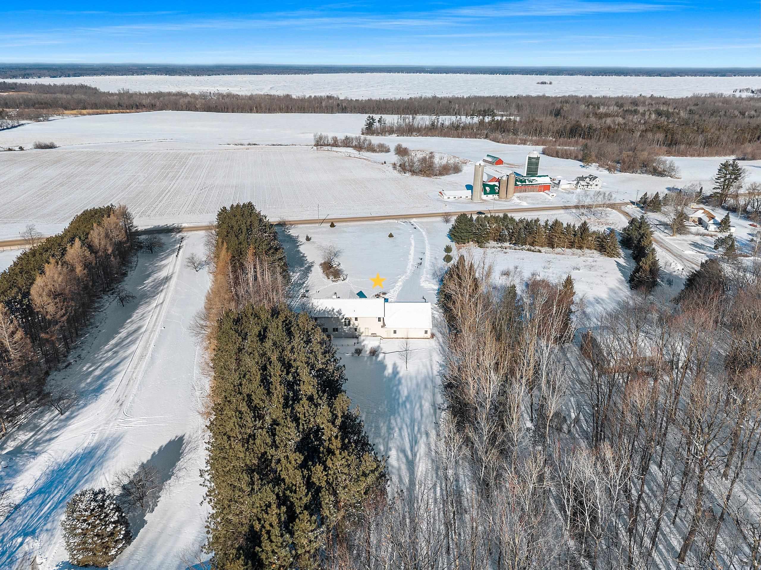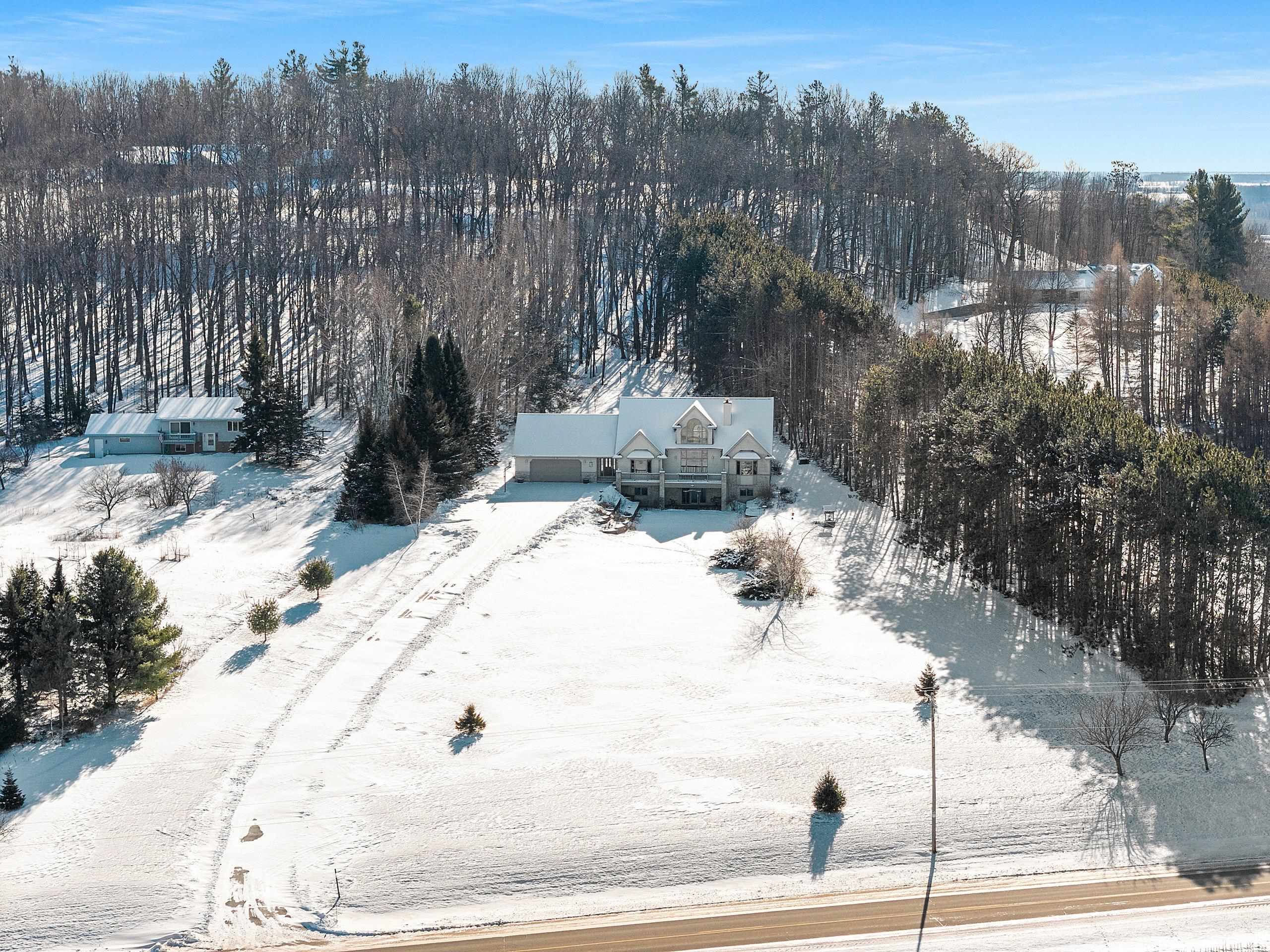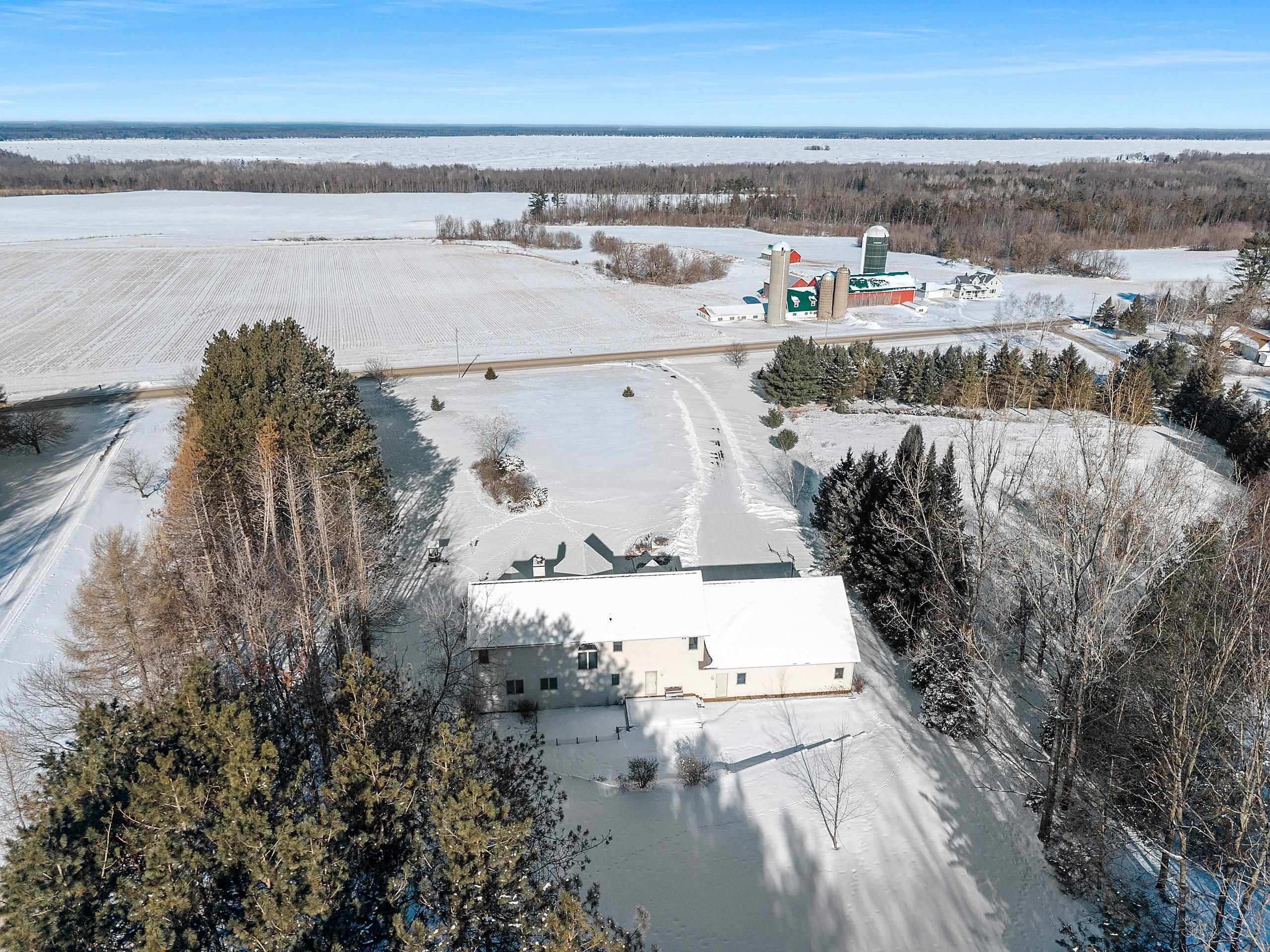 Picturesque views and landscape, beautiful Custom Designed home, and acreage, await the second owner of this meticulously maintained 1.5 Story Home. The 2.59 acres of picturesque landscaped, tree lined with privacy, the gorgeous sunsets and views of Shawano Lake you’ll find absolutely amazing! In this home you’ll find something for everyone, 4 generously sized bedrooms all with spacious walk-in closets, 3 large full baths, a half bath, the beautiful great room with magnificent wall of windows and gas fireplace, the walk-out family room with pellet stove, huge bonus room, oversized attached garage, workshop space in lower level with garage access, 2 large decks to with amazing views, all the birds, and wildlife provide unlimited space for every desire. The best of country living, with c