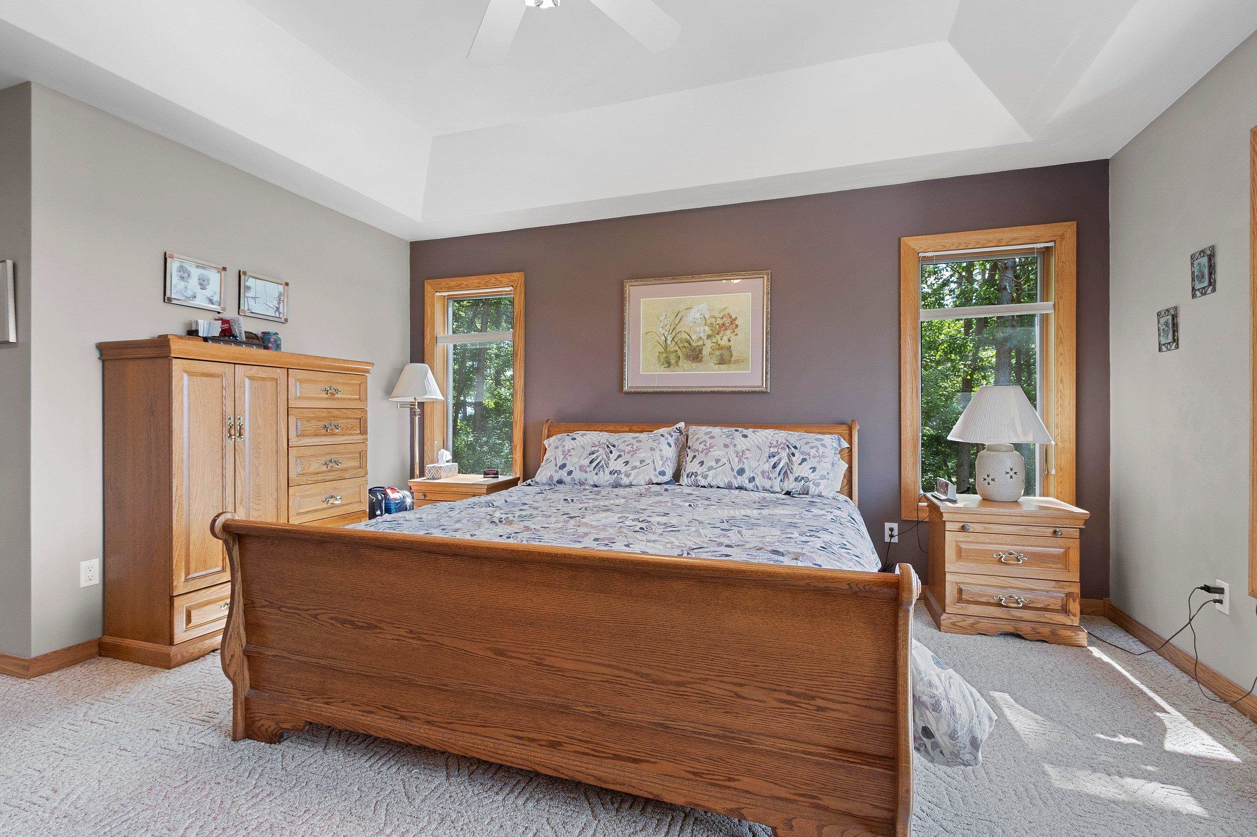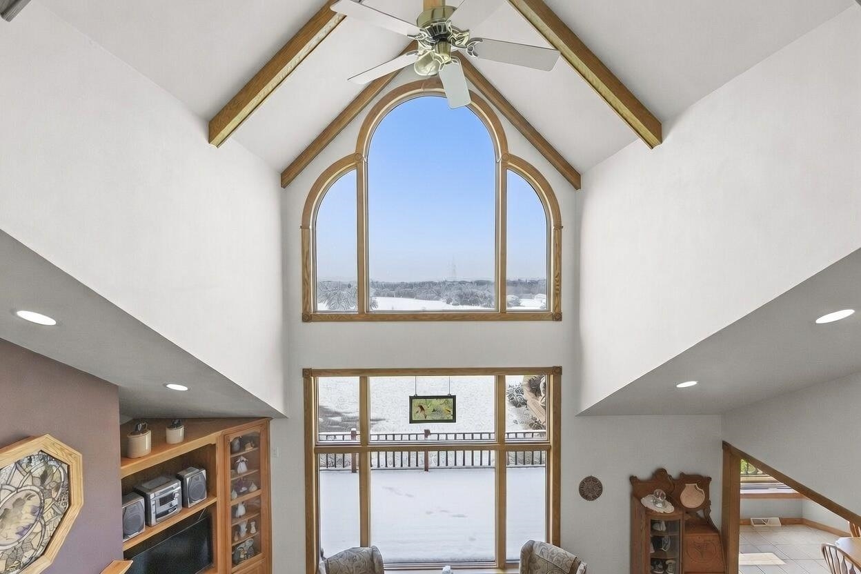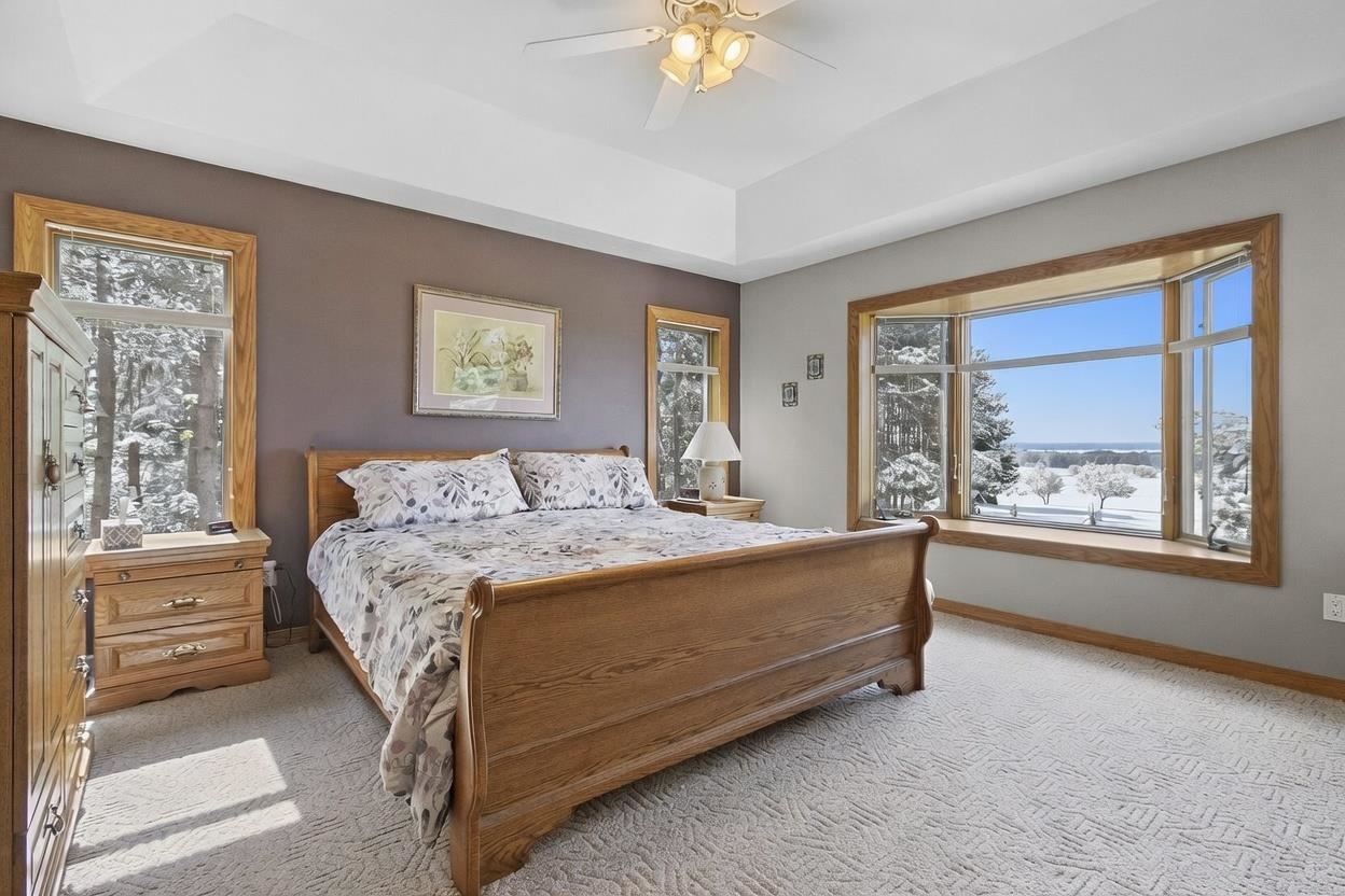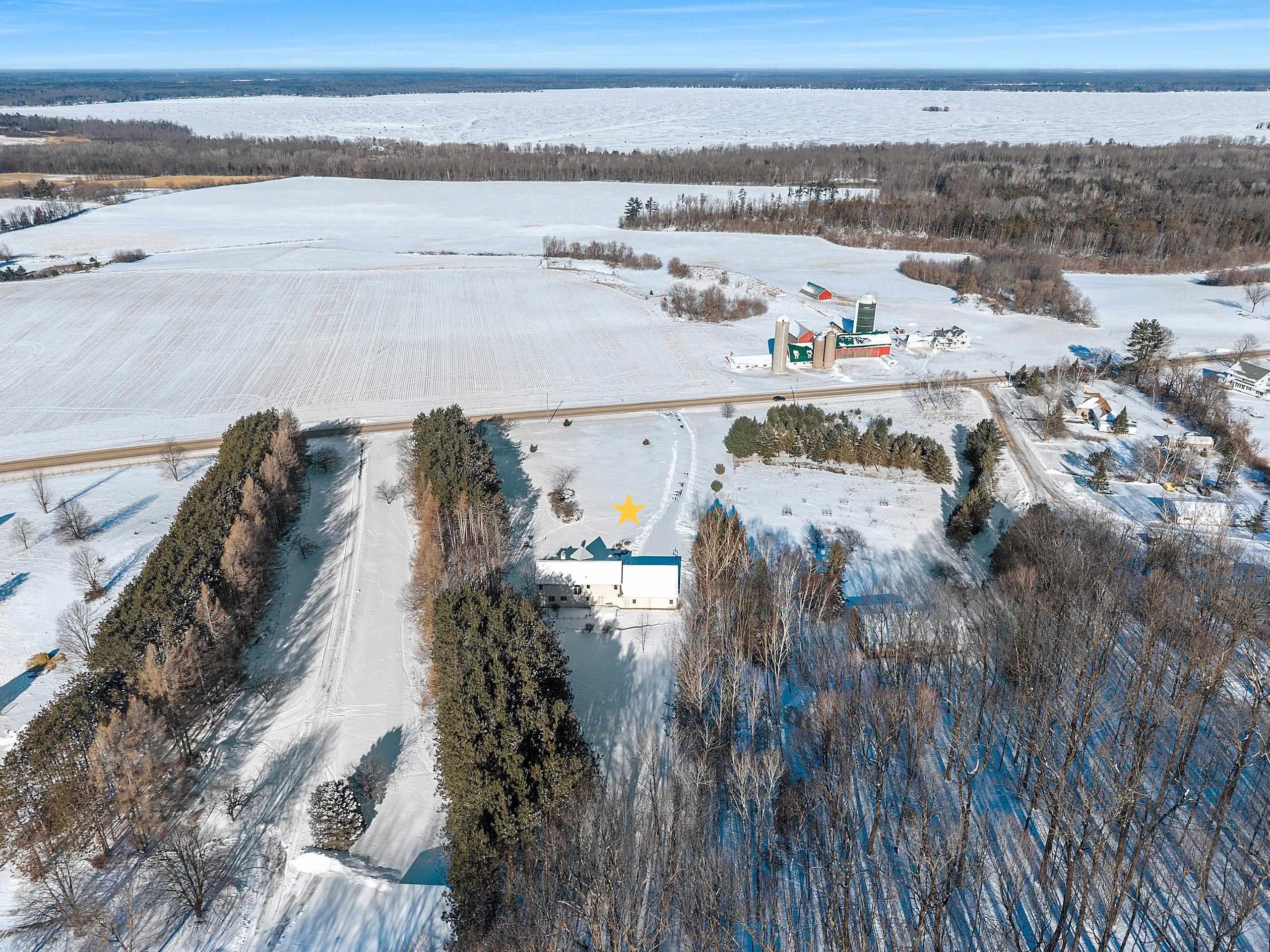 Picturesque views and landscape, beautiful Custom Designed home, and acreage, await the second owner of this meticulously maintained 1.5 Story Home. The 2.59 acres of picturesque landscaped, tree lined with privacy, the gorgeous sunsets and views of Shawano Lake you’ll find absolutely amazing! In this home you’ll find something for everyone, 4 generously sized bedrooms all with spacious walk-in closets, 3 large full baths, a half bath, the beautiful great room with magnificent wall of windows and gas fireplace, the walk-out family room with pellet stove, huge bonus room, oversized attached garage, workshop space in lower level with garage access, 2 large decks to with amazing views, all the birds, and wildlife provide unlimited space for every desire. The best of country living, with c