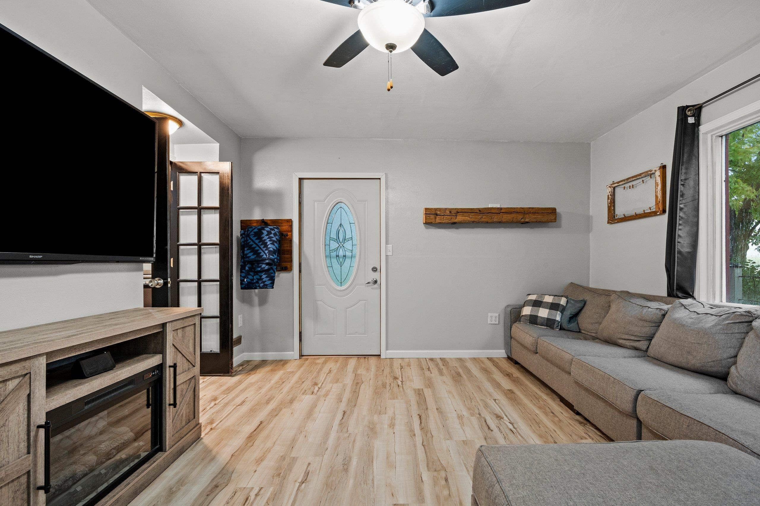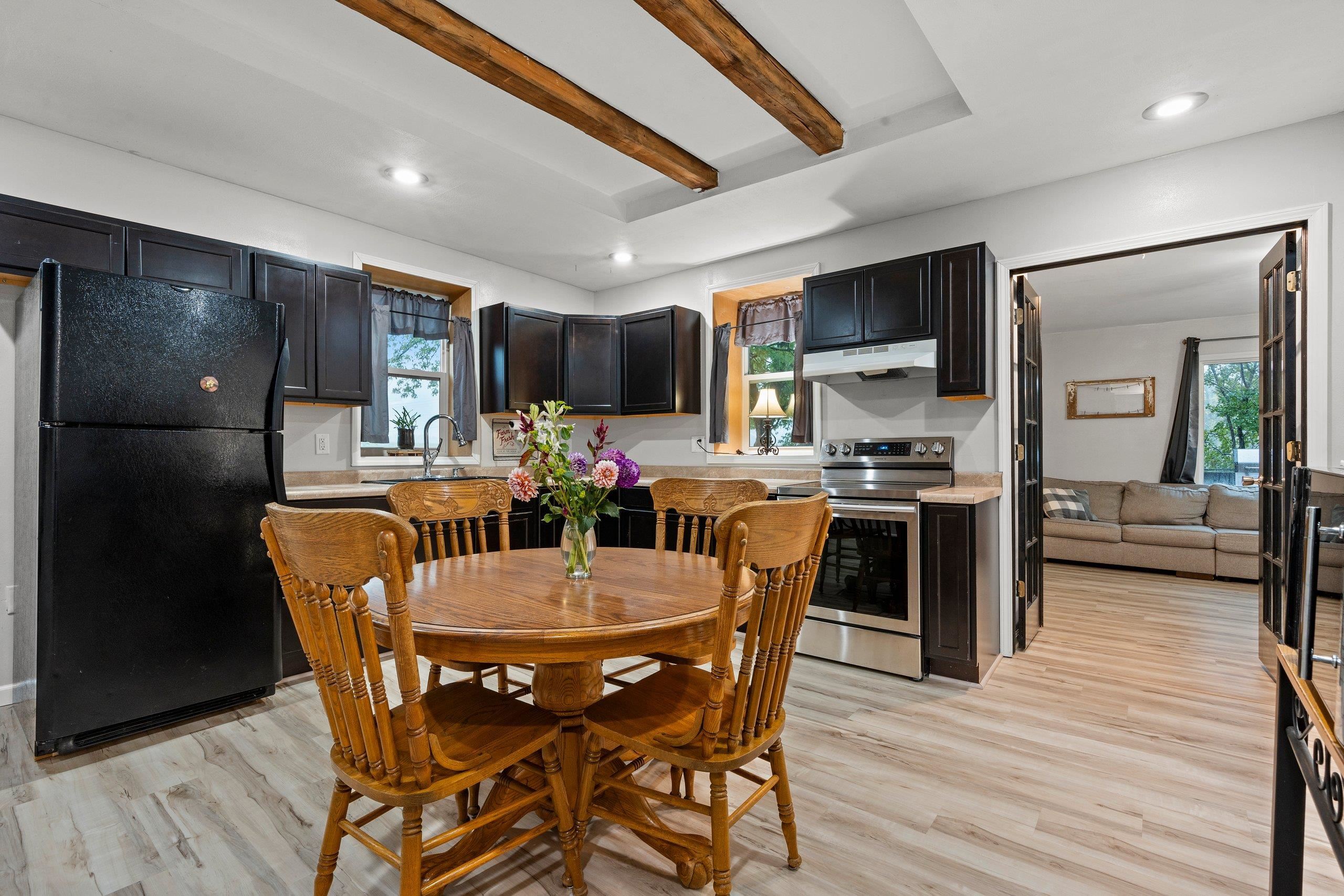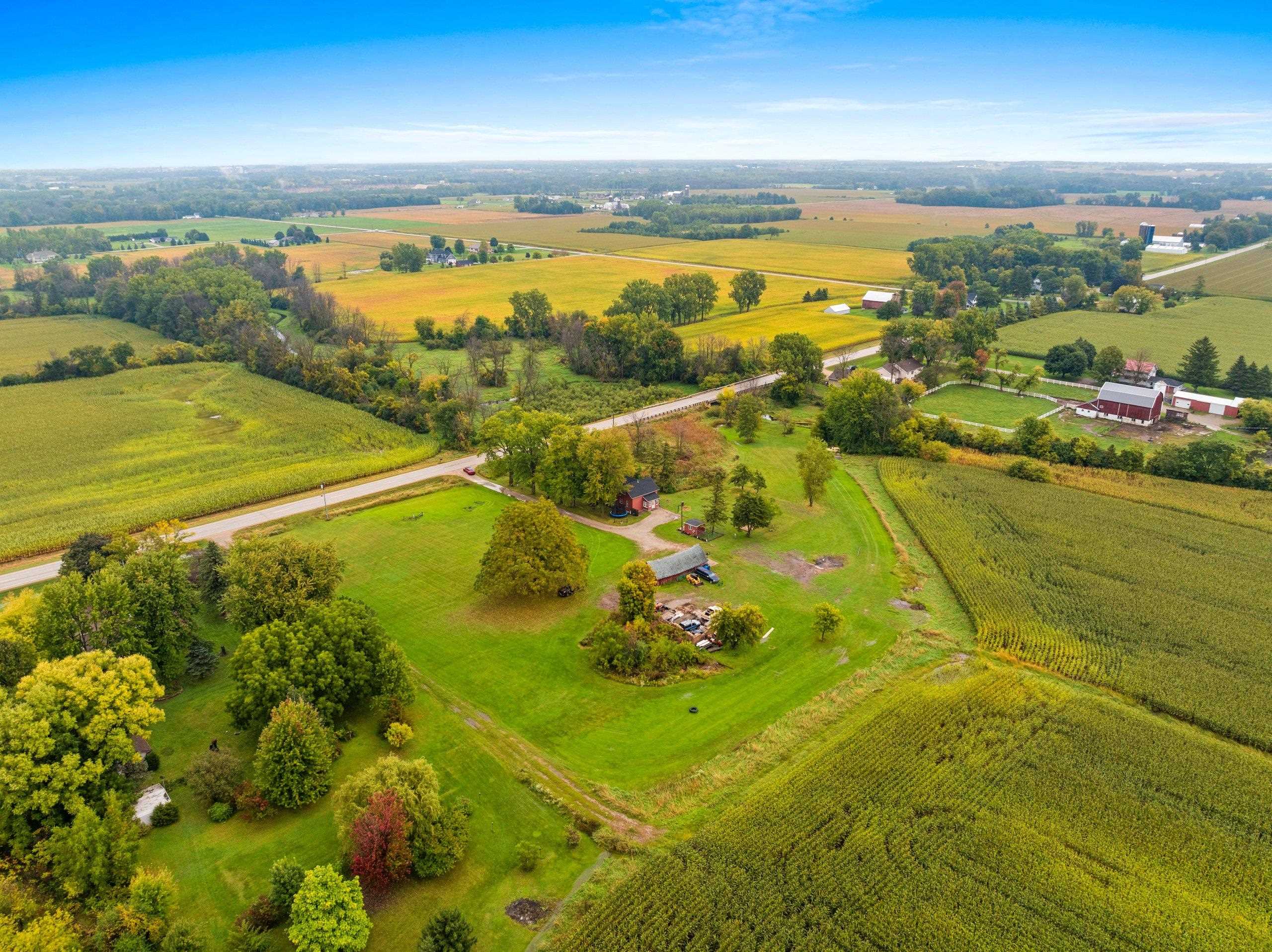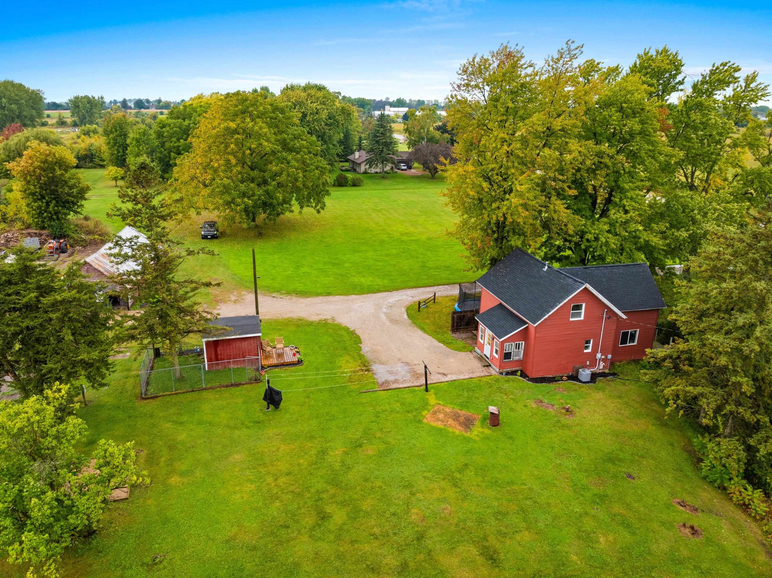 This charming farmhouse sits on a spacious 1.59-acre private lot with peaceful countryside views, and no backyard neighbors! You’ll find a welcoming layout with updated flooring and convenient first-floor laundry. The main level also features a cozy living room, large kitchen and full bathroom. Upstairs, you will find all three bedrooms. On the outside, there is a shed/outbuilding with power ran to it. Super convenient for storage, animals or creative needs! This home has been well-maintained, with updates including: Roof, windows, siding, and AC giving you peace of mind for years to come. The front porch is spacious enough for grilling, or rocking chairs with a morning coffee. Super rare property, don't miss this one! Please note the barn seen in photos is on the neighboring lot.