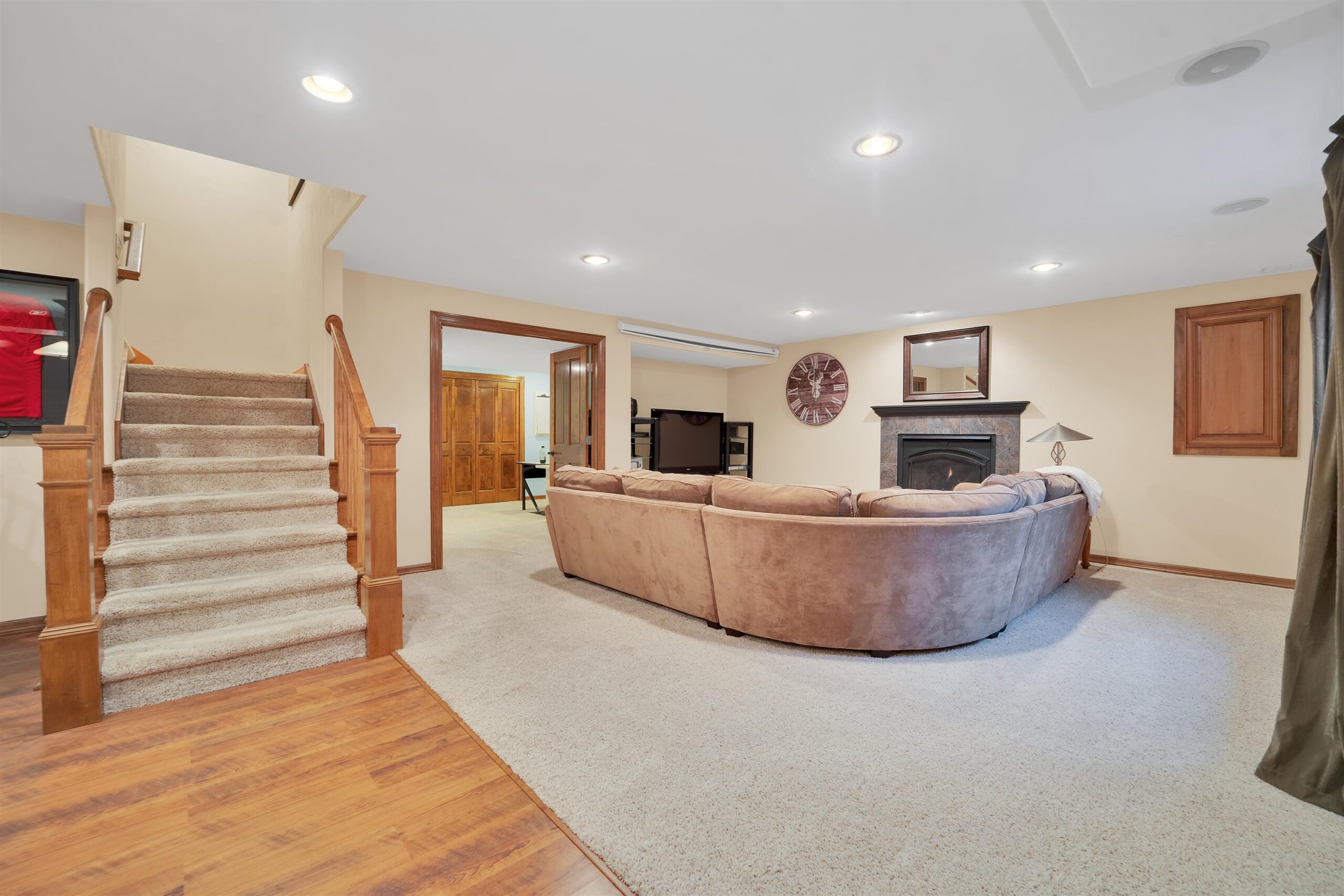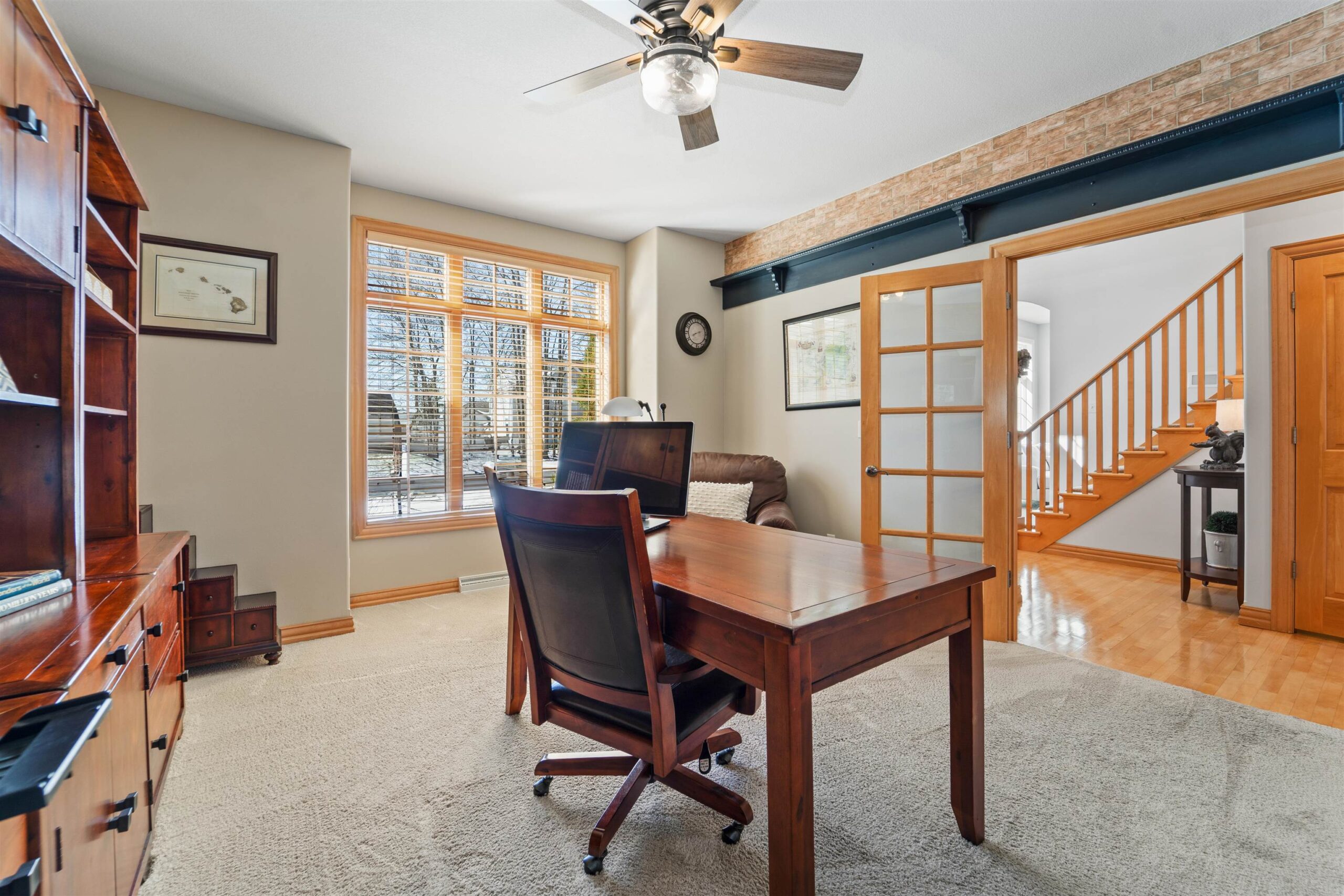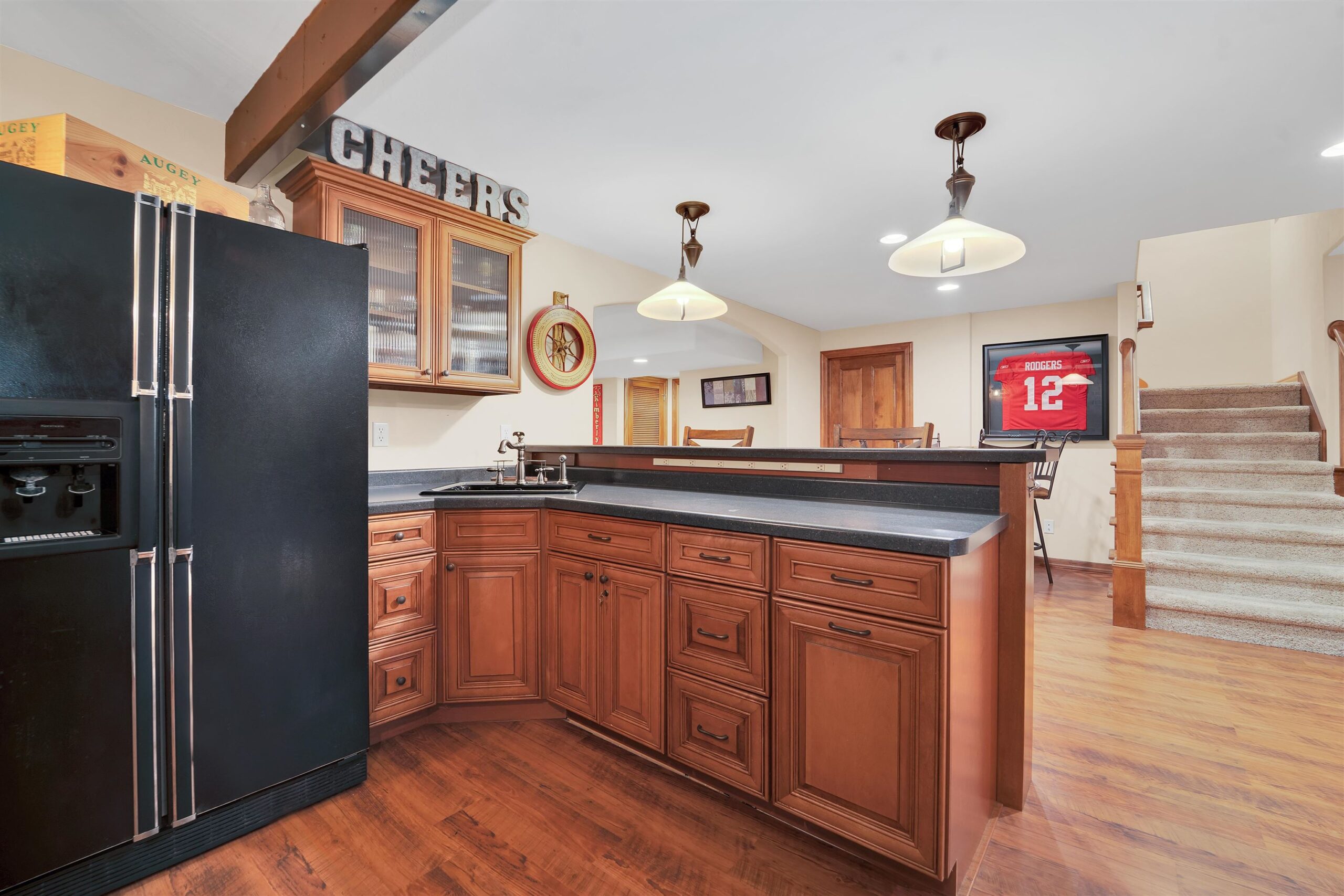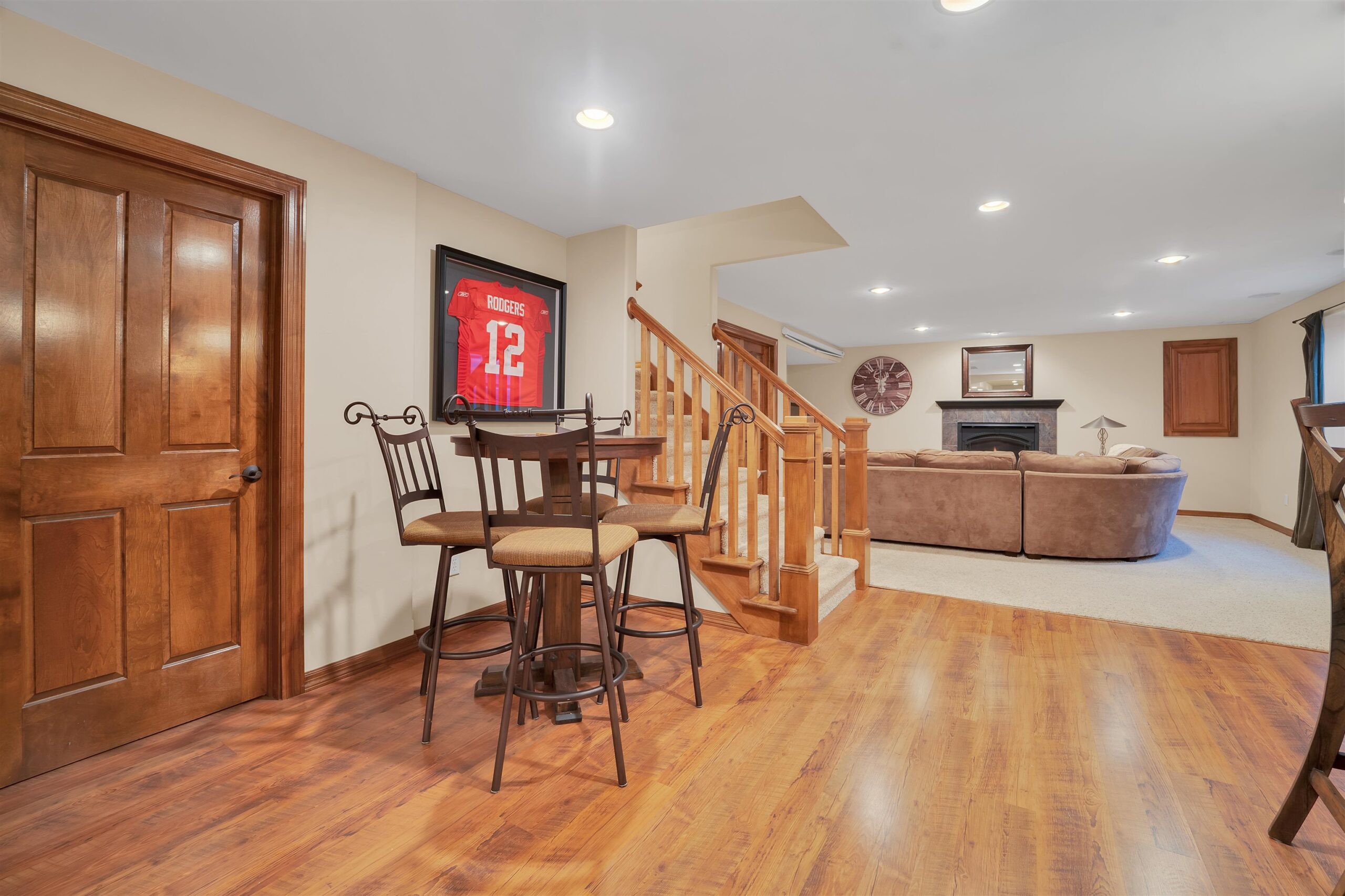 Luxury meets lifestyle in heart of Kimberly Schools, tucked into a wooded backdrop is this immaculate one-owner home with quality updates. 2 story foyer & gorgeous L-shaped split staircase. Large office with French doors & hardwood floors throughout. Updated kitchen with granite counters, center island, maple cabinetry & SS appliance package. Soaring great room with stone wood burning fireplace and large windows. Relax in sun drenched family room. 4 large bedrooms up, including primary w/heated floors & walk-in closet. Mud room/laundry room off garage. Lower level with full wet bar, rec room and family room with gas fireplace. Outside enjoy a covered patio and mature landscape. Access to trails and park. Pre-certified w/ 1 year warranty. Seller requires 48 hours for binding acceptance.