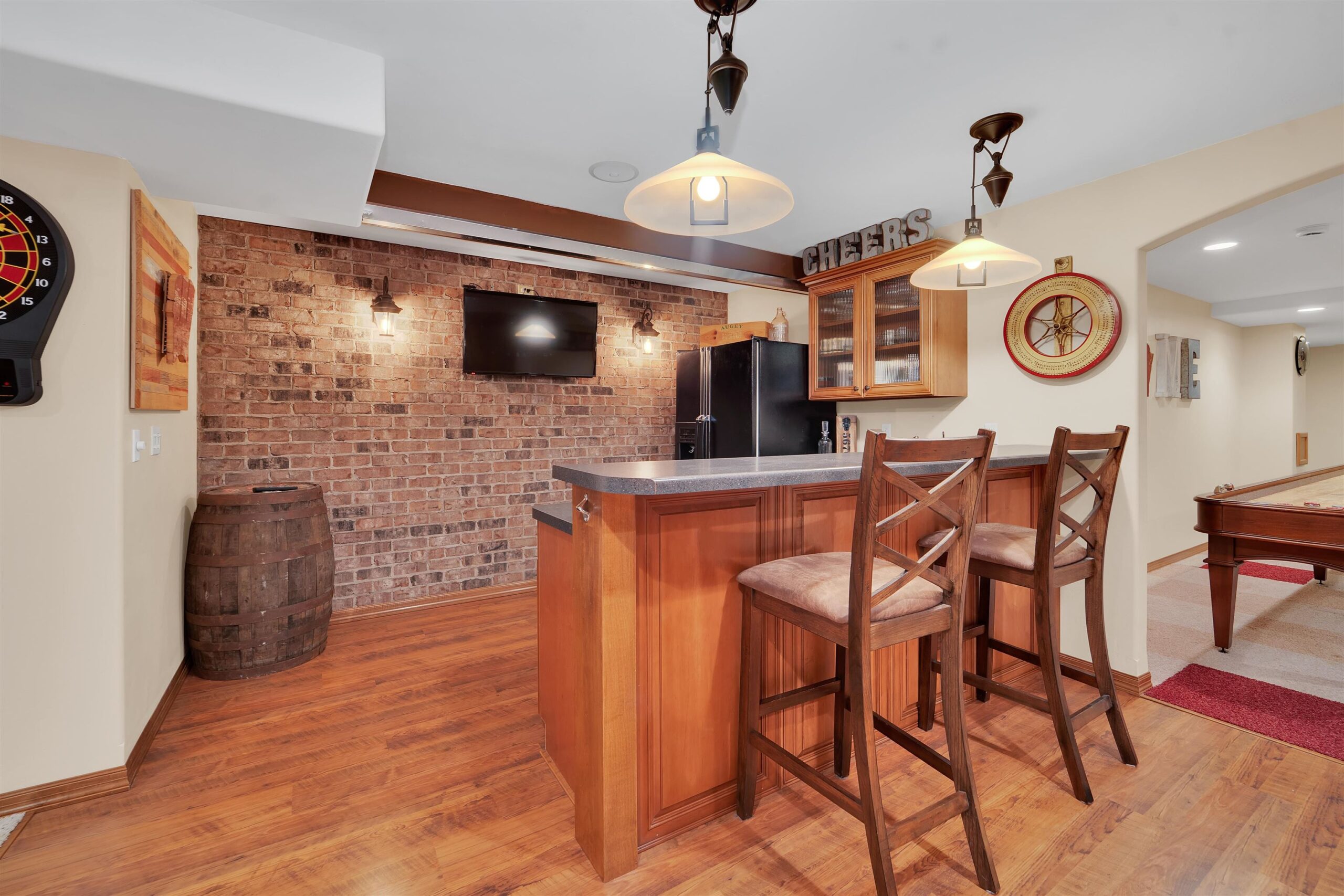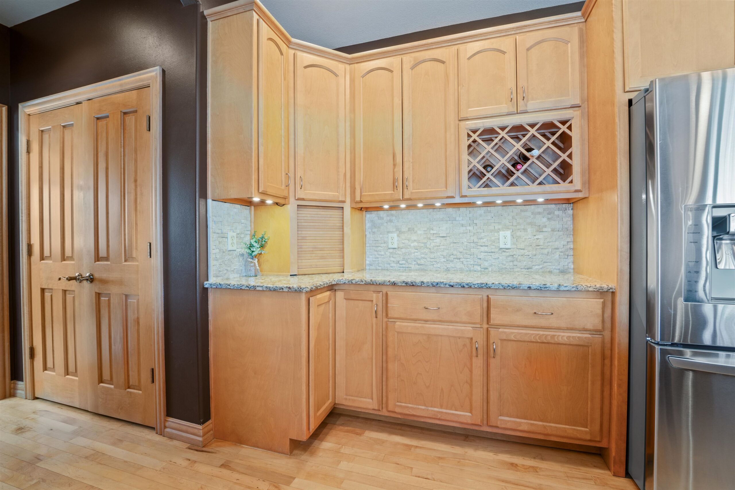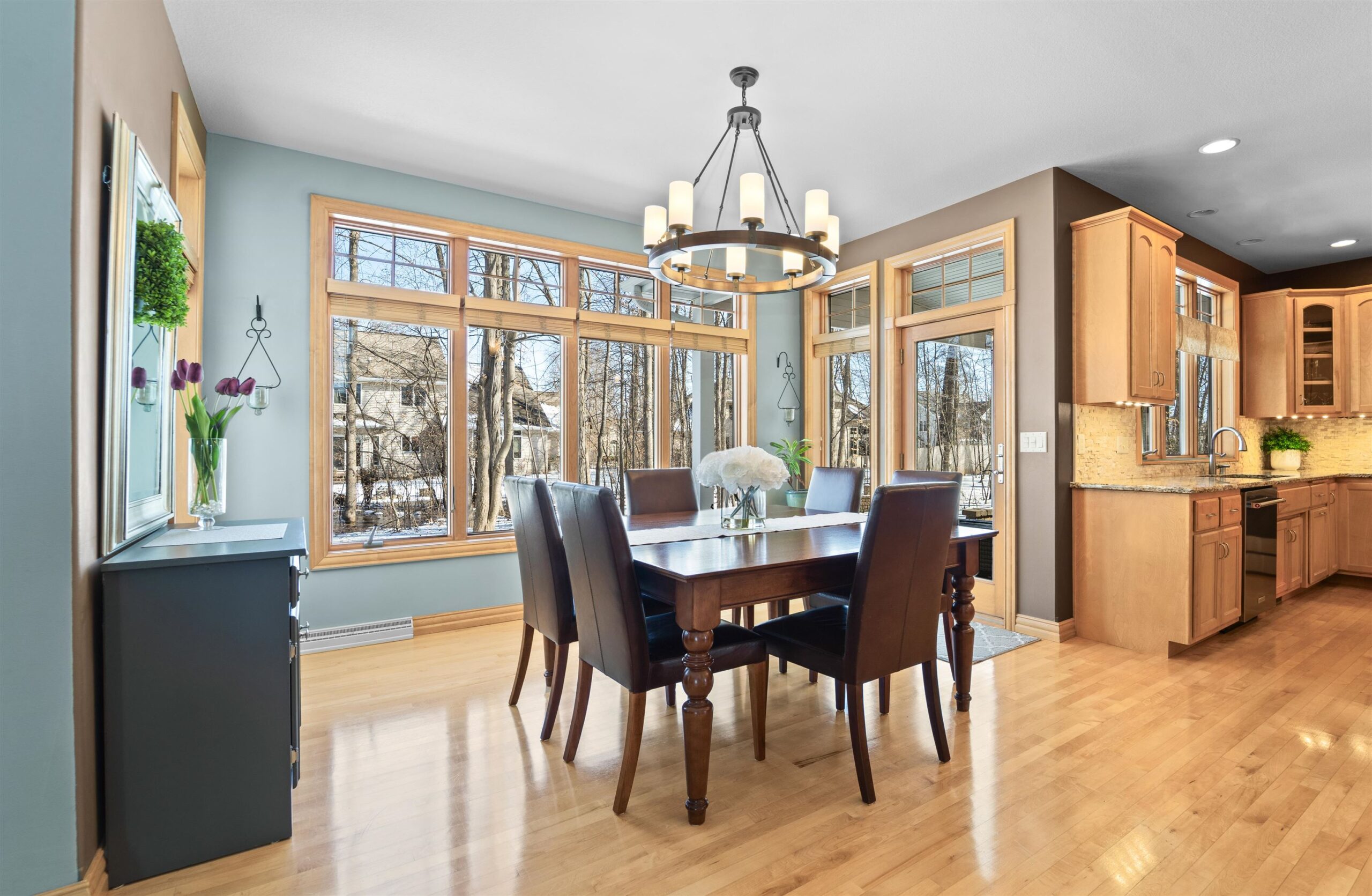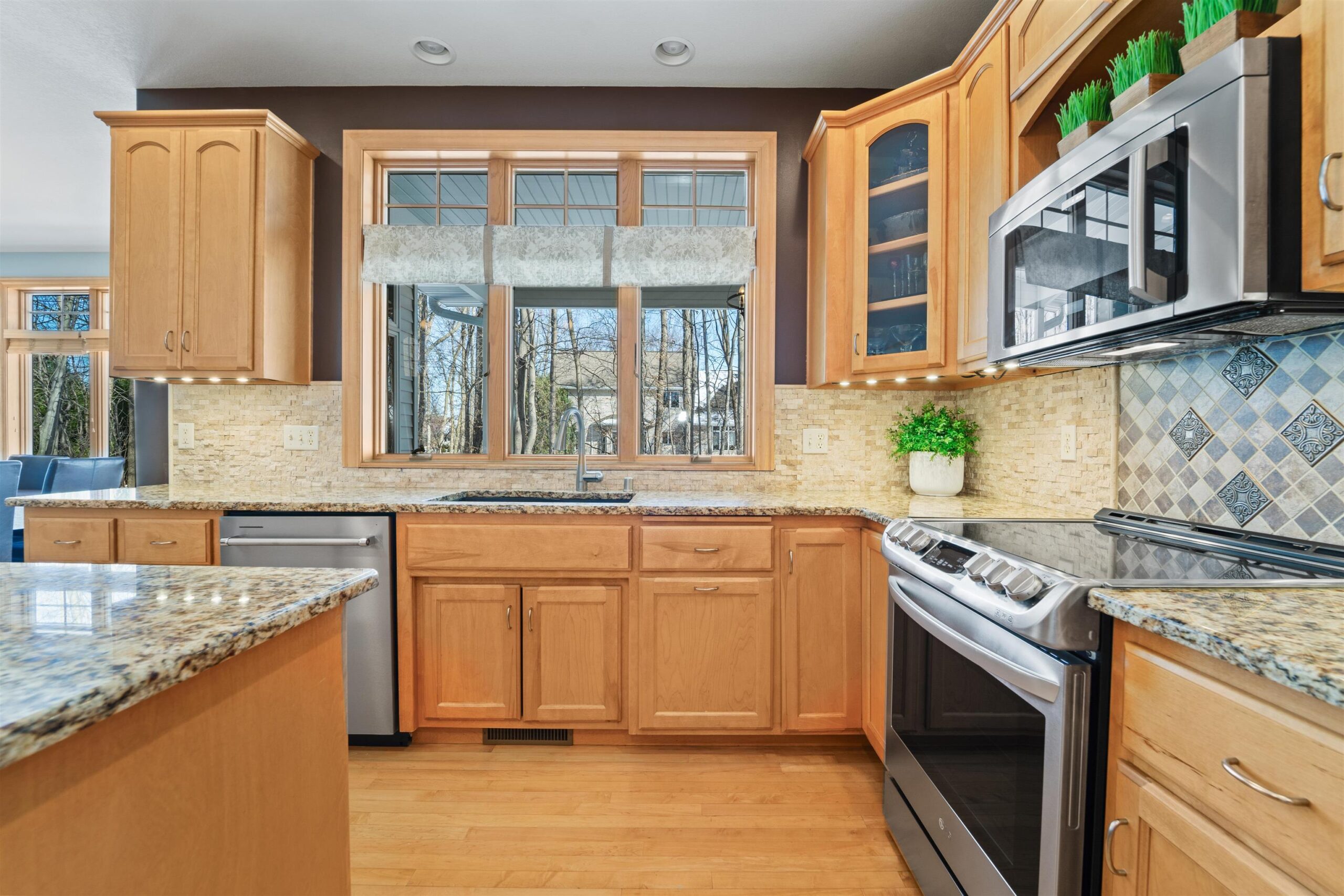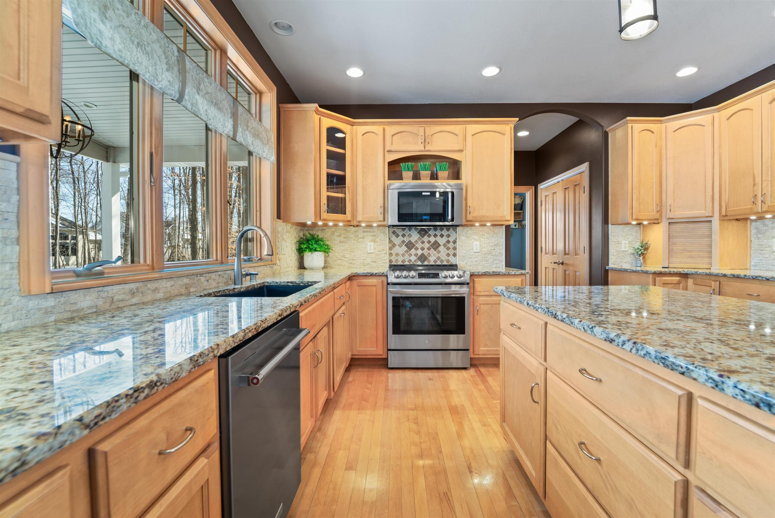 Luxury meets lifestyle in heart of Kimberly Schools, tucked into a wooded backdrop is this immaculate one-owner home with quality updates. 2 story foyer & gorgeous L-shaped split staircase. Large office with French doors & hardwood floors throughout. Updated kitchen with granite counters, center island, maple cabinetry & SS appliance package. Soaring great room with stone wood burning fireplace and large windows. Relax in sun drenched family room. 4 large bedrooms up, including primary w/heated floors & walk-in closet. Mud room/laundry room off garage. Lower level with full wet bar, rec room and family room with gas fireplace. Outside enjoy a covered patio and mature landscape. Access to trails and park. Pre-certified w/ 1 year warranty. Seller requires 48 hours for binding acceptance.