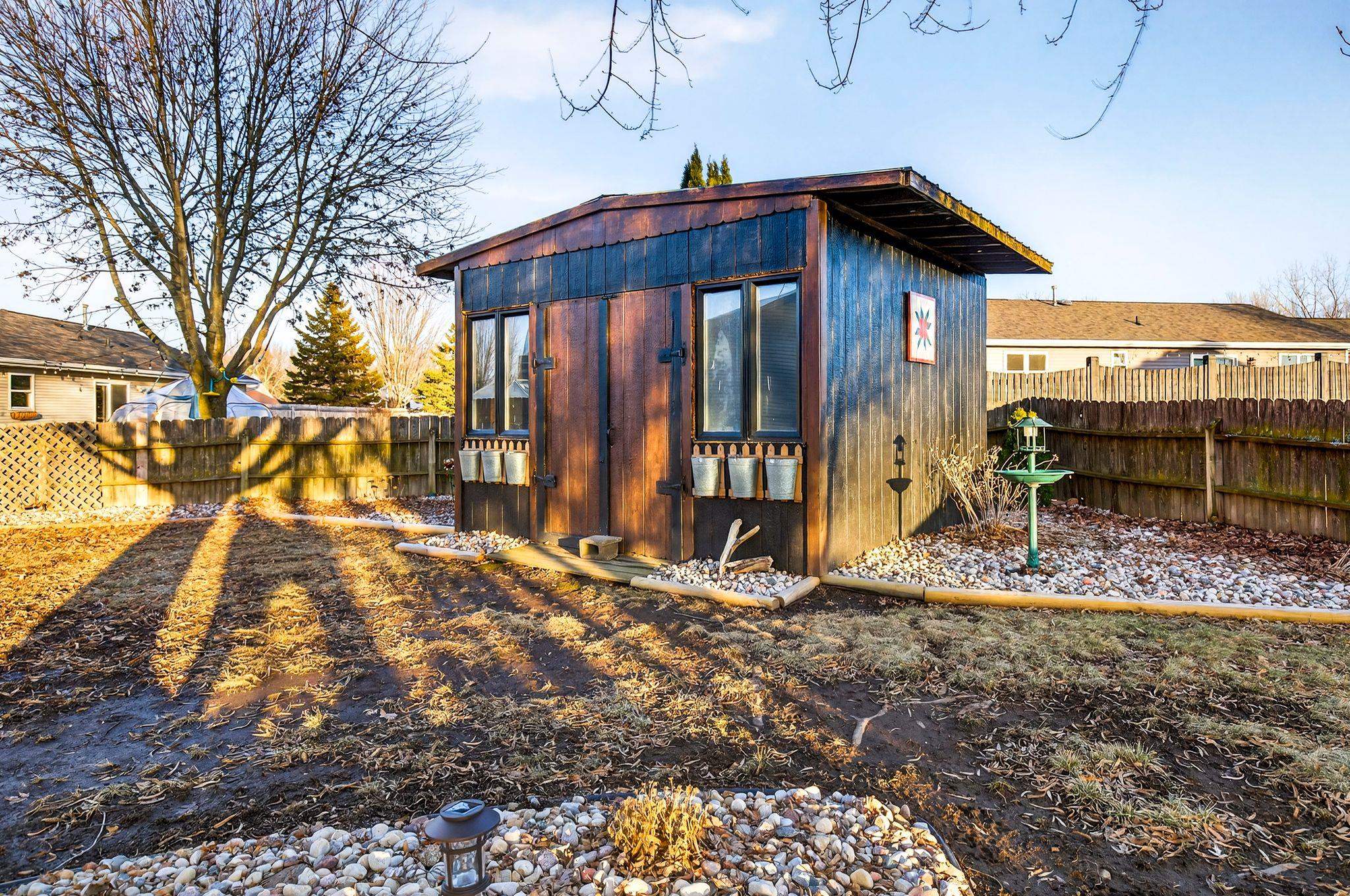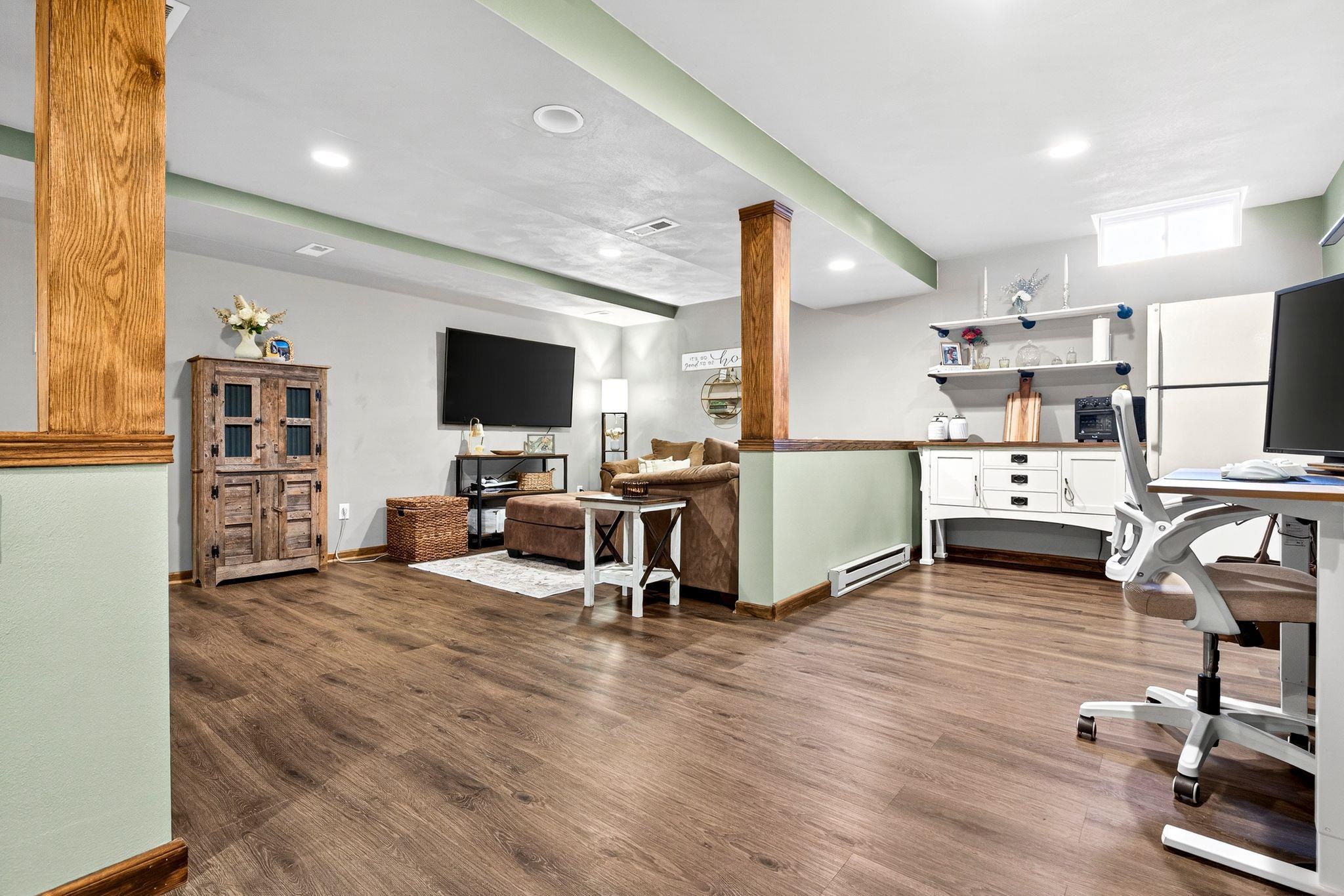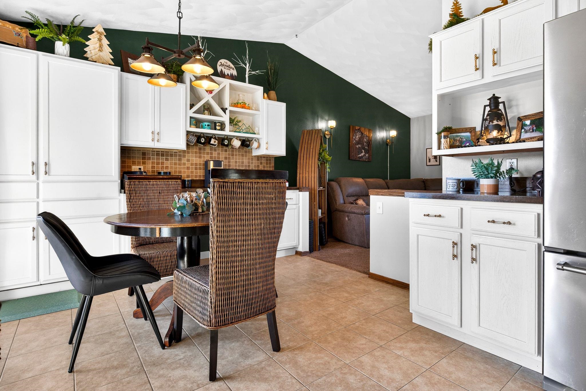 This beautifully designed ranch in the Kimberly School District has a partially brick exterior and attached 3-car garage, giving it polished curb appeal. Inside, vaulted ceilings elevate the main living space and the dining area features a nice built-in buffet center. A patio door leads to the large fenced-in backyard, where you'll find a deck, hot tub, and spacious shed! Main floor laundry adds everyday convenience, and the primary suite has an en suite. The finished lower level expands your living space with flexibility for a media room, gym, office, or entertaining area, plus the bonus of a half bath right there! Showings begin 03/05. Offers due 12pm 03/09 and presented that evening. Per the Seller, there is a hookup in the garage for a future gas heater!