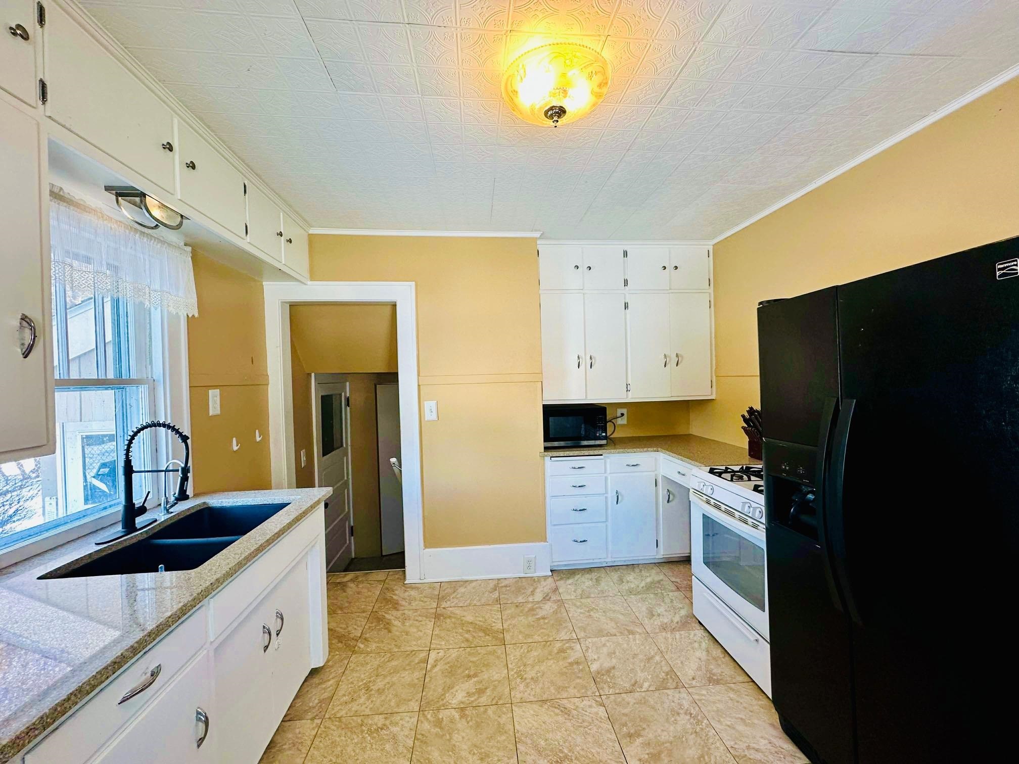 This 3 bed home is situated on nearly an acre, just a half block away from school. Inside you'll find a foyer area next to the huge living room featuring a gas fireplace. The adjoining dining room flows great for entertaining. Kitchen is equipped with a reverse osmosis system, ensuring pure drinking water! With 1.5 baths, including a spacious bath upstairs that has a tub & a separate shower, meeting all your needs! Enjoy the convenience of A/C during summer days. The finished family room/office in the basement is more space that could be converted into a bedroom w/ addition of an egress window. All bedrooms feature great closet space. Partially fenced in yard w/ lilac trees. Included as a convenience to buyer: Stove, Fridge, Lawnmower. Home being sold 'As-Is". Schedule your showing today!!