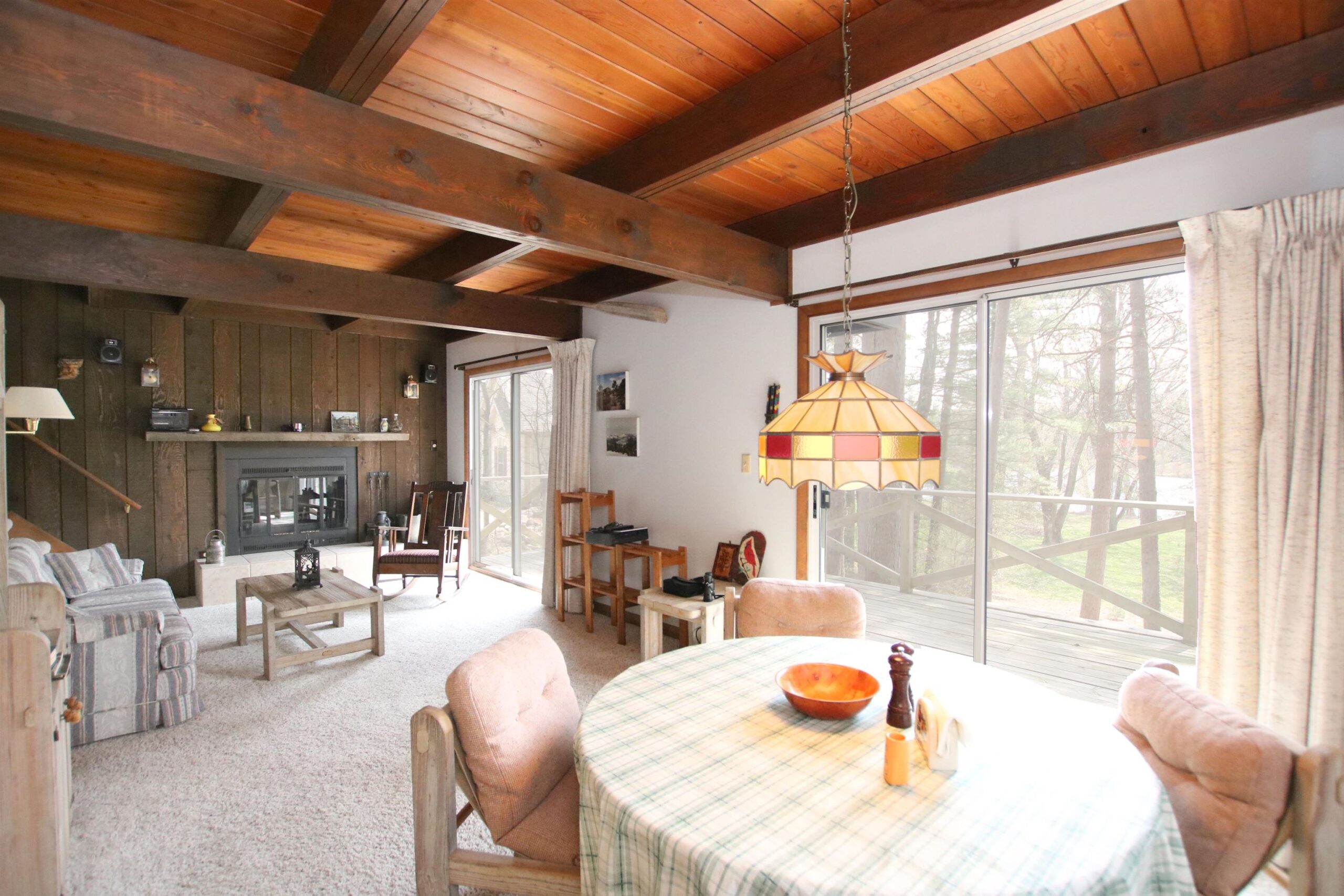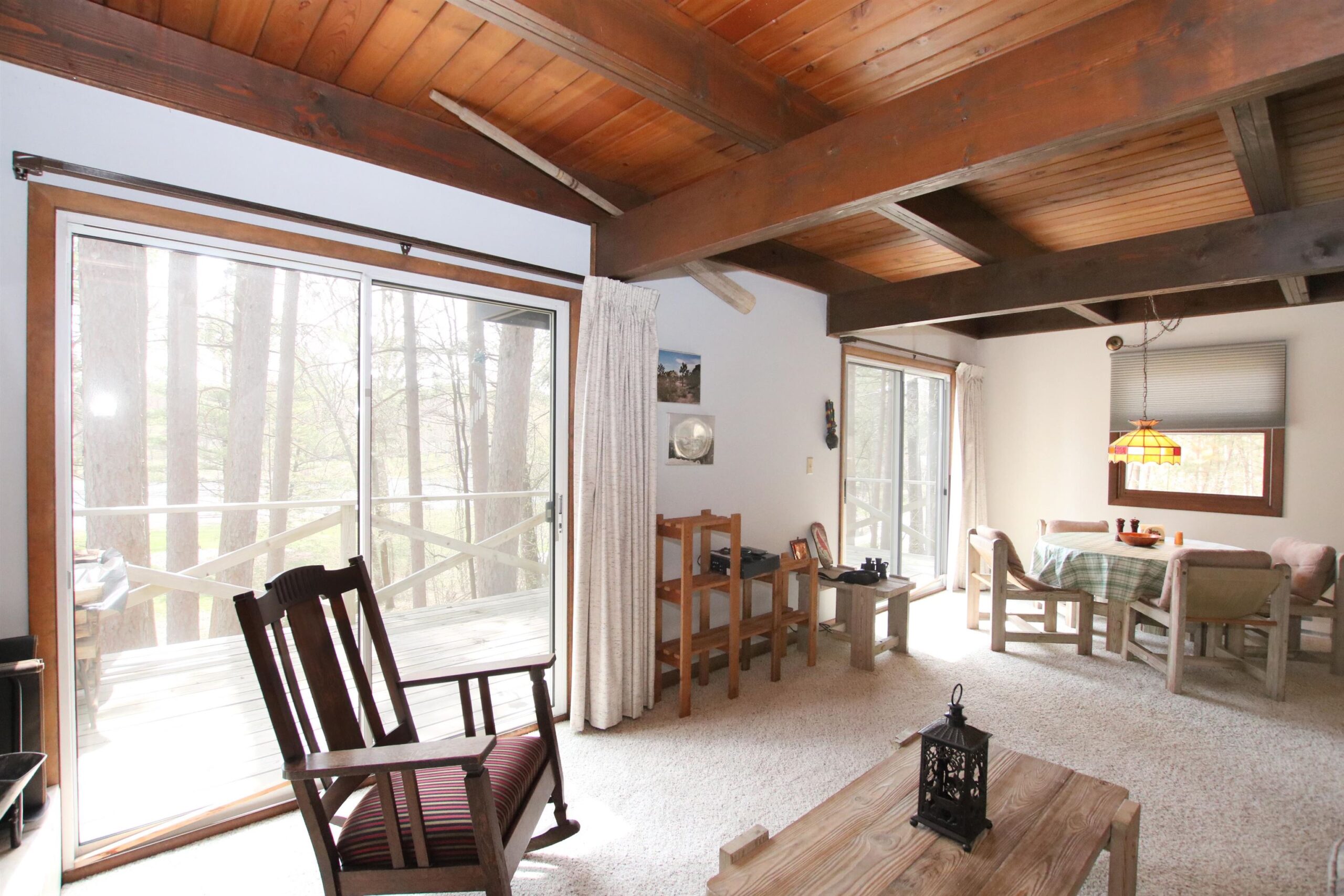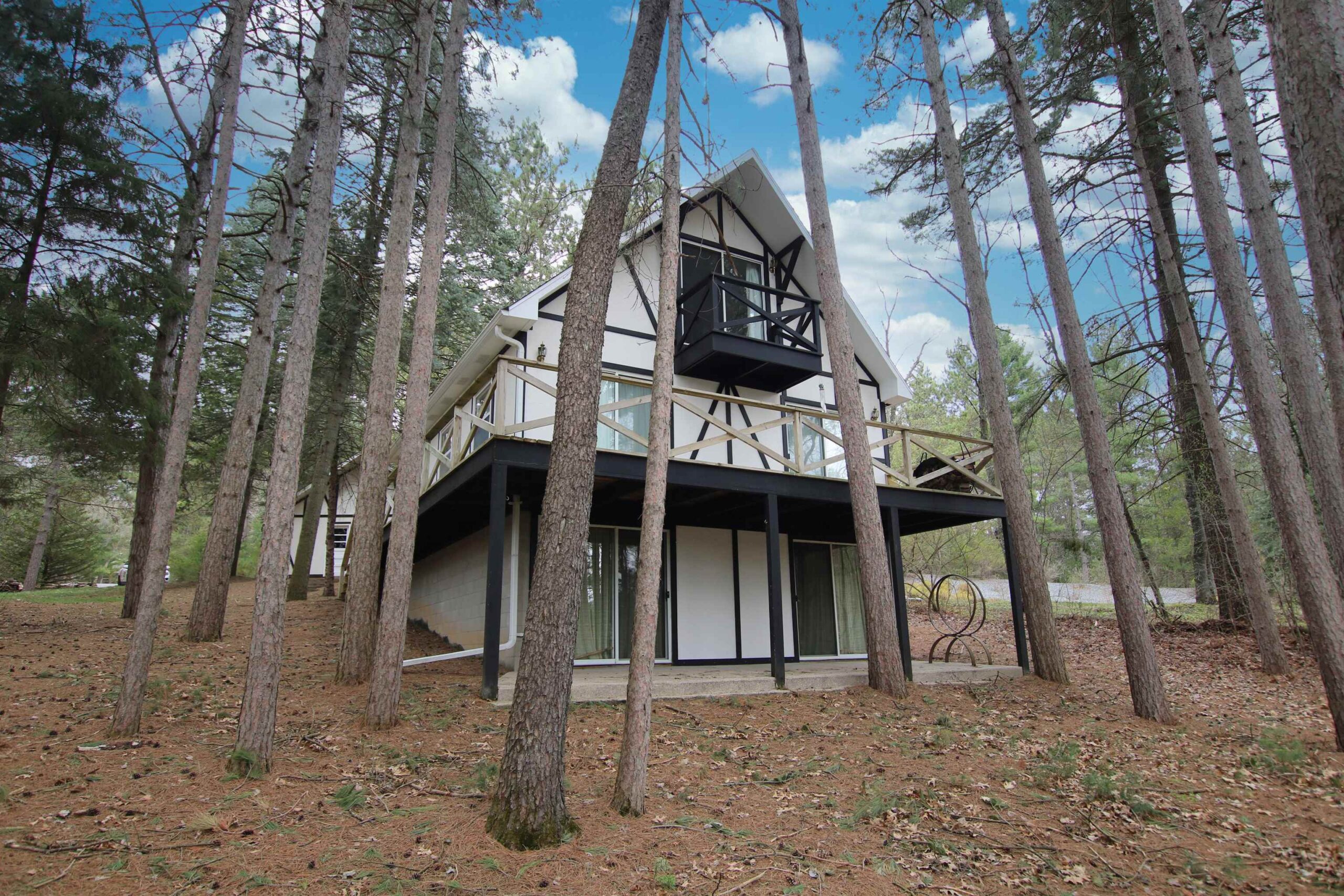 Nestled in the pines is this private 1.5 story freshly painted lake home w/ 100ft of Alpine Lake frontage. Home features remodeled kitchen w/maple cabinets, island w/seating & great views of the outdoors! Wood burning fireplace frames the living room and patio doors lead to wrap around deck for morning coffee. House features 3 bdrms, 1.5 baths & additional finished lower level areas perfect when extra living space is needed, complete w/ wet bar & shower. Very gentle slope to the waters edge to cast your fishpole or swim! Detached 3 car garage for plenty of storage. Make this your primary or weekend getaway and let the fun begin! All offers must have 2 day binding acceptance.