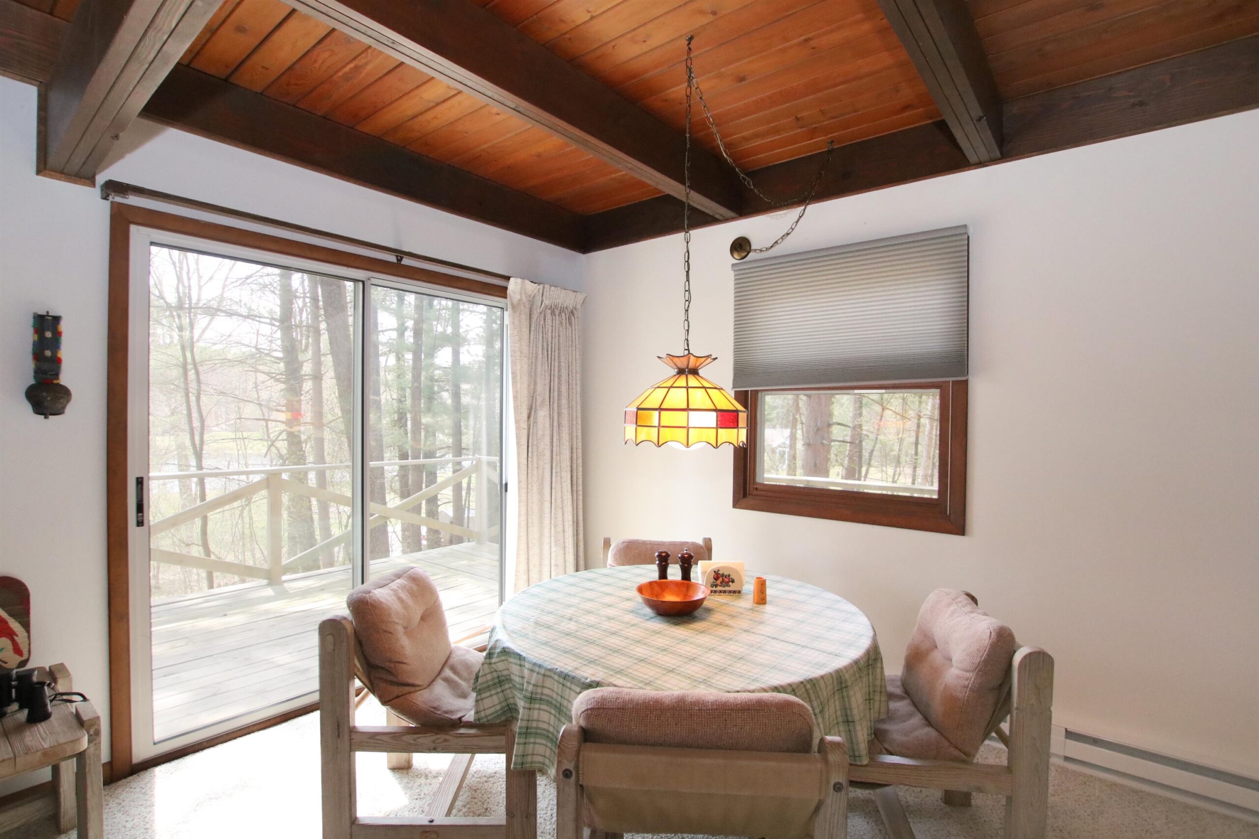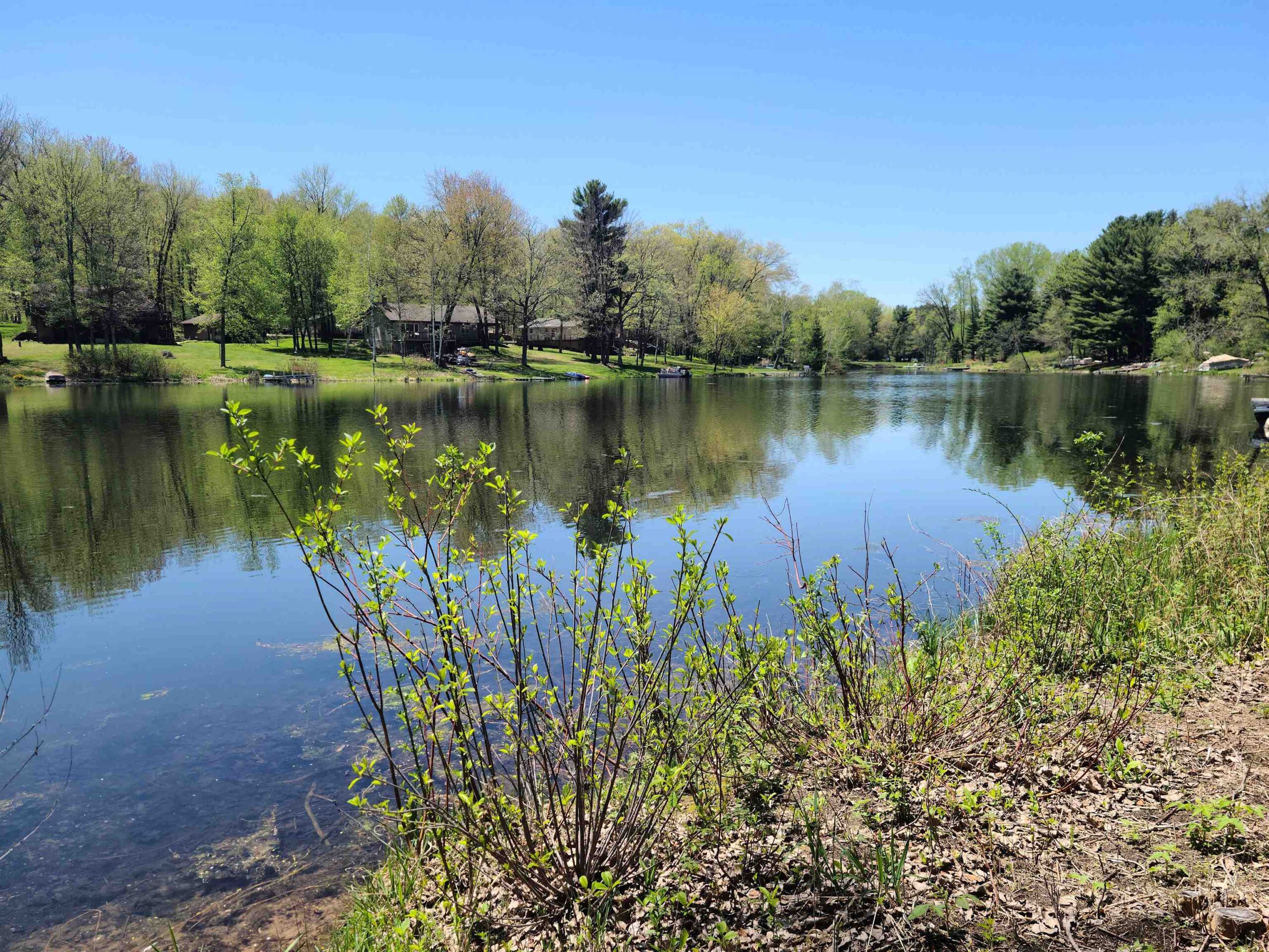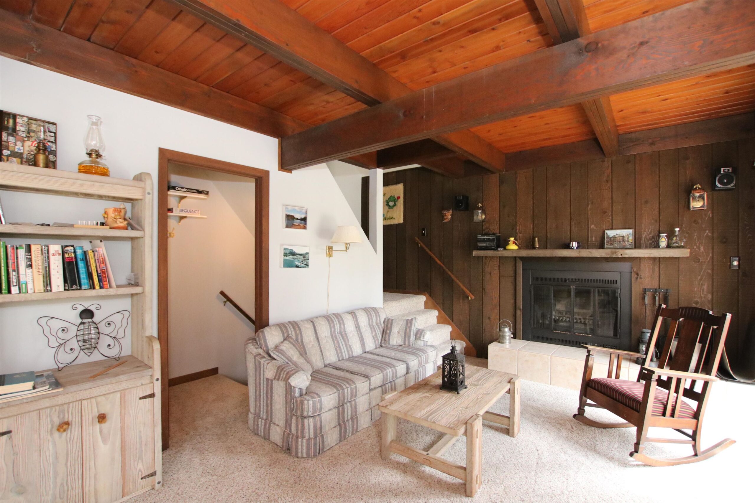 Nestled in the pines is this private 1.5 story freshly painted lake home w/ 100ft of Alpine Lake frontage. Home features remodeled kitchen w/maple cabinets, island w/seating & great views of the outdoors! Wood burning fireplace frames the living room and patio doors lead to wrap around deck for morning coffee. House features 3 bdrms, 1.5 baths & additional finished lower level areas perfect when extra living space is needed, complete w/ wet bar & shower. Very gentle slope to the waters edge to cast your fishpole or swim! Detached 3 car garage for plenty of storage. Make this your primary or weekend getaway and let the fun begin! All offers must have 2 day binding acceptance.