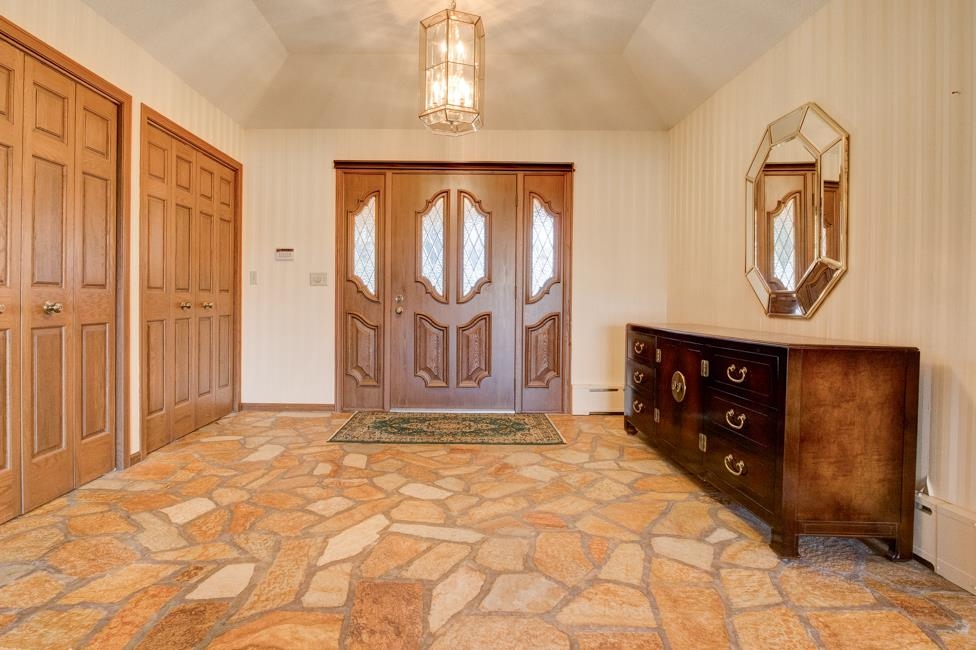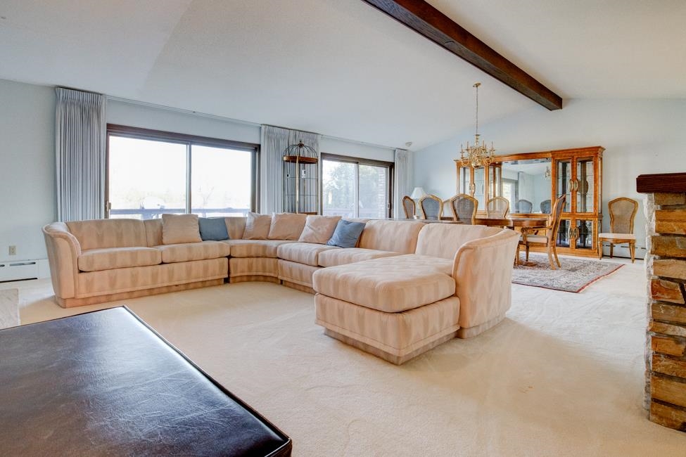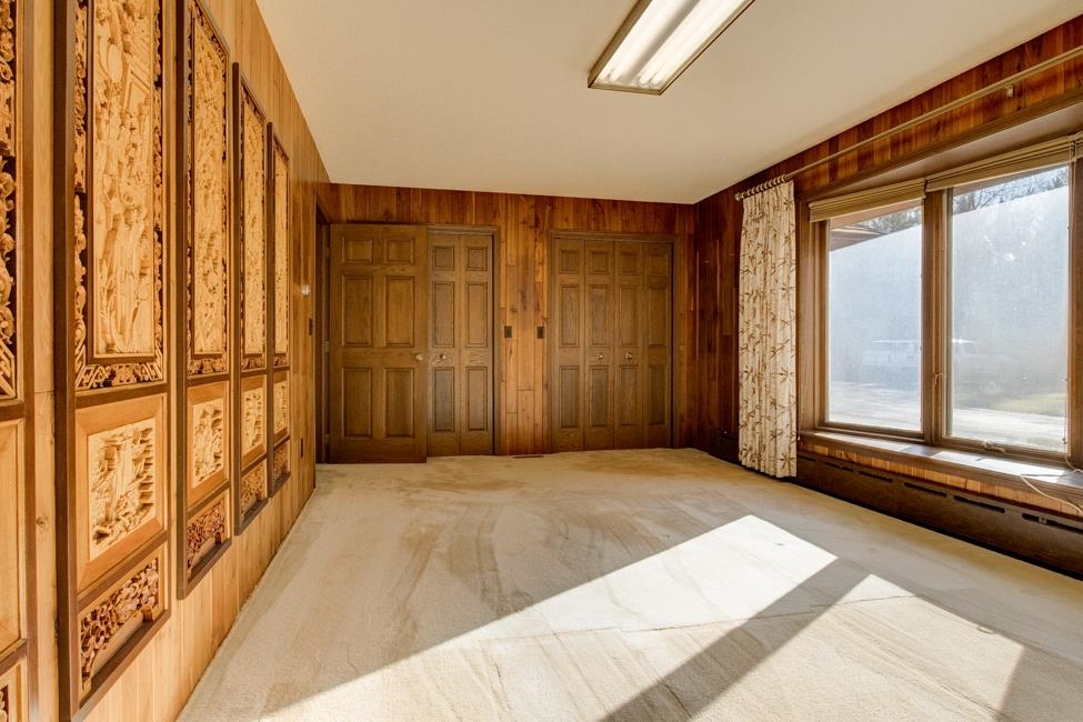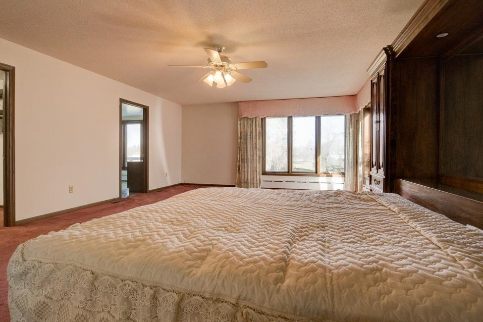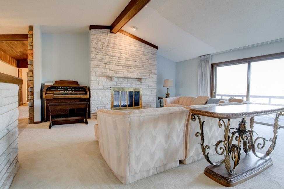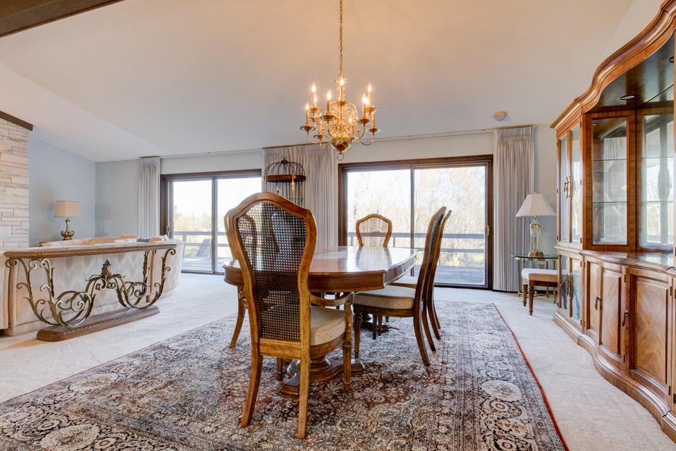 Spalding,MI waterfront sweeping brick ranch home with acreage.This 3 bedroom, 3.5 bathroom home has over 3,800 sqft above grade. Custom cabinetry throughout. Granite tops. Dual fireplace. Massive Room sizes. Private road with your own bridge access lined with a mixture of trees, leading to an architectural gem with a slate roof. Tucked away in serene surroundings, loaded with features: expansive primary suite, dual bathroom soaking tub, steam bath, multiple walk-in closets, and balcony views. Full basement with detached and attached garages. Built to wow and last for generations. This listing is a must see!