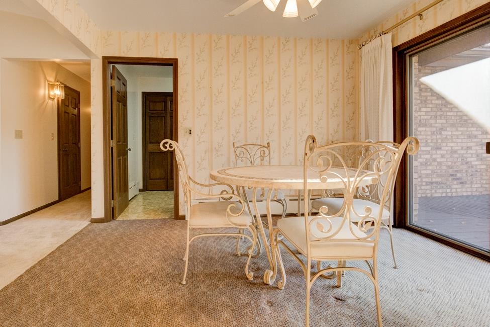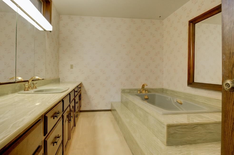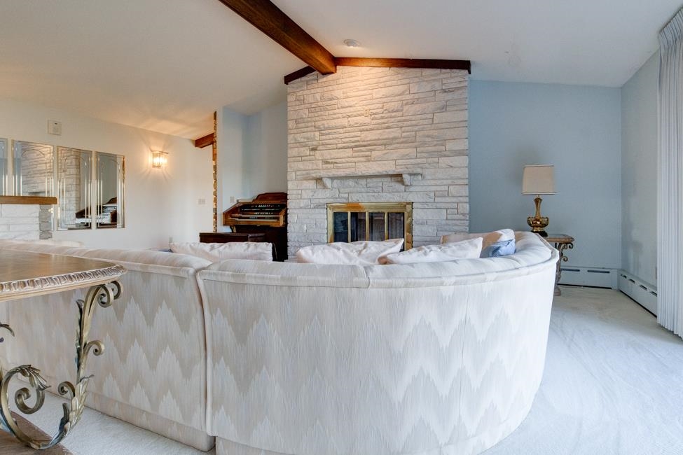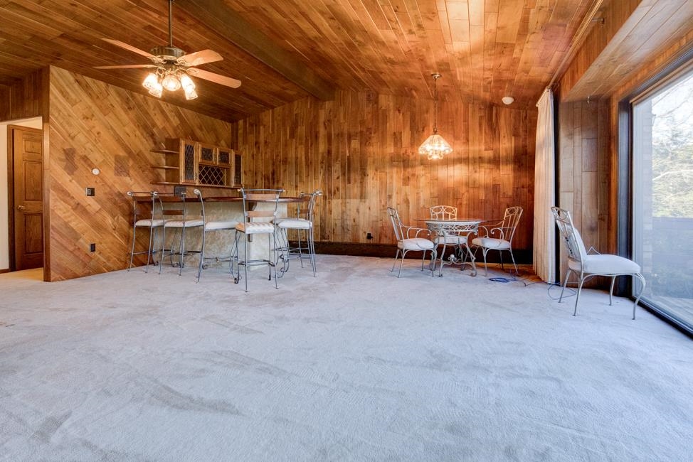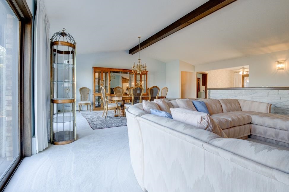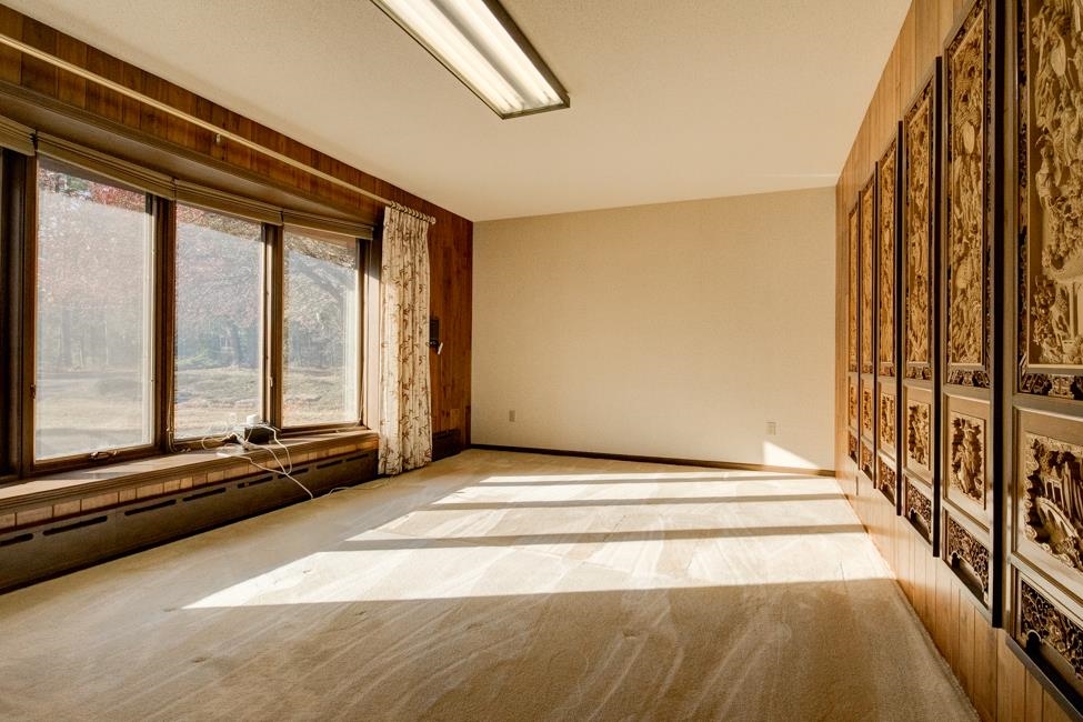 Spalding,MI waterfront sweeping brick ranch home with acreage.This 3 bedroom, 3.5 bathroom home has over 3,800 sqft above grade. Custom cabinetry throughout. Granite tops. Dual fireplace. Massive Room sizes. Private road with your own bridge access lined with a mixture of trees, leading to an architectural gem with a slate roof. Tucked away in serene surroundings, loaded with features: expansive primary suite, dual bathroom soaking tub, steam bath, multiple walk-in closets, and balcony views. Full basement with detached and attached garages. Built to wow and last for generations. This listing is a must see!