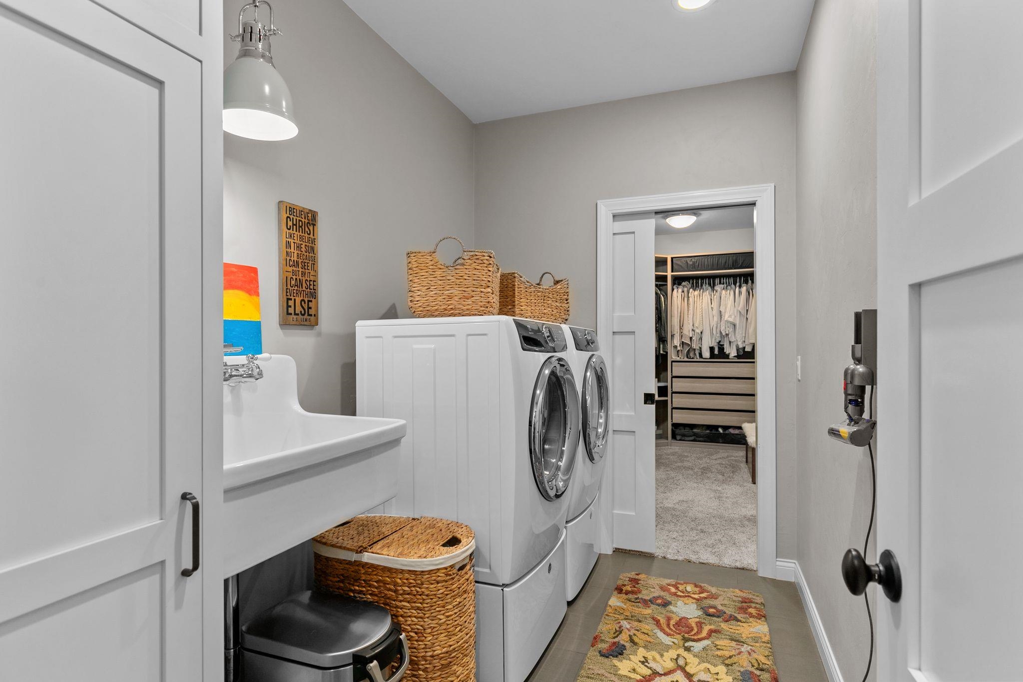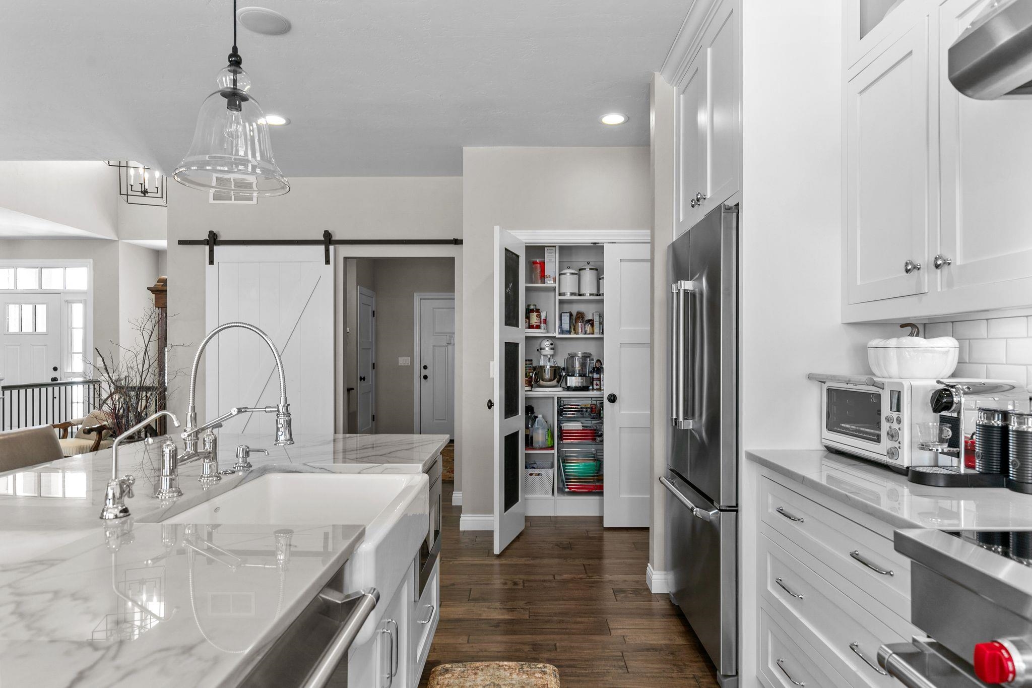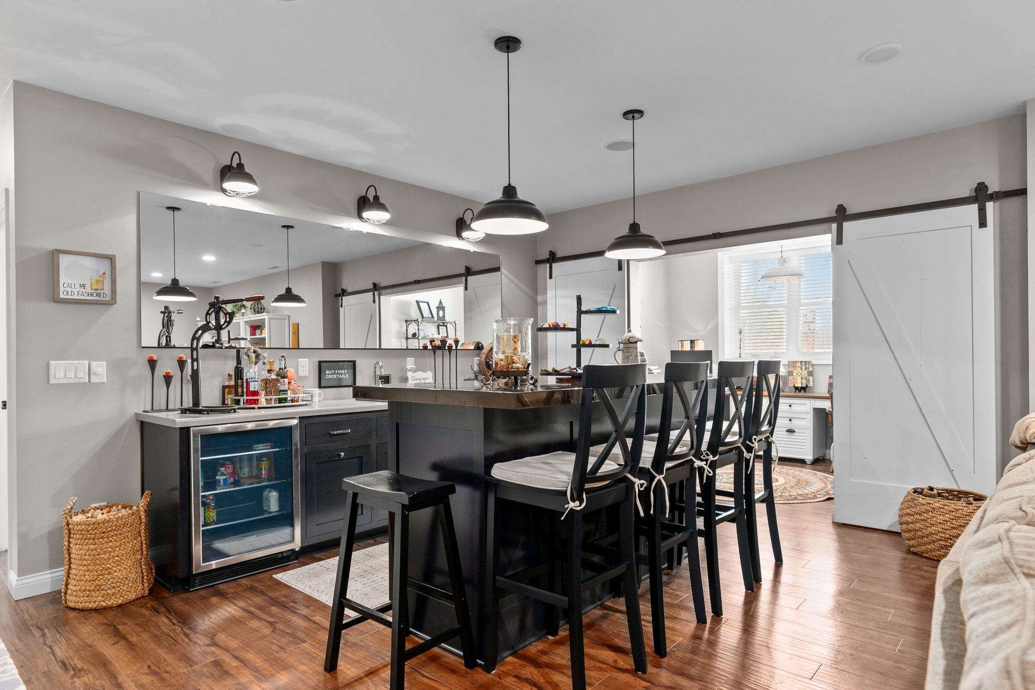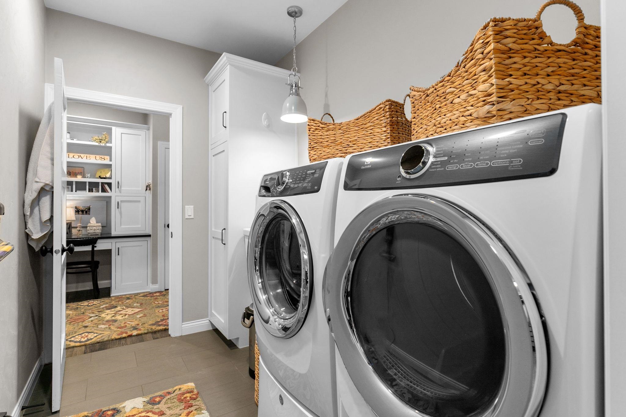 stove, refrigerator, dishwasher, microwave, washer & dryer with pedestals, bar fridge and microwave LL, refrigerator in garage,