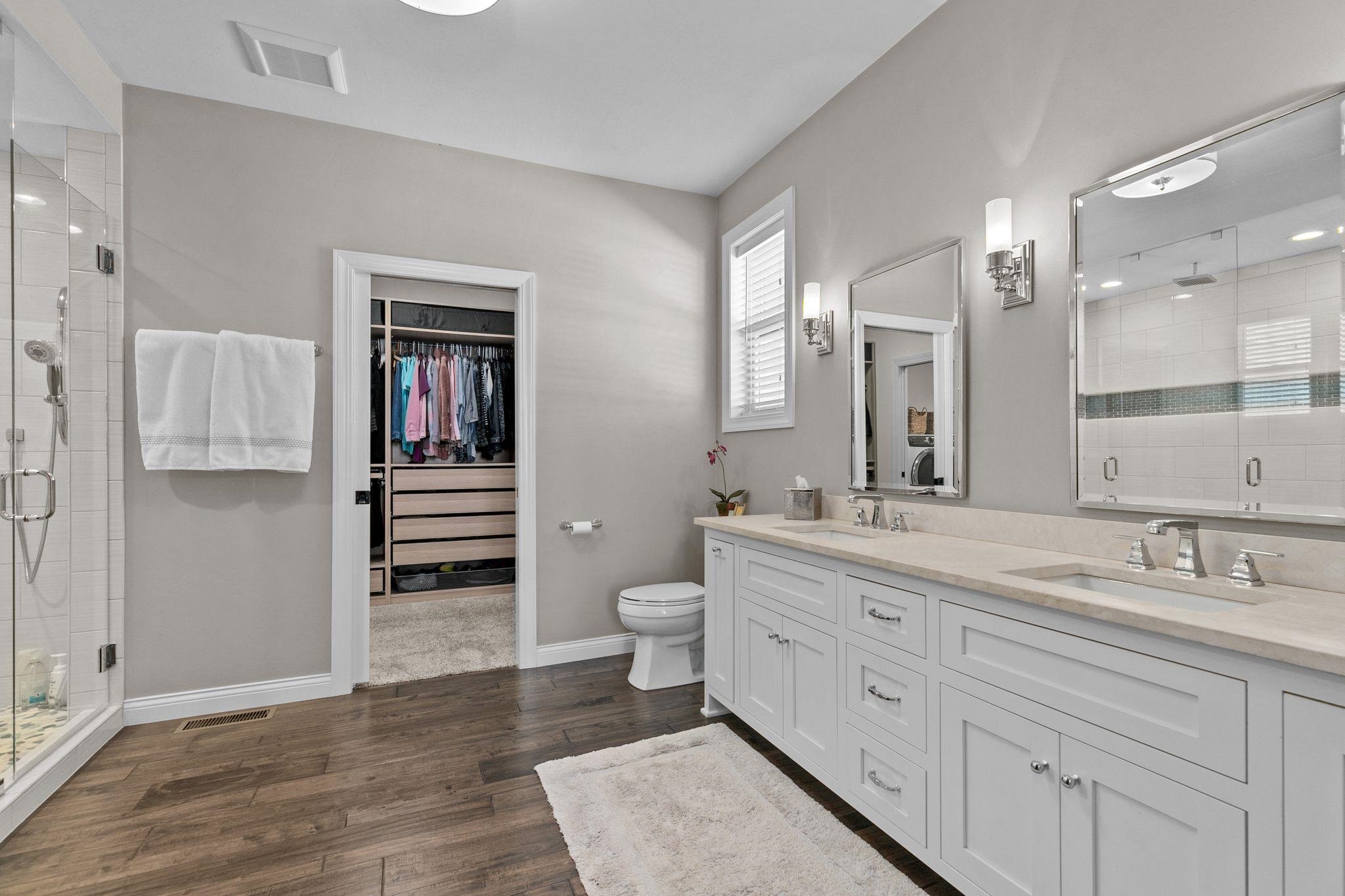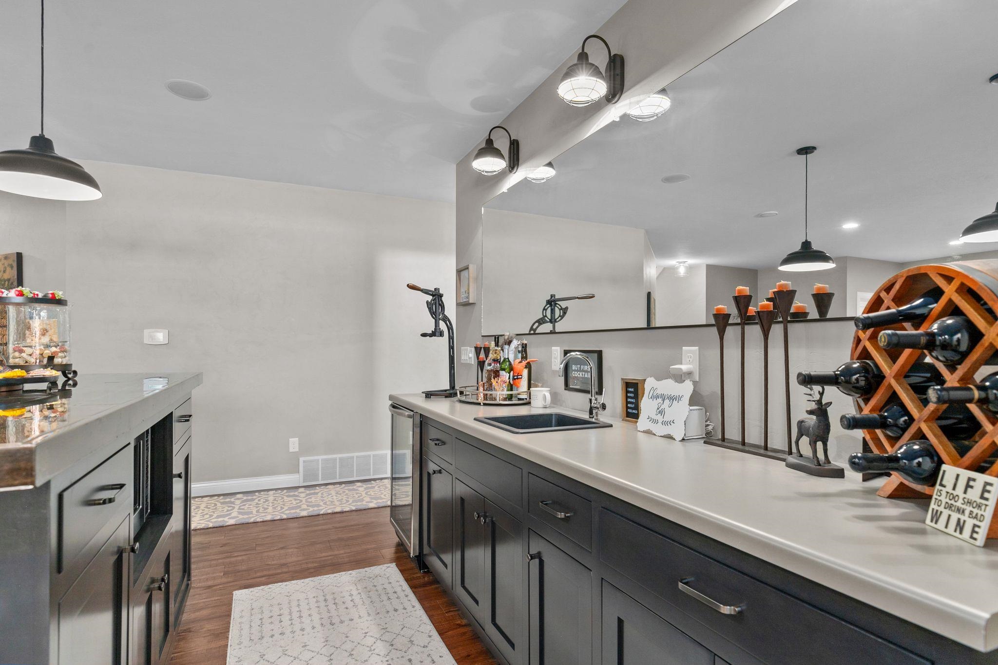 Meticulously maintained home with numerous updates inside and out. Enter the home and feel the warmth this home exudes. Large living room is a great spot for relaxing or entertaining overlooking the cooks delight kitchen with high grade appliances. Main floor master a true oasis with walk in double tiled shower, large walk in closet with custom built ins and adjacent laundry. Back hall desk/planning area. Lower level a great place to watch the game and boasts wet bar, exercise room, office and abundant storage. A new deck overlooks the expansive backyard and upgraded landscaping. Entire home has custom window treatments. Don't miss your chance to view this truly exceptional home and all the amenities it features.