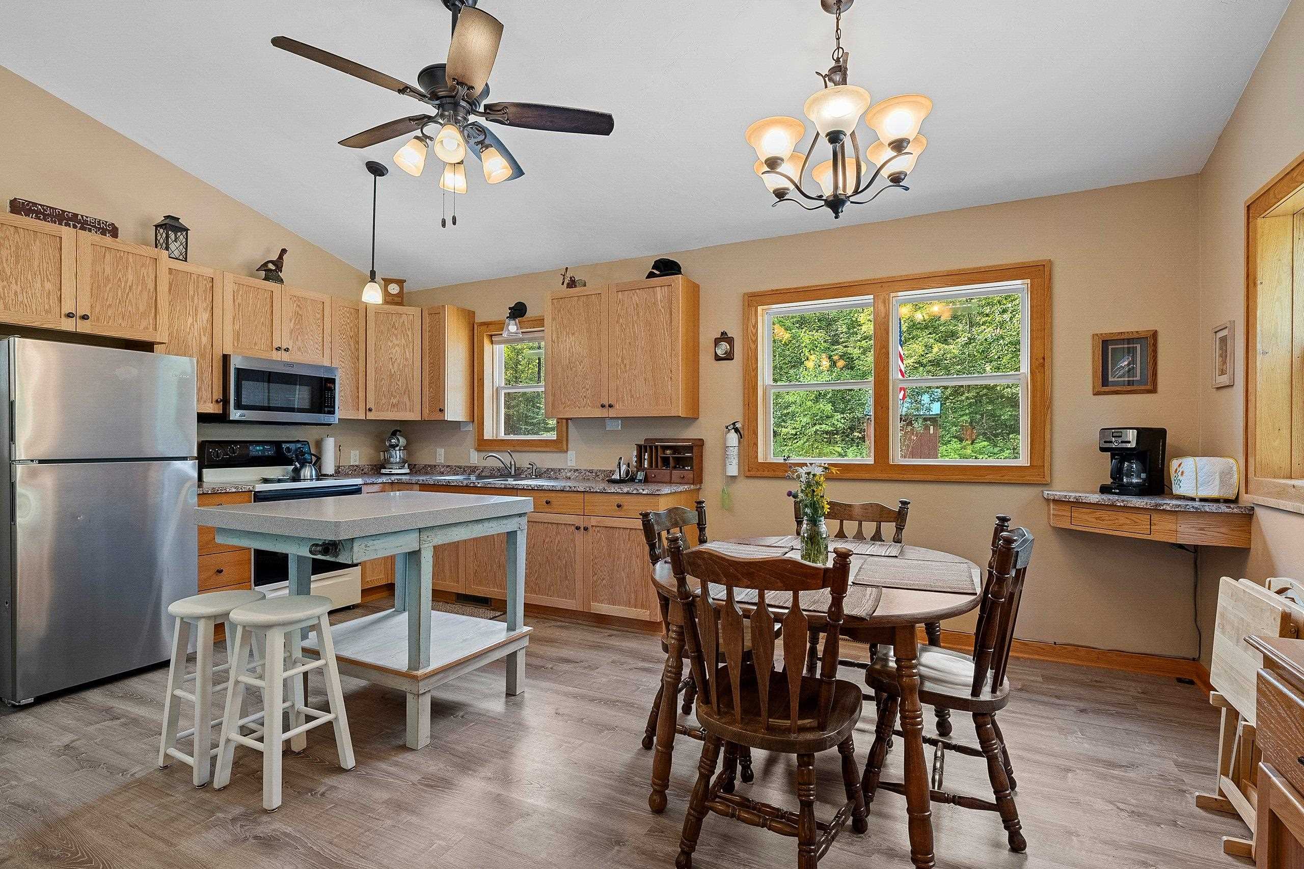 Tucked away on 47 acres of peaceful Northwoods land, this 2020-built cabin blends modern comfort with outdoor adventure. Featuring 2x6 construction, smart siding, steel roof, and vaulted ceilings, this 2-bedroom, 1.5-bath retreat offers central air and a convenient mudroom with laundry hookups. A 1.5-stall garage with workshop and two storage sheds provide space for all your gear. Explore your own network of private trails, a winding creek that connects to the Pike River, and an abundance of wildlife right out your back door. Bordering public land on the north and east sides, you’ll have room to roam and hunt,stands included. Drilled well, conventional septic, and 39 acres enrolled in Closed MFL for tax savings. Move-in ready, furnished option available. Your year-round escape awaits