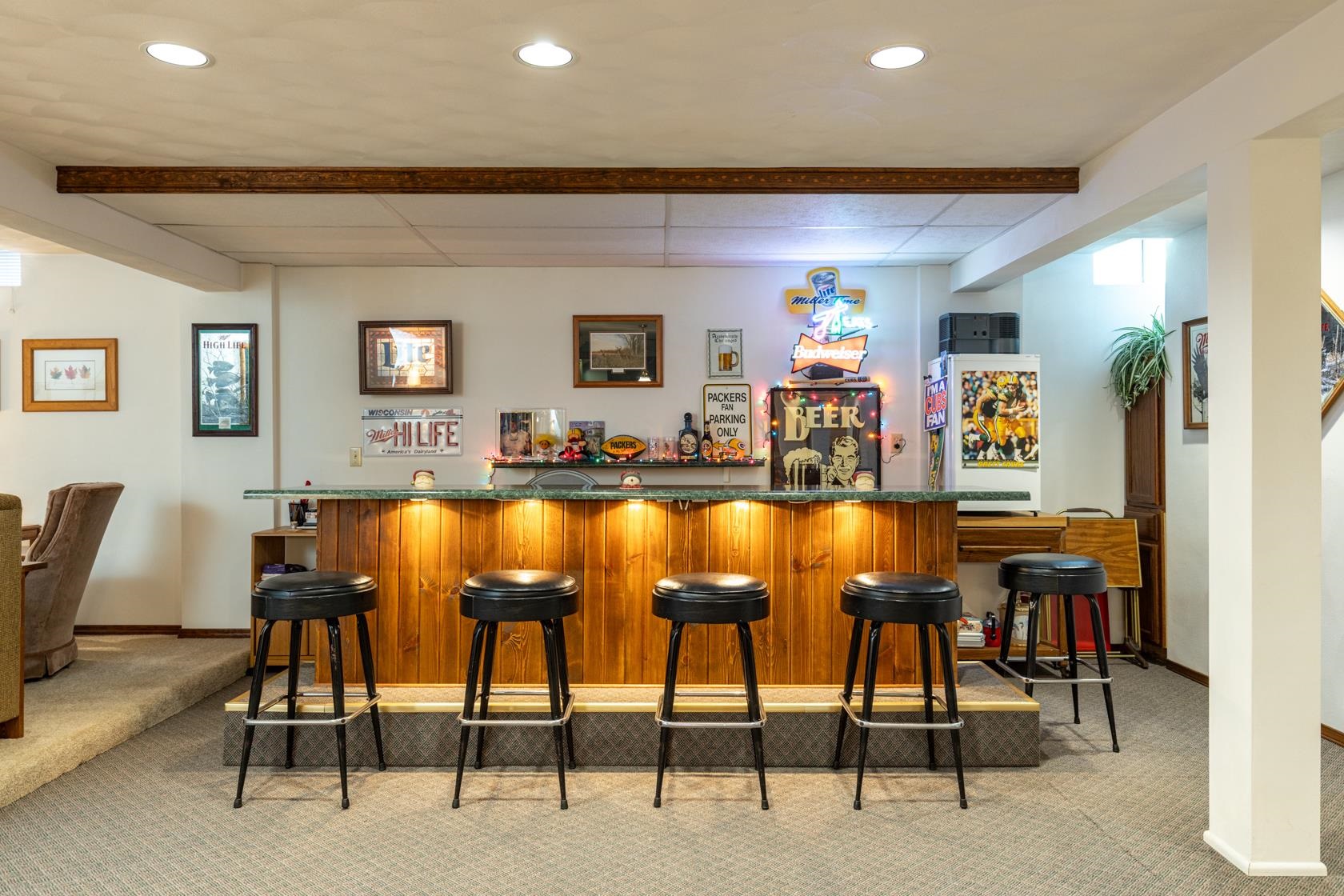 Window Valances, Clothes Line, Microwave, Poker Table, Bar Refrigerator.