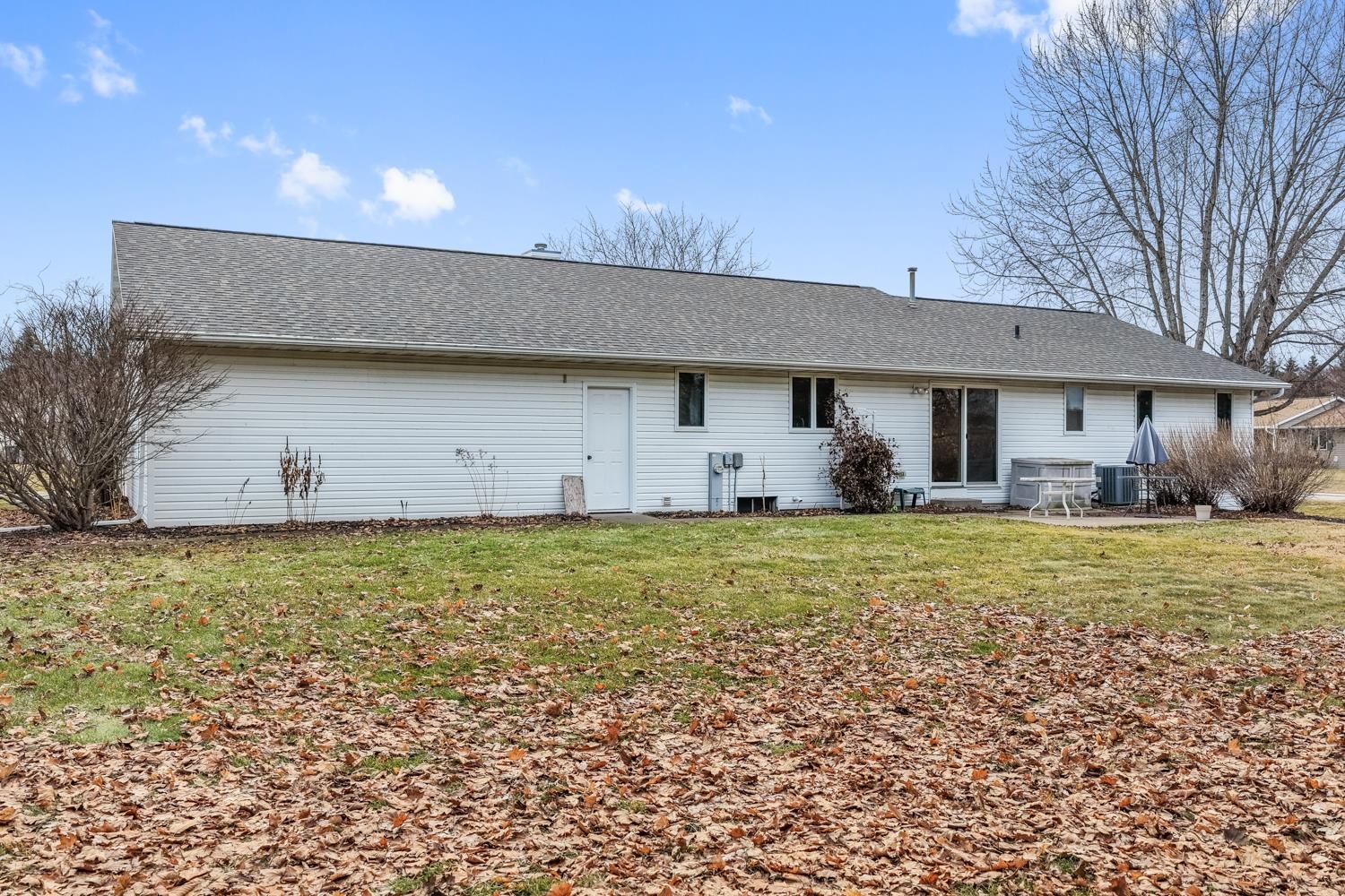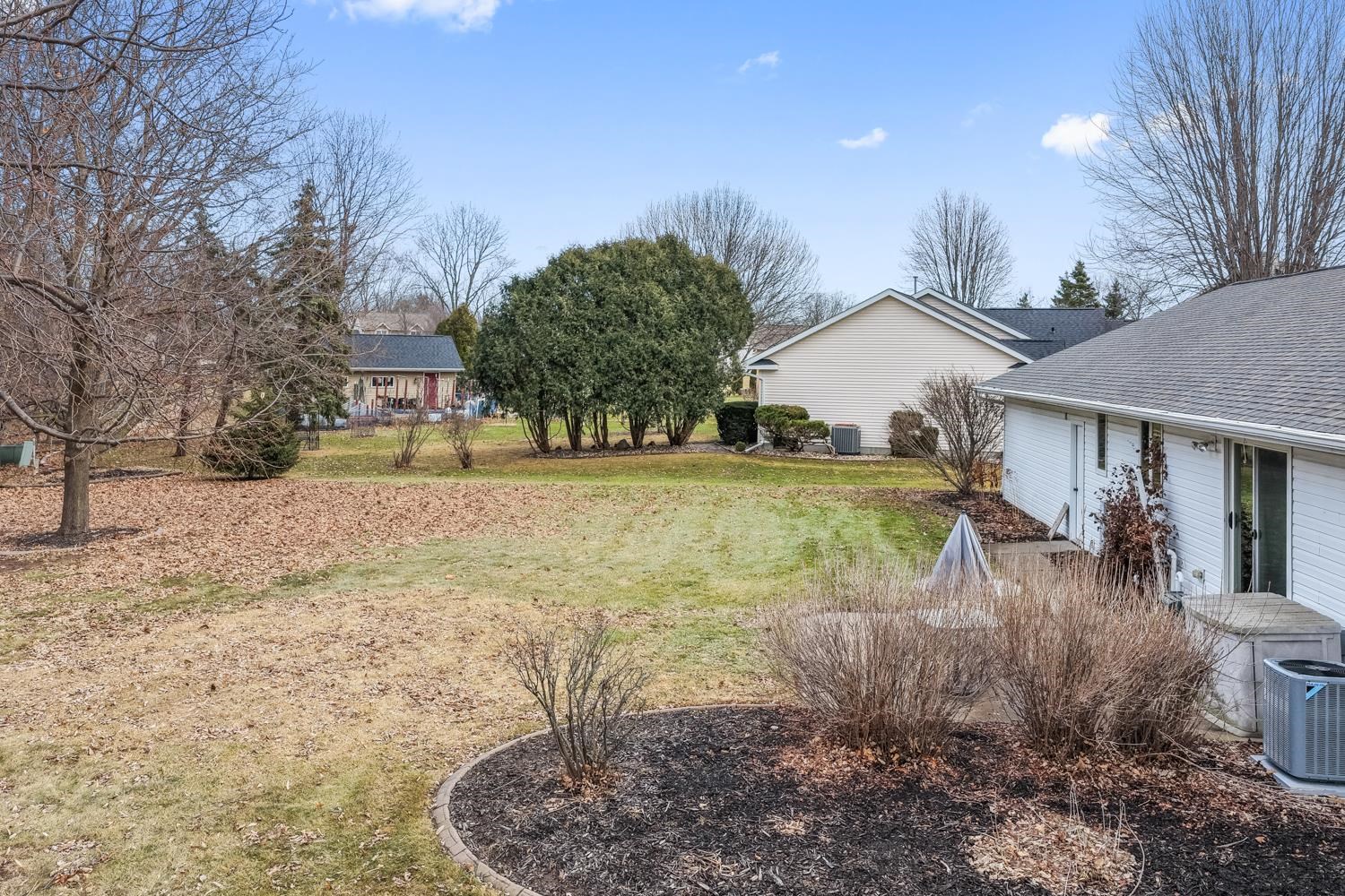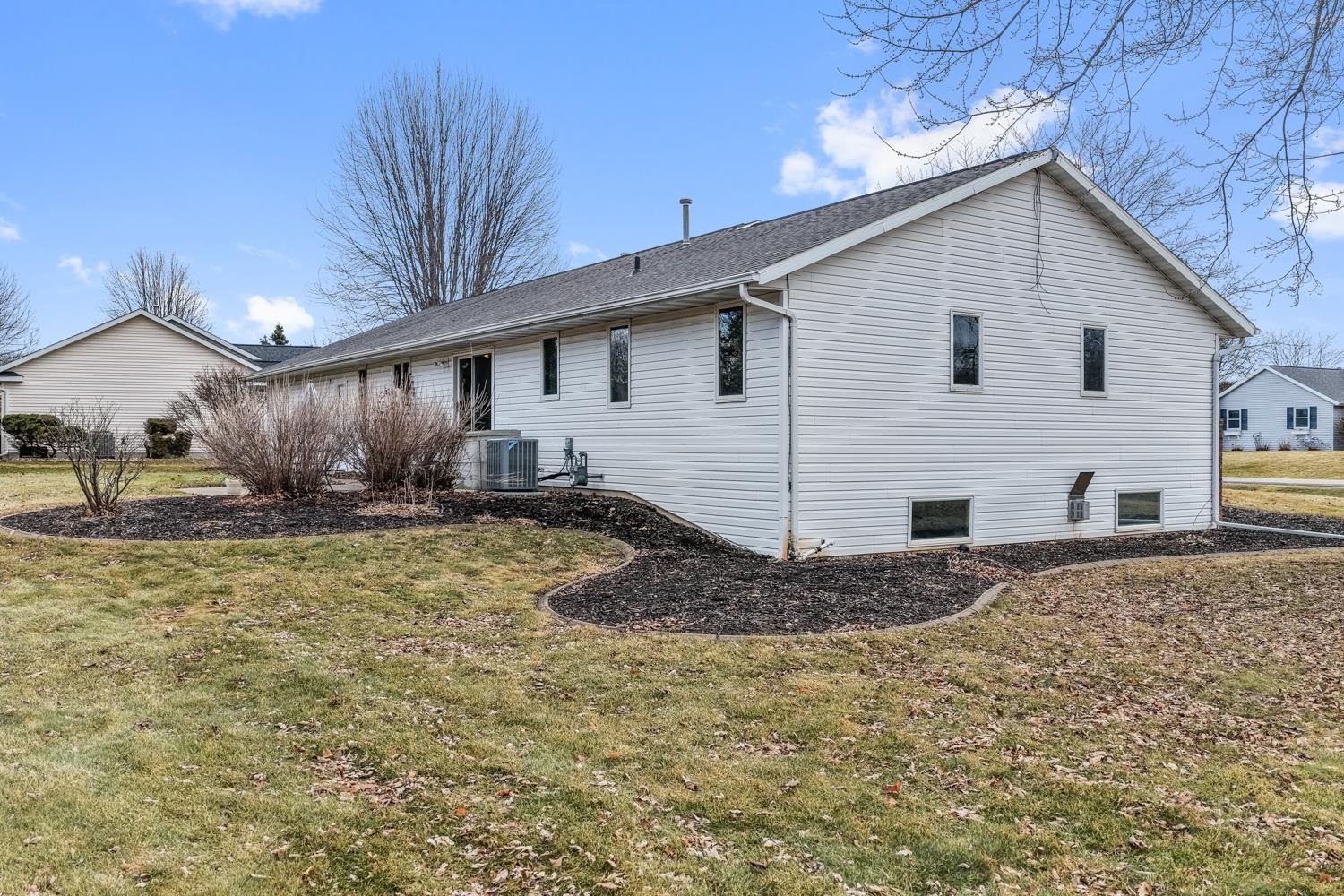Well-appointed 3BR/3.5BA ranch home on a corner lot greets w/ cathedral ceilings & living room w/ large brick-faced gas FP. Kitchen w/ pantry, ample oak cabinetry, granite tops, snack-counter, and stainless-steel appliances. Sliding door opens from dining area to patio & spacious yard. Convenient 1st floor laundry w/ half-bath. Primary bedroom w/ ensuite bath. Bedrooms 2 & 3 share a 2nd full bath w/ granite-topped vanity. LL boasts nearly 1200 sqft of additional finished space composed of an extra-large fam-room w/ gas stove, multi-use den/lounge, and office w/ potential for a 4th bedroom. 3rd full bath w/ walk-in shower completes the lower level. Huge 2.5 stall attached garage is 35' deep for parking up to 4 cars. Well-kept & move-in ready! Buyer responsible for re-keying property.