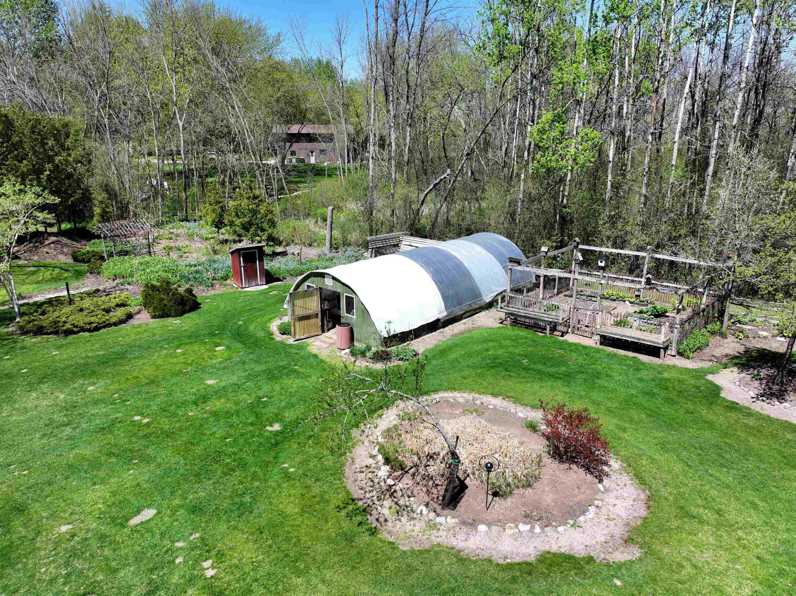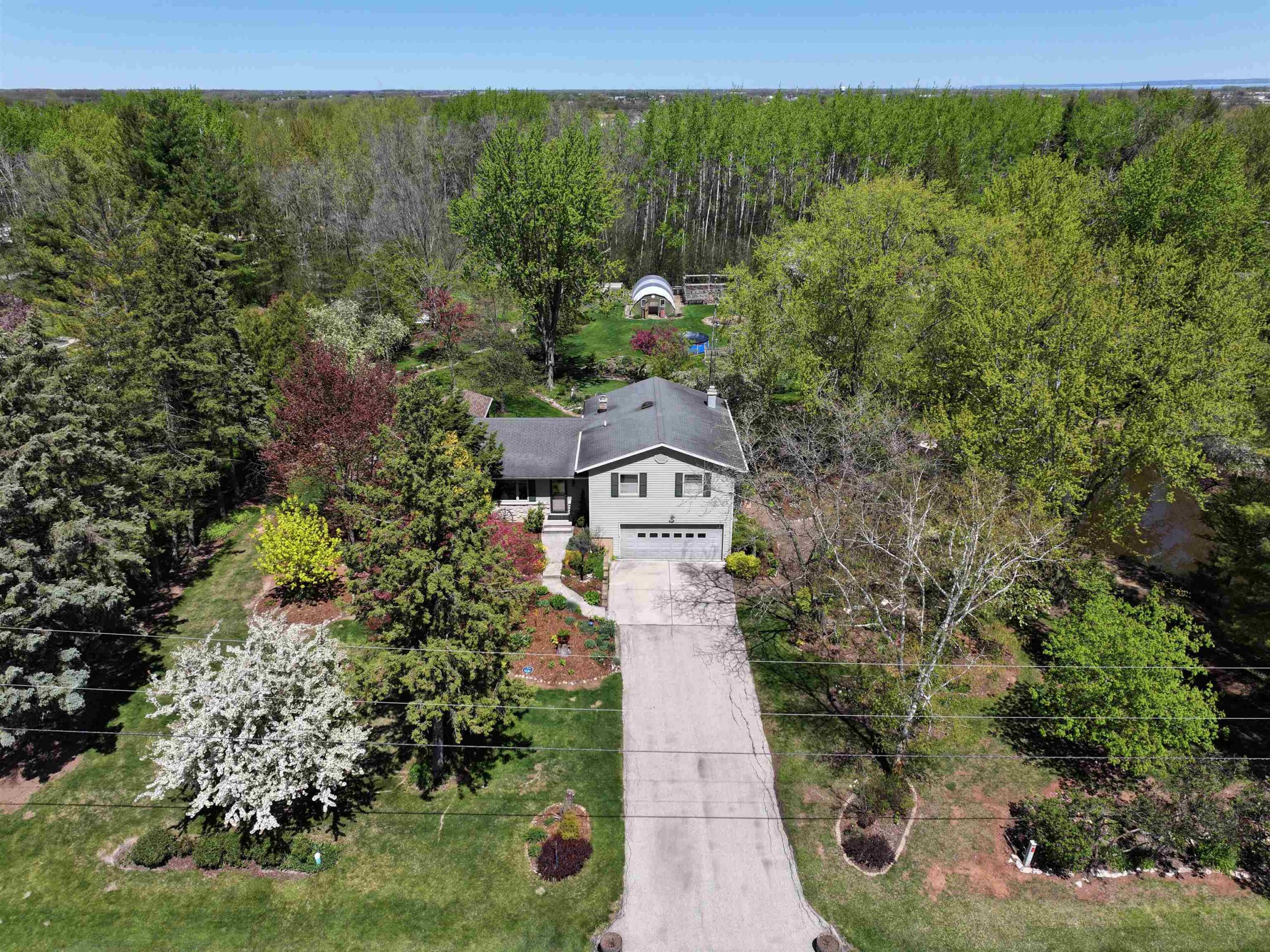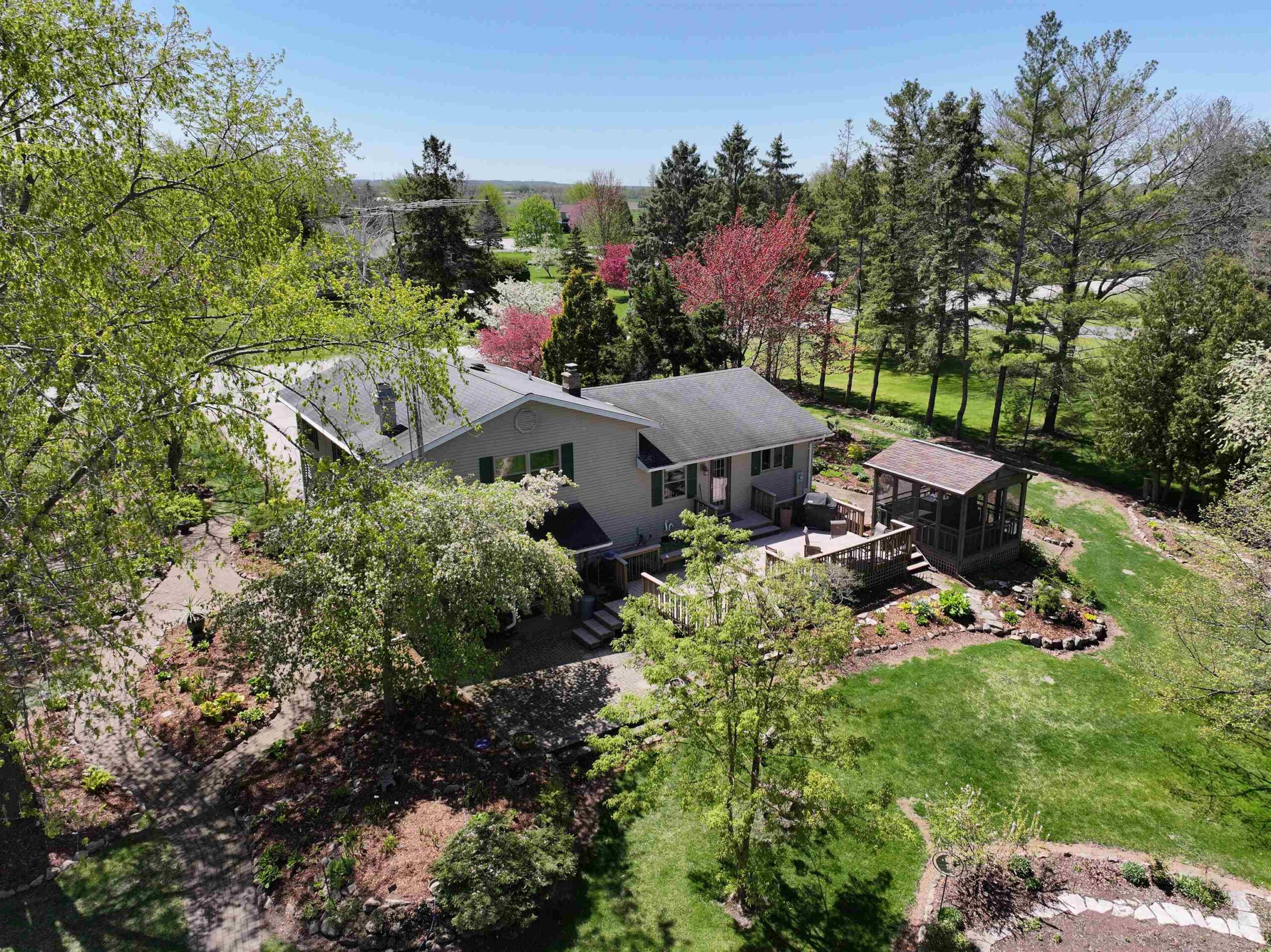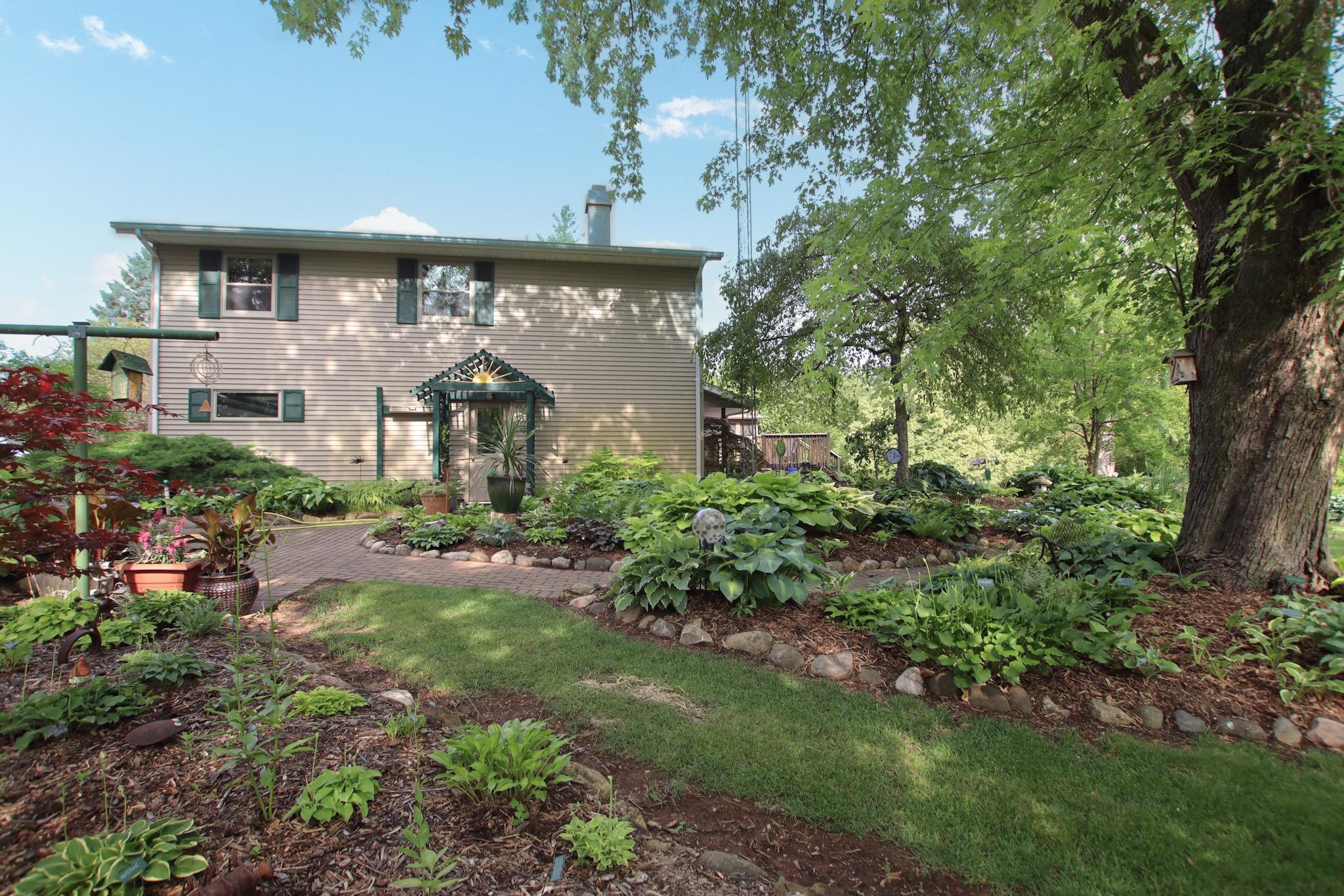 1.7 Acres & Pond! Don't miss out on this truly unique & charming split level home! Boasting 1,680 sq ft with 4 beds & 1.5 baths & 2 car attached garage, this home is full of character inside & out. Step inside to find updated kitchen cabinets, quarter sawn oak & beautiful engineered wood flooring. The kitchen features solid stone countertops, built-ins w/ appliance package. All 4 bedrooms are conveniently located on the same level, including the primary bedroom with a huge walk-in closet. The finished walk-out lower level is perfect for cozy nights by the wood-burning fireplace with a stunning stone surround. This 1.6+ acre lot feels like a sanctuary with a 17 ft deep aerated pond, playhouse, gardening sheds, storage buildings & a hoop-house providing privacy & peaceful views.