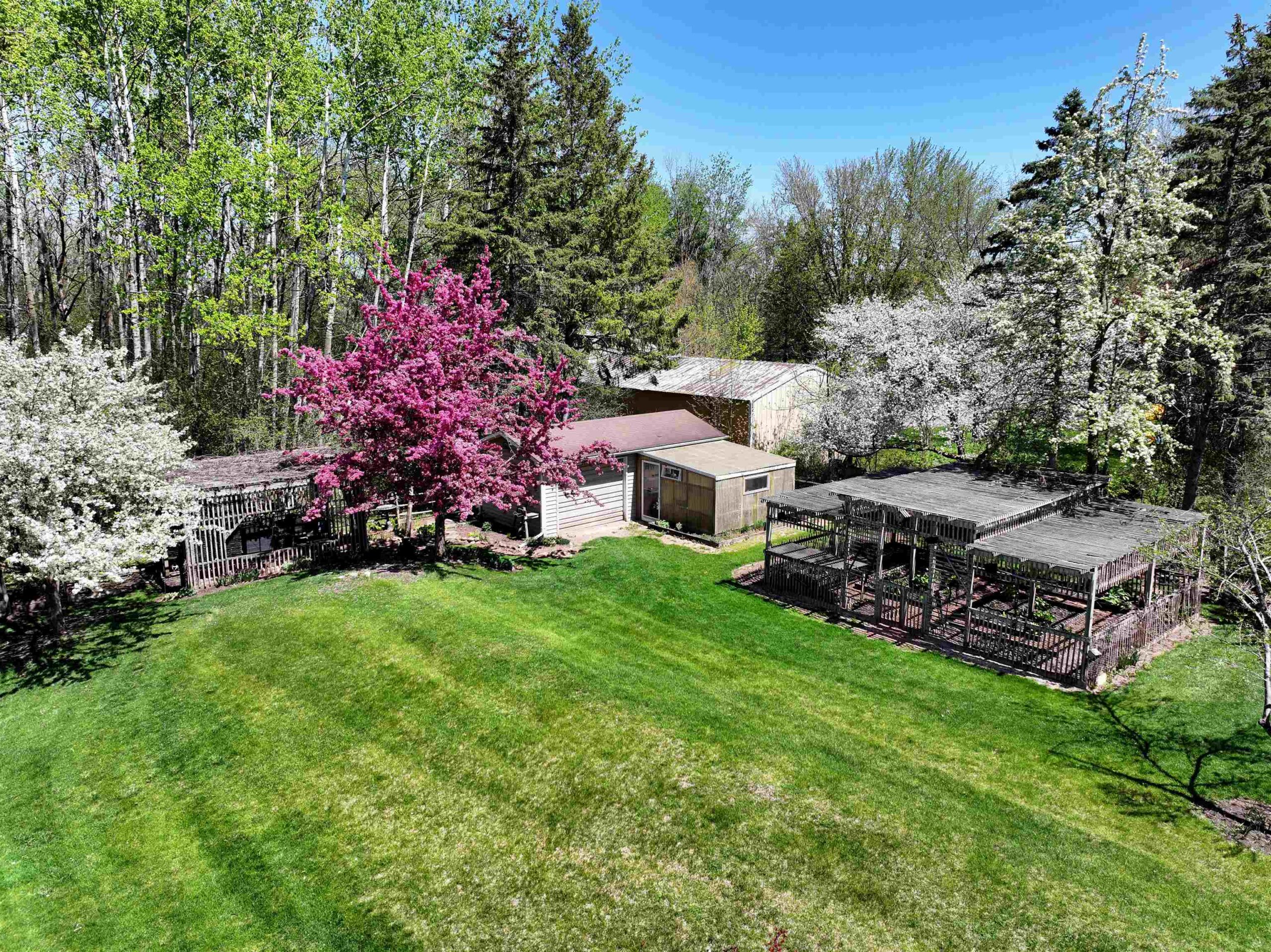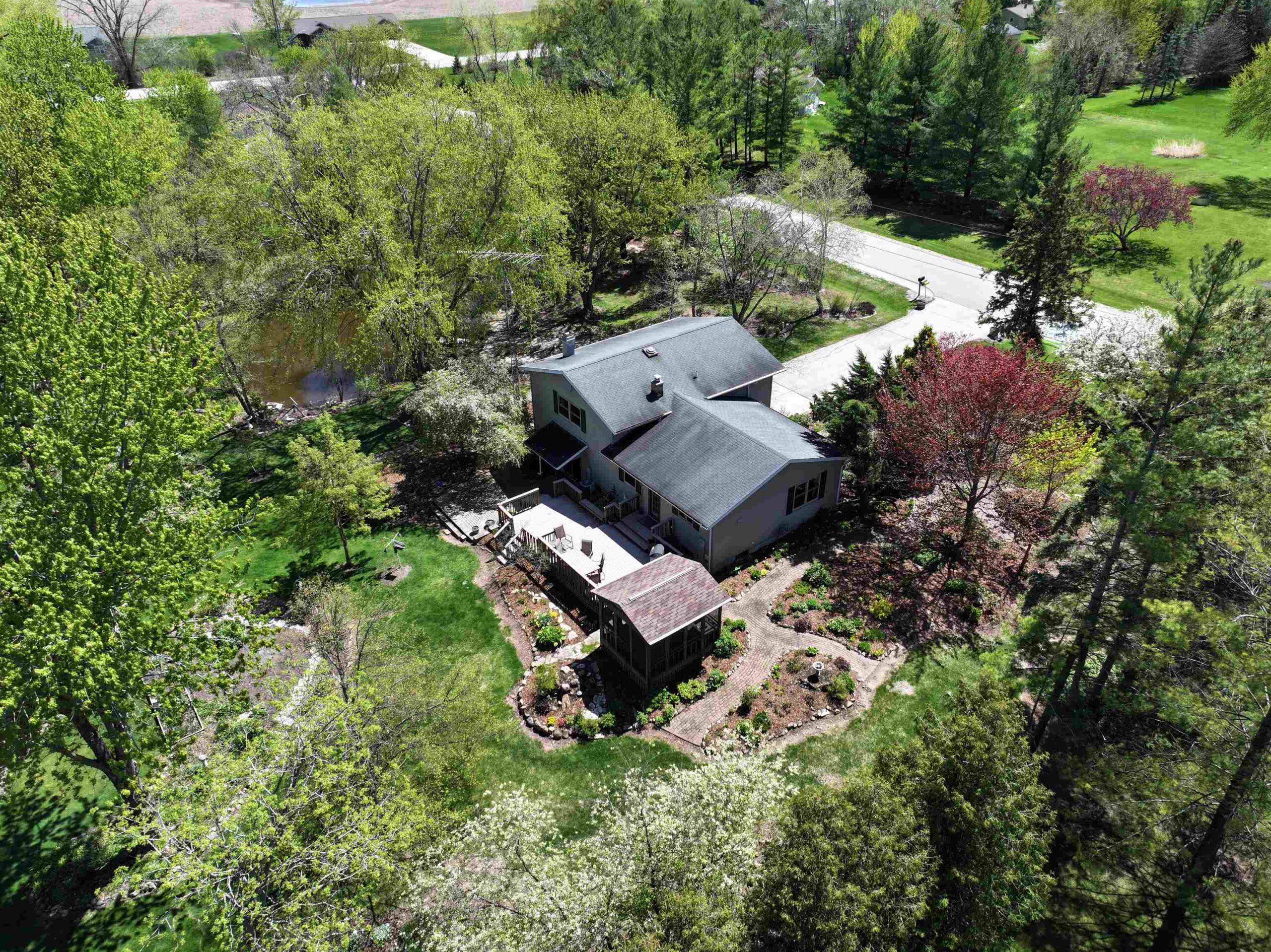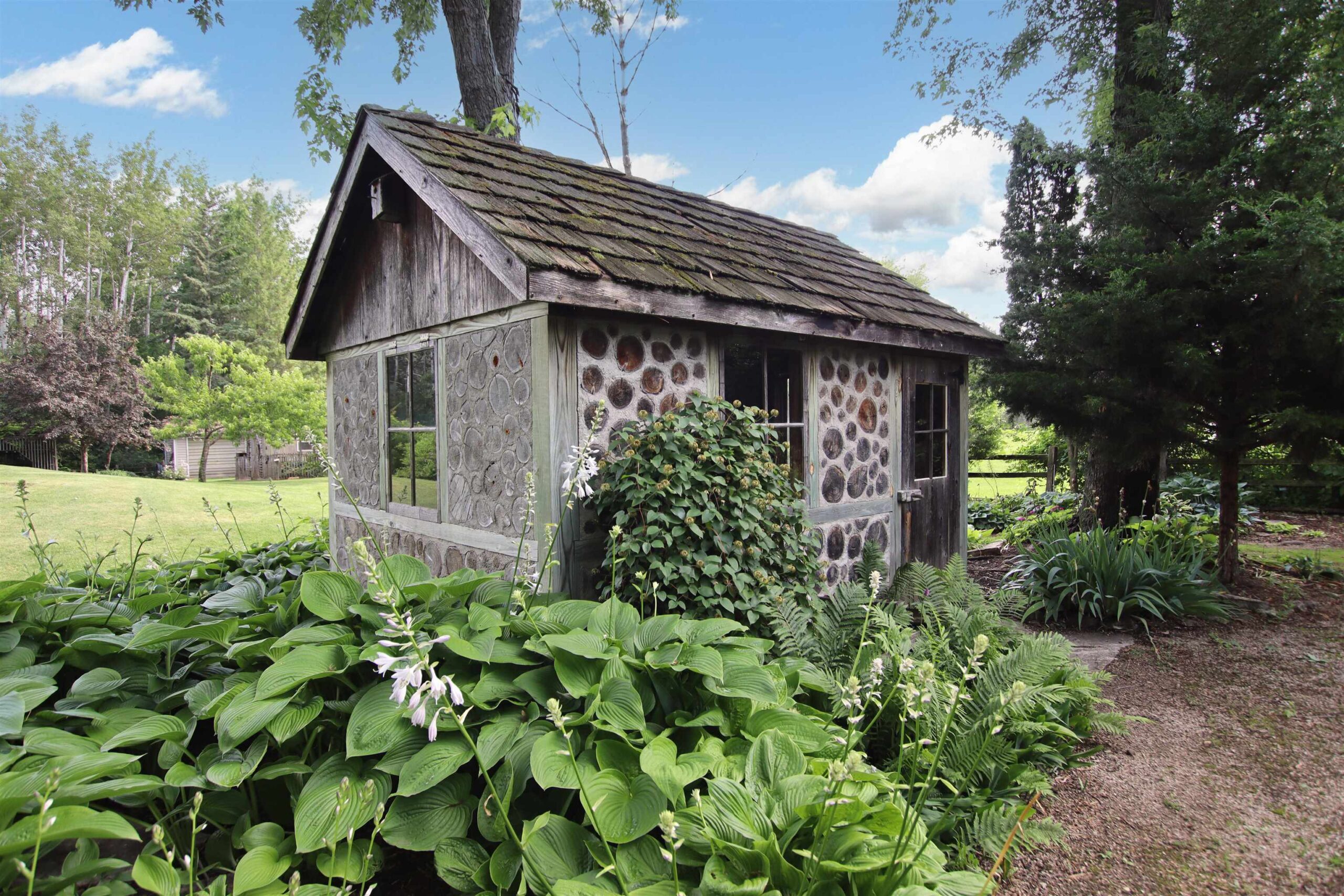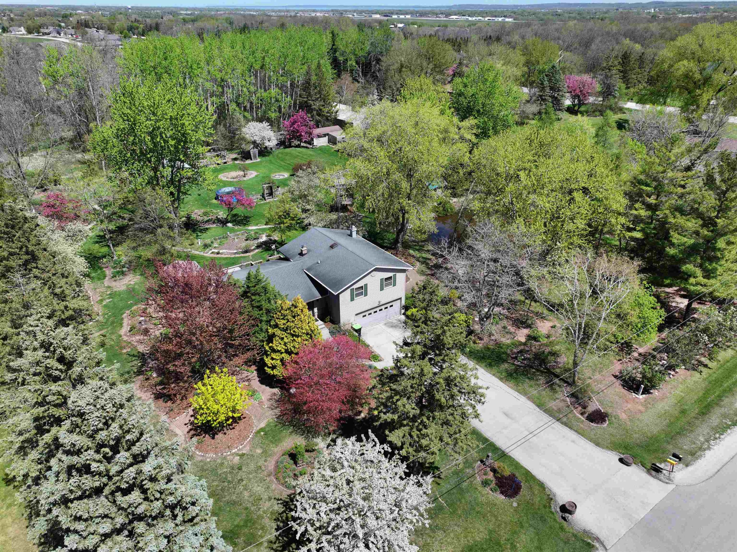 1.7 Acres & Pond! Don't miss out on this truly unique & charming split level home! Boasting 1,680 sq ft with 4 beds & 1.5 baths & 2 car attached garage, this home is full of character inside & out. Step inside to find updated kitchen cabinets, quarter sawn oak & beautiful engineered wood flooring. The kitchen features solid stone countertops, built-ins w/ appliance package. All 4 bedrooms are conveniently located on the same level, including the primary bedroom with a huge walk-in closet. The finished walk-out lower level is perfect for cozy nights by the wood-burning fireplace with a stunning stone surround. This 1.6+ acre lot feels like a sanctuary with a 17 ft deep aerated pond, playhouse, gardening sheds, storage buildings & a hoop-house providing privacy & peaceful views.