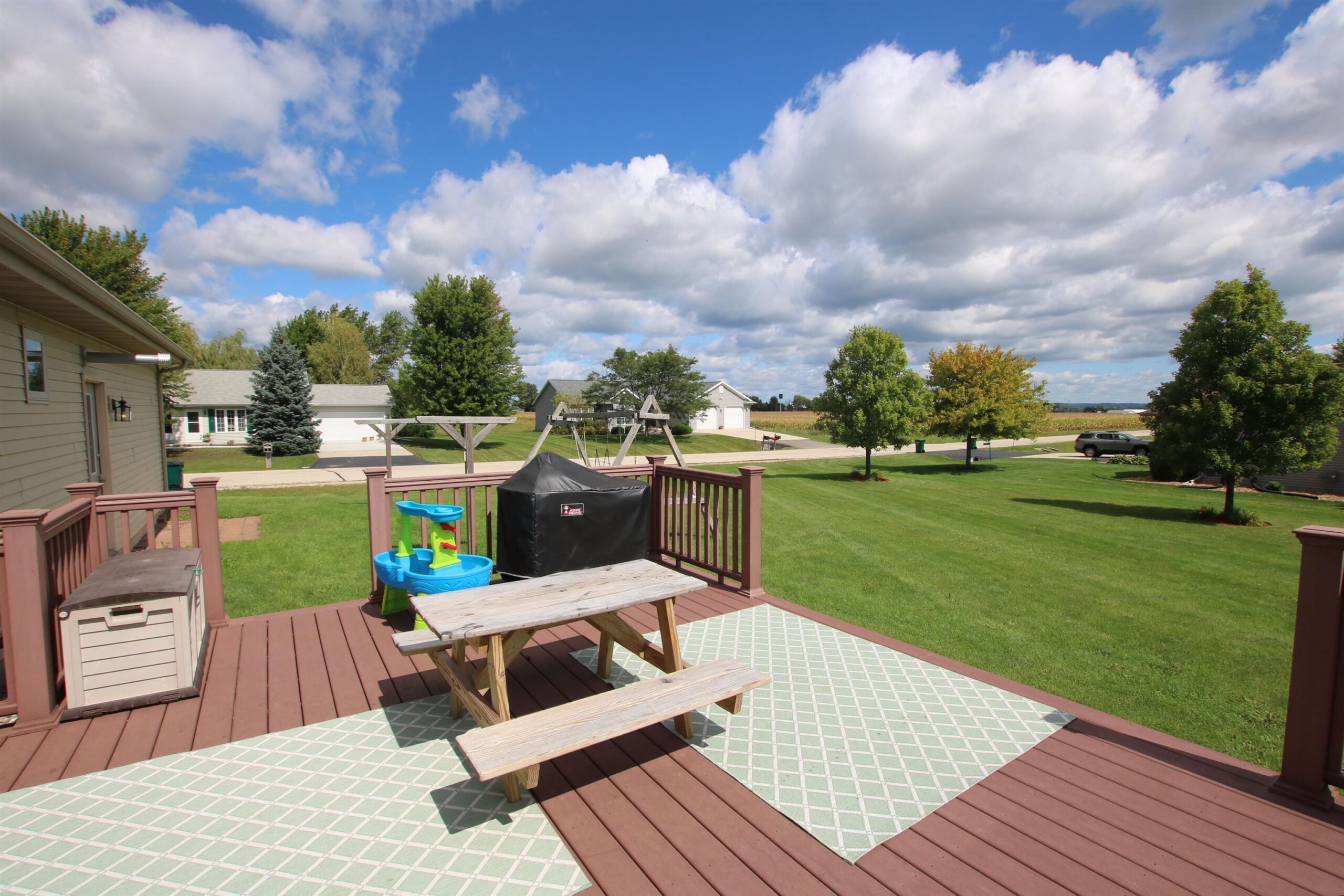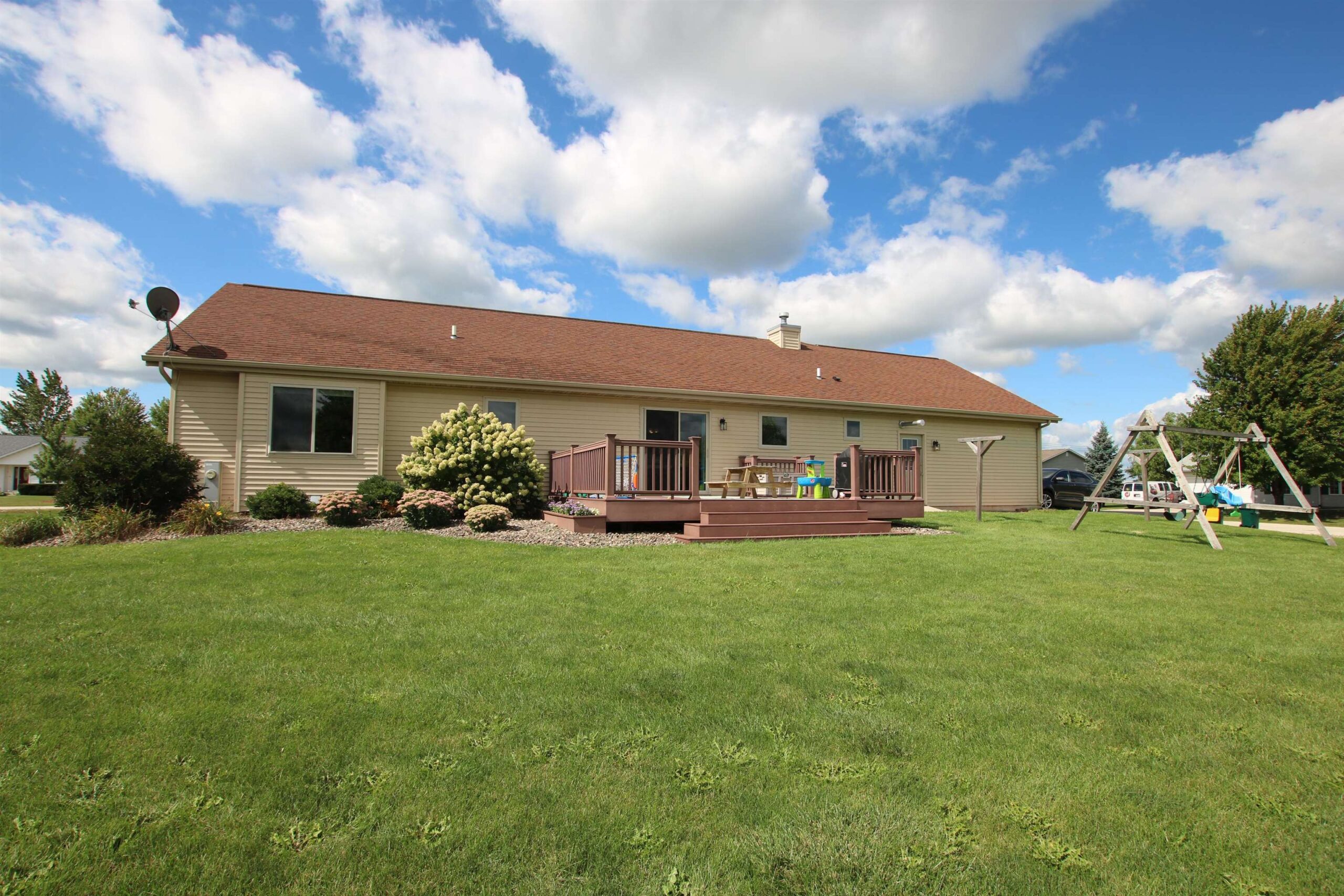 Wonderful country ranch home with so many features! Step inside to see large vaulted ceilings, open concept dining/kitchen with access to the maintenance free deck, main floor laundry, master suite with updated bathroom, and all kitchen appliances included. You will be impressed with the finished lower level featuring a large wet bar, full bathroom, extra living space, and another finished room that could be anything you need it for! Large 3.5 car garage is fully insulated. Almost a half acre lot. No showings until 9/11.