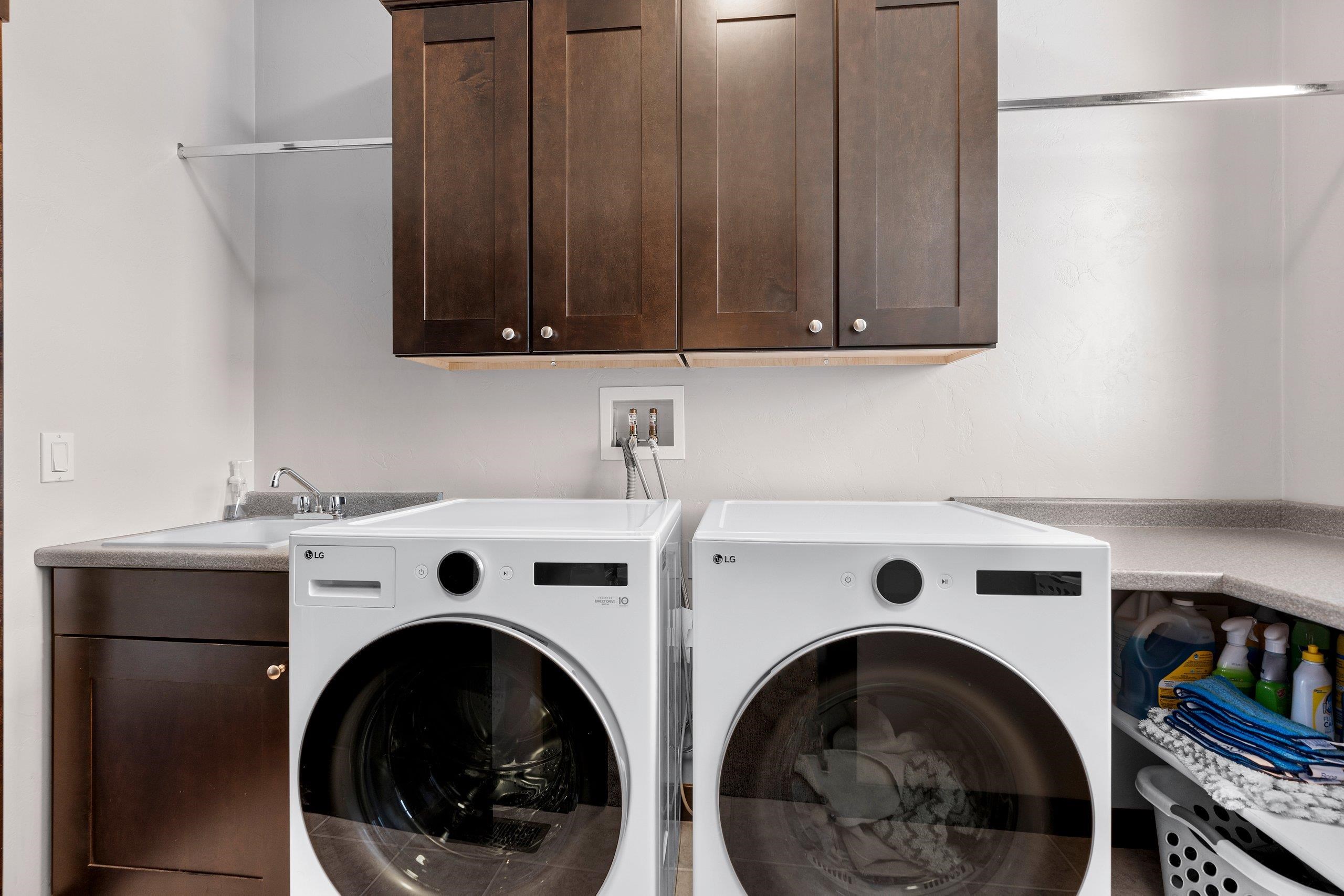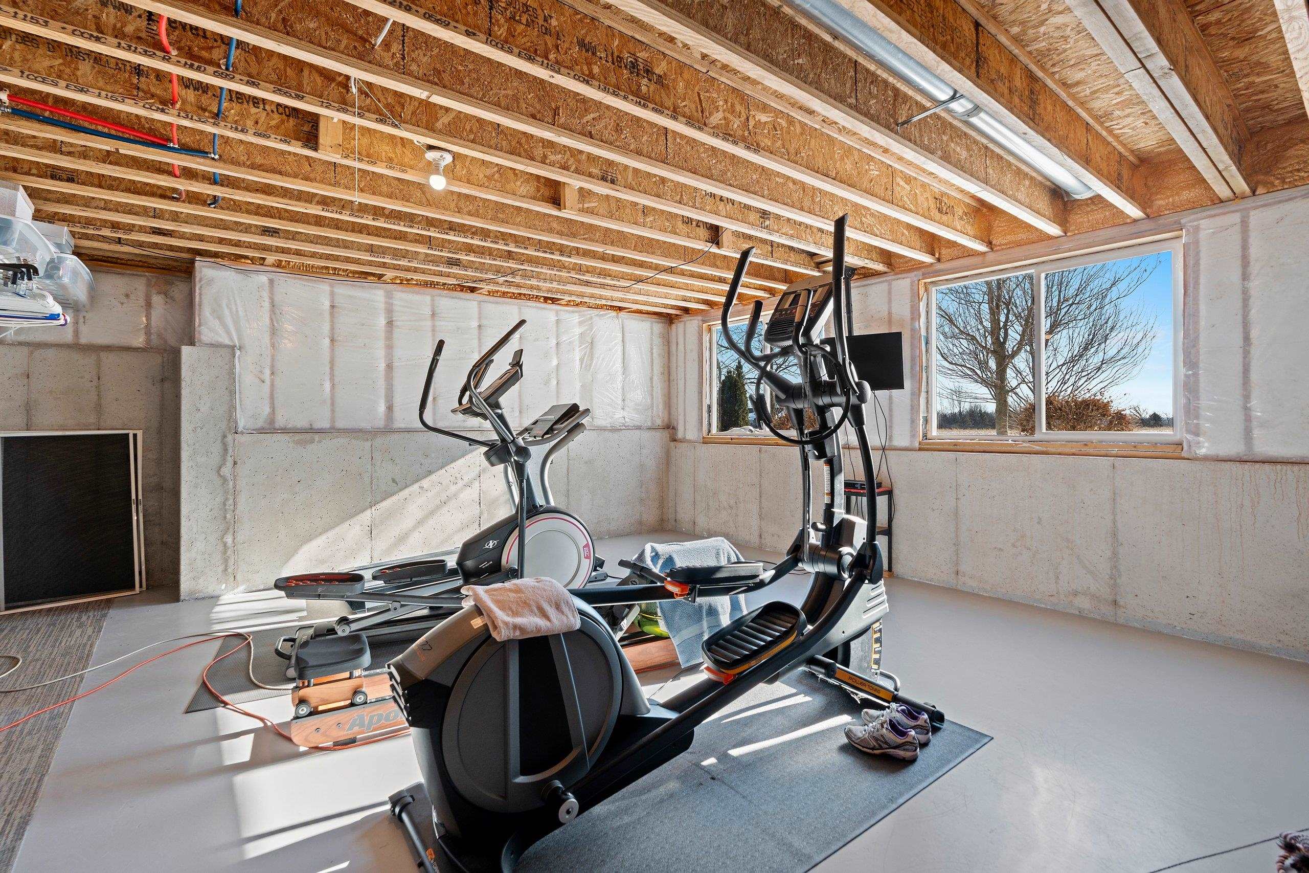 Washer, Dryer, any shelving in basement or garage, hanging lights in basement