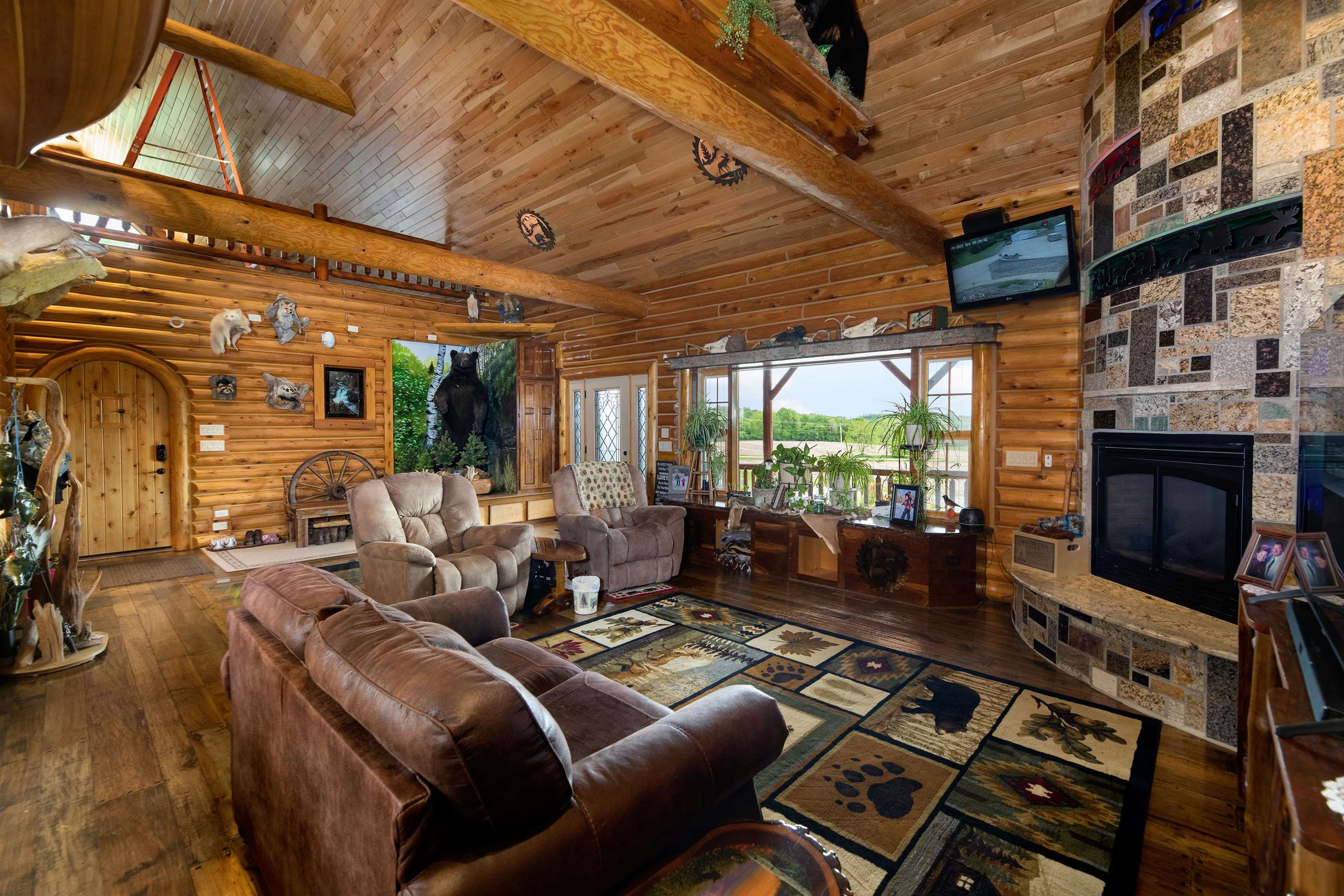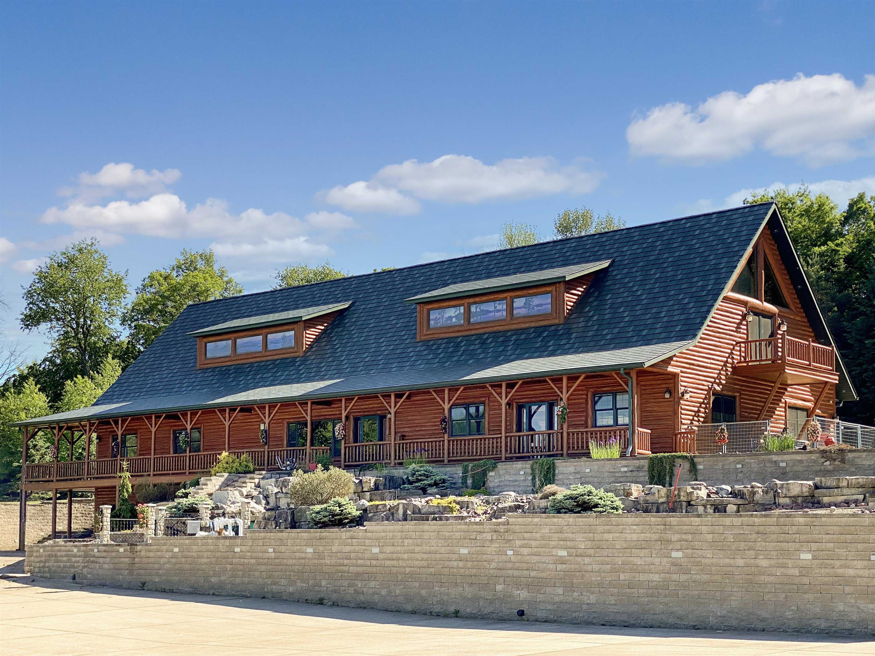 Custom Built Country Retreat with space to work, store, and enjoy the outdoors. If country living with room for projects, equipment, vehicles, and hobbies is your dream, this property delivers. The custom log home features black walnut floors, a cooks kitchen, beautiful mosaic tile baths, metal roof, and a heated 3+ stall attached garage. Thoughtful touches include a lower level kitchen for entertaining, a home theater, and a custom gun case. Outside is where it truly shines with two impressive 40 x 50 heated outbuildings with concrete floors perfect for workshops, storage, toys, or small business use. A heated driveway pad adds everyday convenience. Luxury living paired with the space and functionality that makes country life so enjoyable.