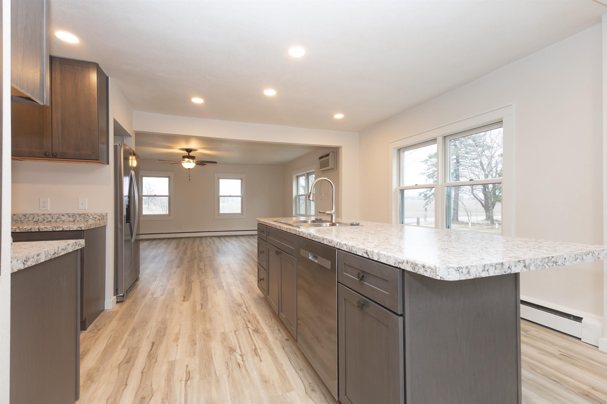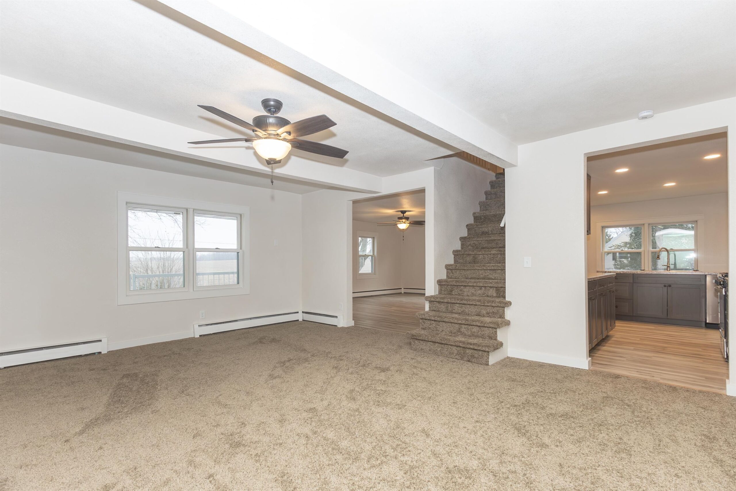 Enjoy convenient country living just minutes from Greenville! This beautifully renovated 3 bedroom, 3 bath farmhouse has been updated from top to bottom and sits on a property featuring a 4 car garage and a classic 2 story barn. Inside, you’ll find a bright new kitchen with appliances included, plus spacious dining and living rooms filled with natural light perfect for everyday living or entertaining. The main level also offers laundry, a full bath, and a versatile den/office. Upstairs features all three bedrooms and two additional baths, including a private owner’s suite with a walk-in tile shower and an oversized walk-in closet. All this with a new roof, gutters, well, well pump, furnace, and so much more. Seller will complete the concrete sidewalk and seeded yard when weather permits.