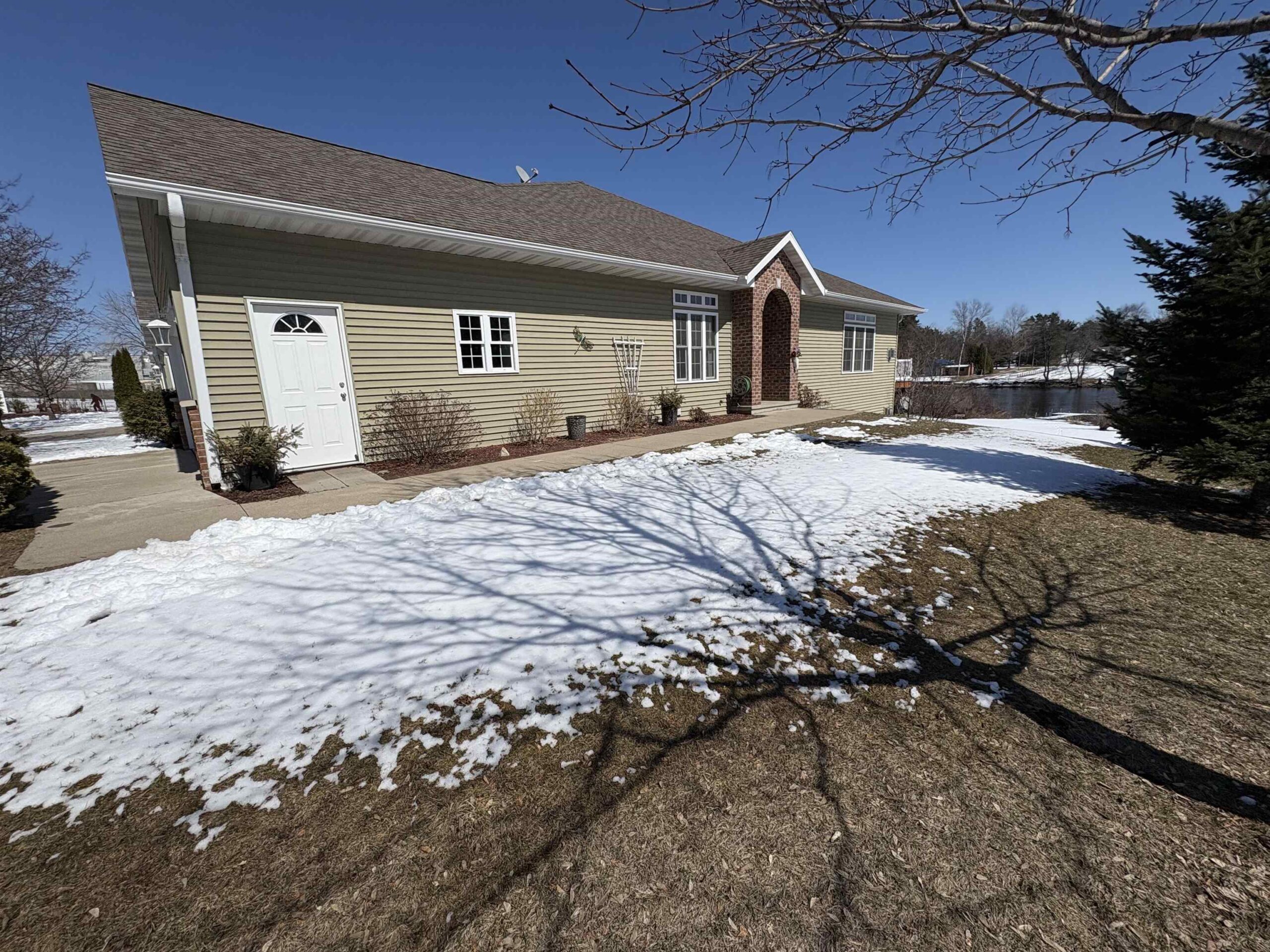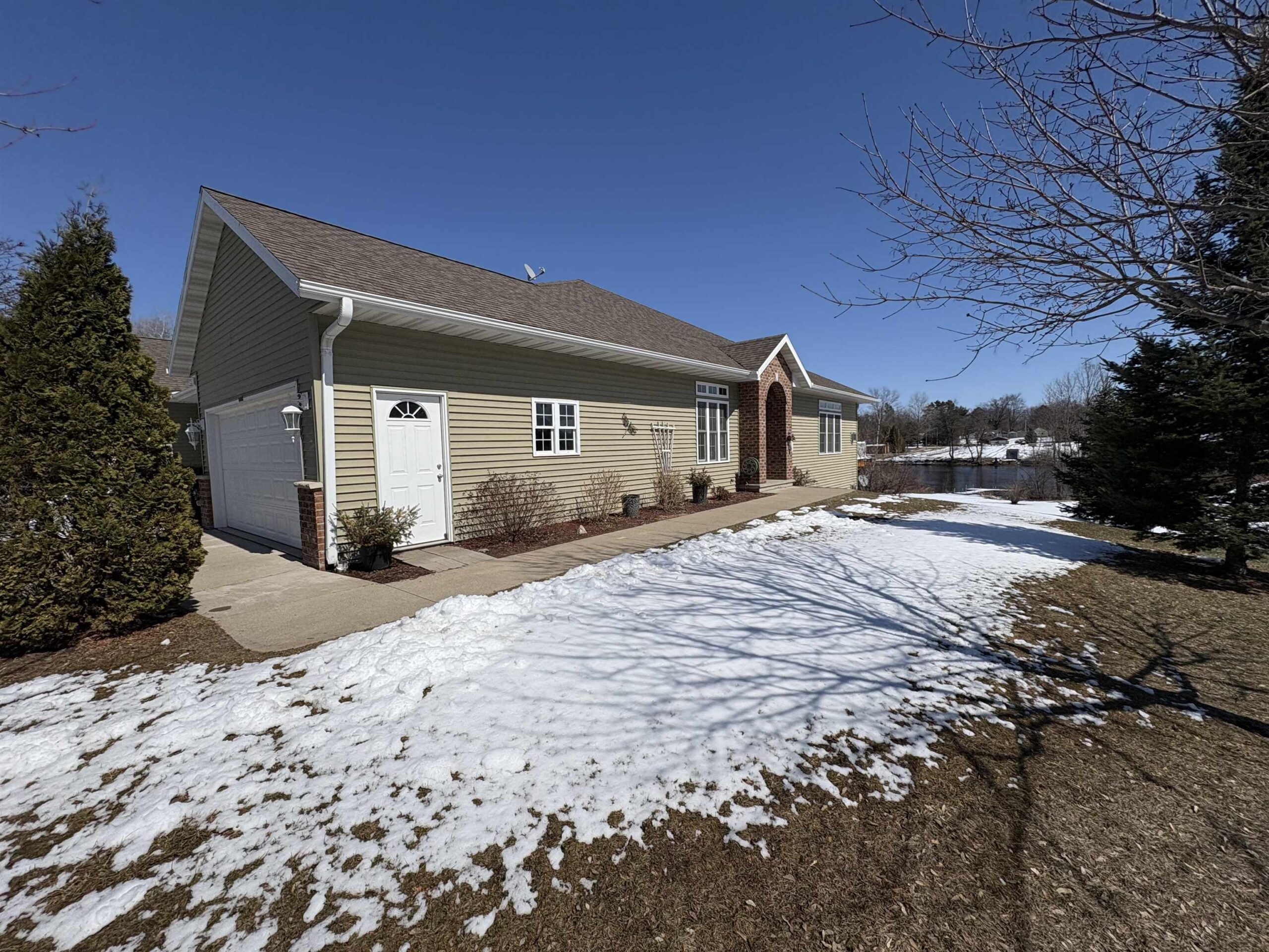 Gorgeous 1-Story Condo located on the scenic Wolf River, just outside of Shawano. This beauty is buttoned up and ready for its new owners to move right in, relax, & enjoy the views & perks this property has to offer! Open concept layout, w/ a gorgeous kitchen featuring a walk-in pantry, large living room w/ a gas FP & stunning views of the river, plus a patio door to the refinished raised deck. Large master suite boasting a walk-in closet & full master bath w/ walk-in shower. Main floor laundry, plus 2nd bedroom & 2nd full bathroom. Recently finished walk-out basement includes a sprawling family room w/ 2nd Gas FP, a 3rd bedroom, & 3rd full bathroom! Small unfinished area for storage. 2-car attached garage. Low monthly condo dues. 55+ Community. 2 shared docks to enjoy the water! Call now!