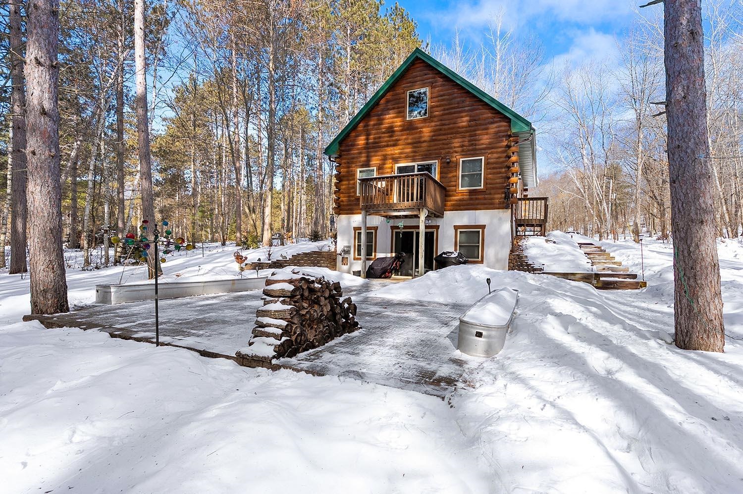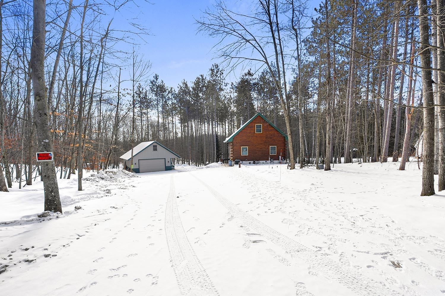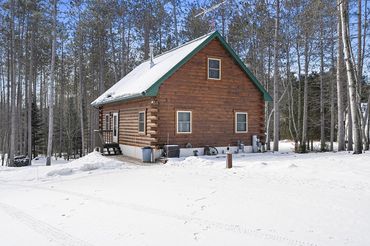 Private Northwoods setting. Beautifully maintained 1.5 story log home nestled among the trees on a 1.50 acre setting w/adjoining 1.53 acre parcel included offering its own well &septic + storage container. Sought after location within minutes to Lake Noquebay boat launch for excellent fishing & watersports. Direct access to the extensive ATV & snowmobile trail system right out your back door. Open concept great room w/wood burning fireplace, Exposed beam vaulted ceiling & T&G walls for that rustic feel. 2 main level bedrooms plus full bath & an upper loft bedroom overlooking the great room. All new appliances including washer & dryer. Full walk-out lower level w/family room w/exposed ceiling, full bath & separate laundry area. Relaxing paver patio. 2.5 Car detached garage w/upper storage