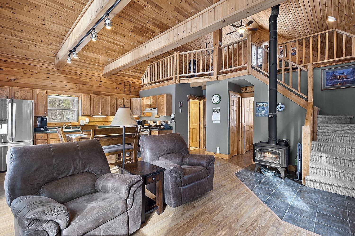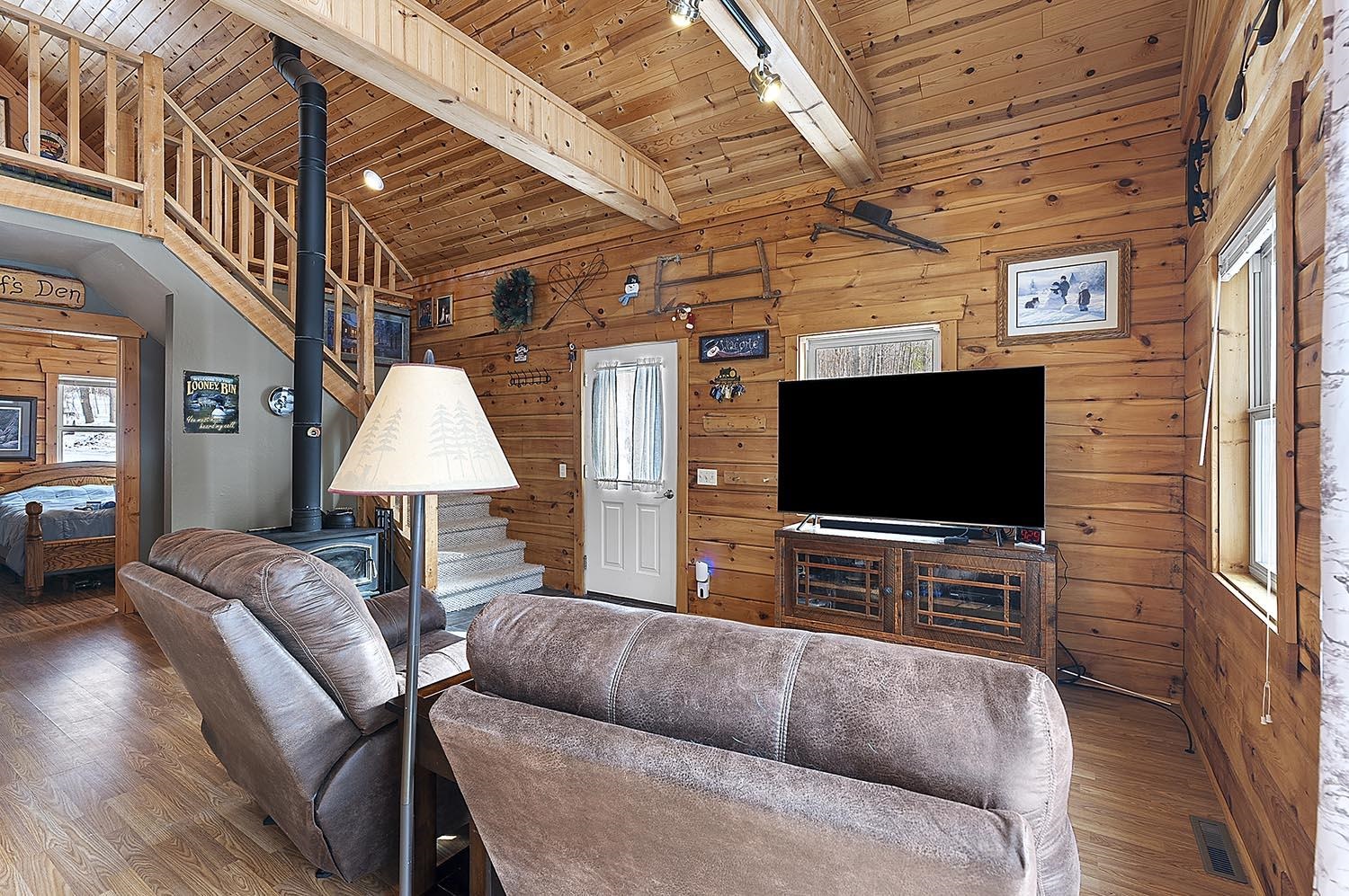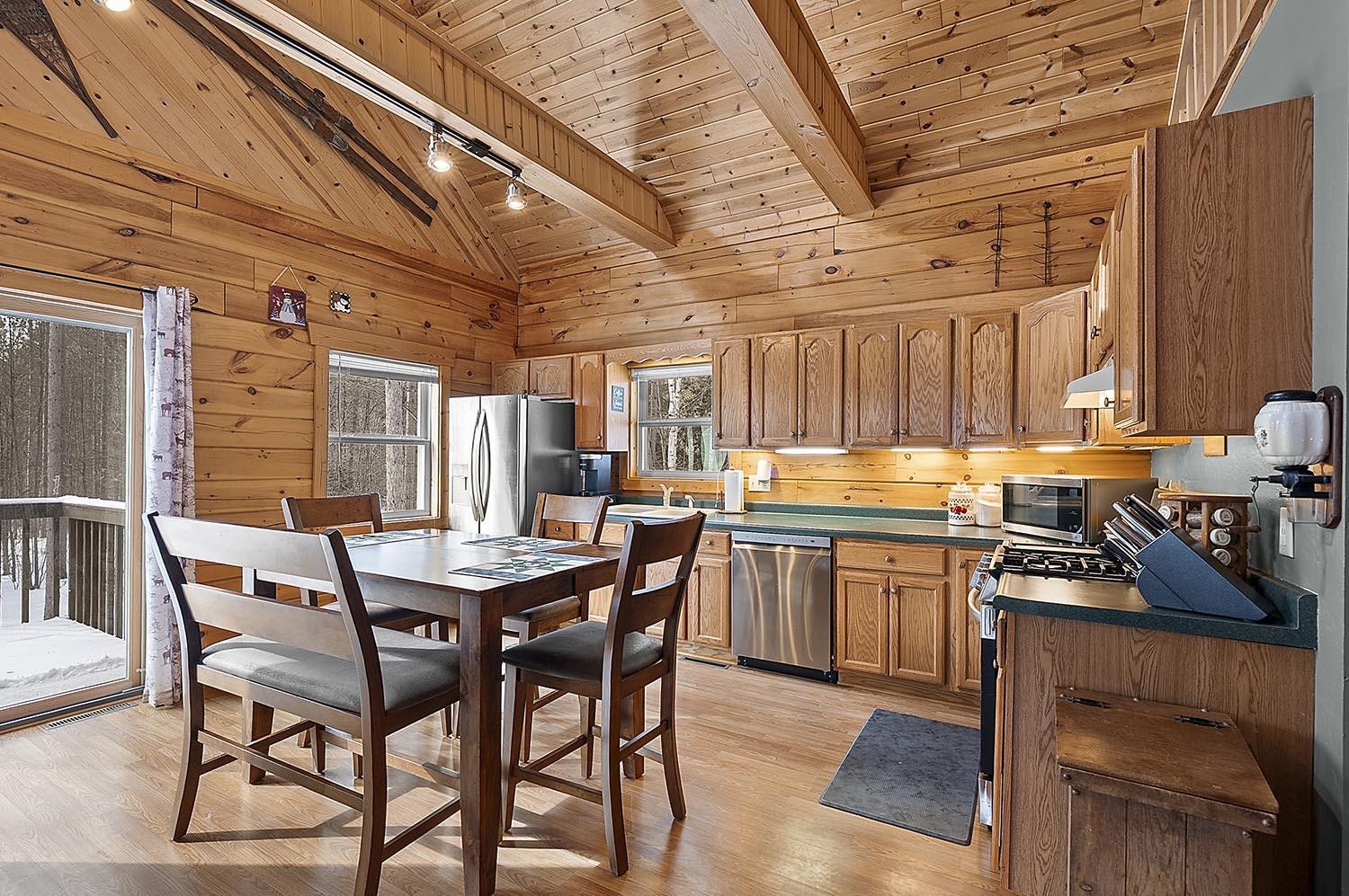 Private Northwoods setting. Beautifully maintained 1.5 story log home nestled among the trees on a 1.50 acre setting w/adjoining 1.53 acre parcel included offering its own well &septic + storage container. Sought after location within minutes to Lake Noquebay boat launch for excellent fishing & watersports. Direct access to the extensive ATV & snowmobile trail system right out your back door. Open concept great room w/wood burning fireplace, Exposed beam vaulted ceiling & T&G walls for that rustic feel. 2 main level bedrooms plus full bath & an upper loft bedroom overlooking the great room. All new appliances including washer & dryer. Full walk-out lower level w/family room w/exposed ceiling, full bath & separate laundry area. Relaxing paver patio. 2.5 Car detached garage w/upper storage