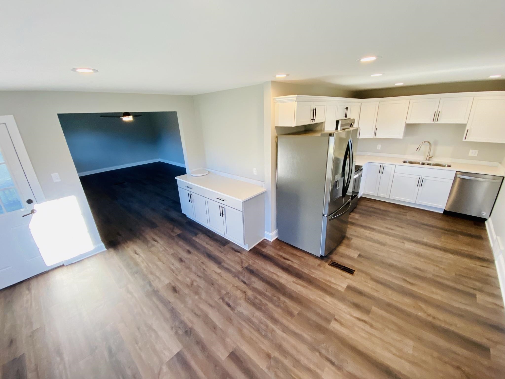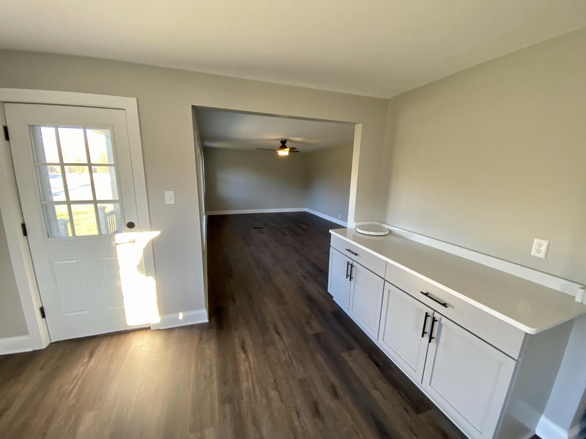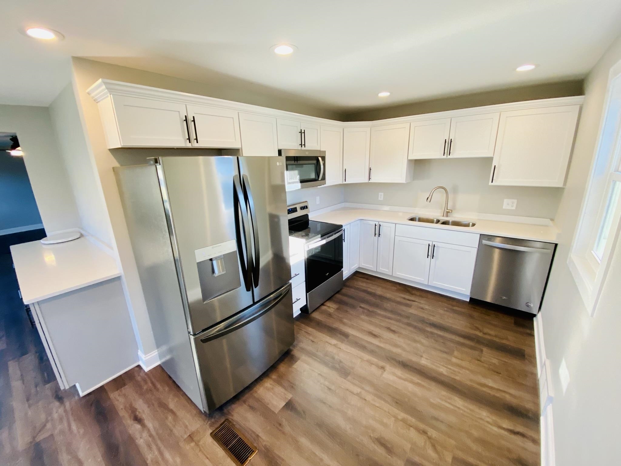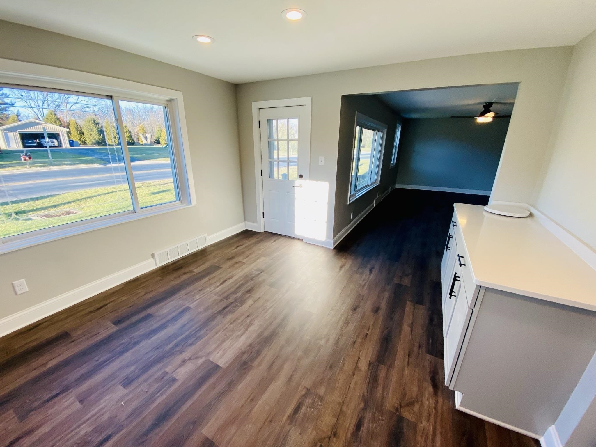 How country feels! This remodeled beauty offers 3 BR, 2 BA, approx 1300+ sq ft of completely renovated living space inside & out. Highlights include new kitchen cabinets with solid surface quartz Ctops, stainless steel appliance package, & frontloading washer/dryer all included. Laminate vinyl plank flooring throughout the high traffic areas & BAs/laundry room, new carpet in all BR. New roof, furnace, water heater, water softener, & some new windows, all new trim & doors. Additional features include updated electrical & plumbing & fixtures for each. Fenced yard, attached 22x14 car garage.