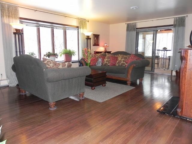 Your private oasis awaits. Feel like you are on vacation everyday in this 3 bedroom(3rd bedroom currently used as laundry rm) 2 bath sprawling ranch. Open floor plan allows for entertaining. Large kitchen with stainless steel appliances, eat-in area and separate sitting area with fireplace. Large dining room with built in serving station connets to famiy room . Enjoy quiet evenings in the sunroom off the large sunk-in living room filled with stately book shelves. Must view to appreciate additional features.