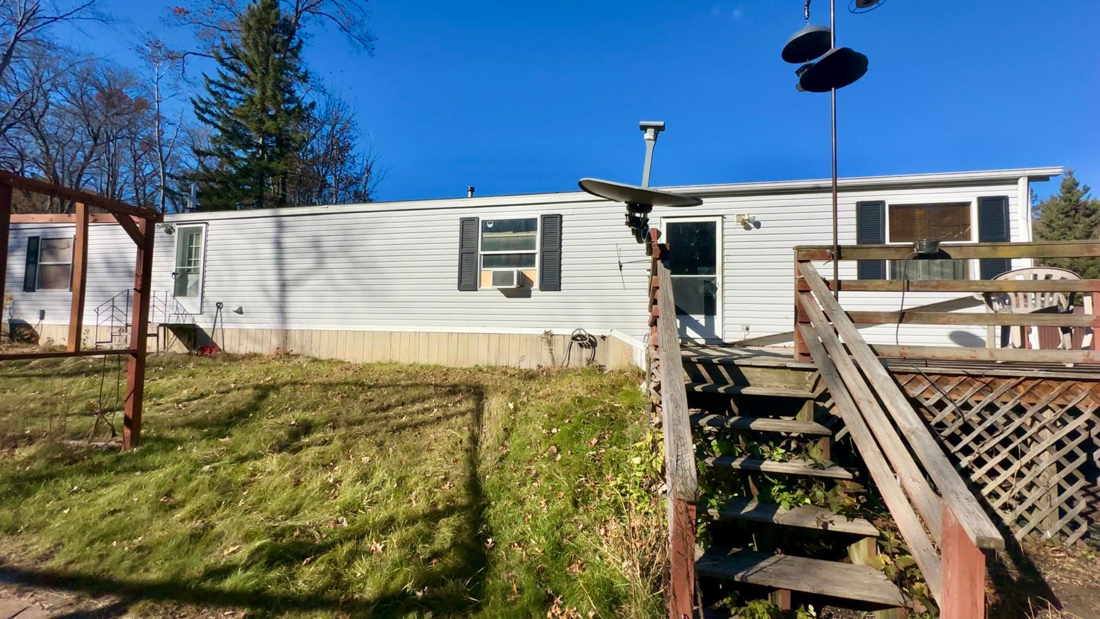 Venture north to W8803 Park Street, Beecher WI ! This 1,216 sq ft, 3-bedroom, 2-bath single-wide mobile home sits on 1.76 acres and offers plenty of potential. Features include a 2-stall detached garage with remote opener, gas fireplace, and owned 500-gallon propane tank. Updates include a new roof in 2020, Septic 2010, well pressure tank in 2023, and furnace in 2016. Two window A/C units are included. Some TLC needed to make it your own! Conveniently located near ATV/UTV and snowmobile trails— for Northwoods adventure seekers!