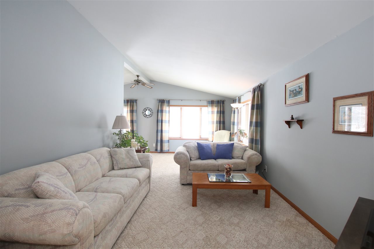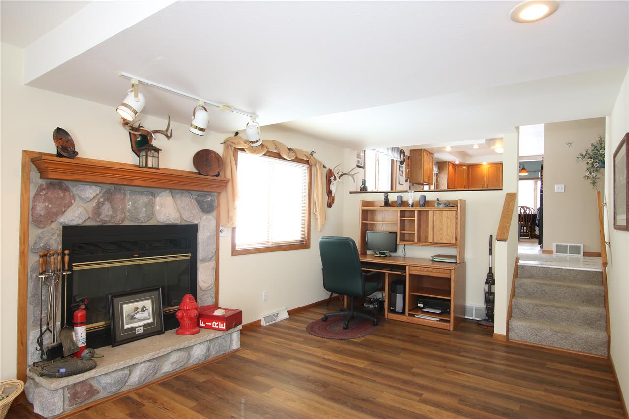 Spacious quad w/great floorplan in the Town of Eldorado. Step in & fall in love w/ huge family room w/wood fireplace trimmed in stone and plenty of perfect wall space for your trophy buck or walleye! Kitchen features handy breakfast bar plenty of counterspace, charming corner table & bench & countryside views! Kitchen leads to large LR plus dining rm which could double as playroom/office. House has total of 3 bedrooms & 2.5 baths. Great basement space w/appx. 10ft walls. Literally two minutes from Hwy 23. 3 car att garage, shed & kennel incl. Additional buildable almost 1 acre lot available!