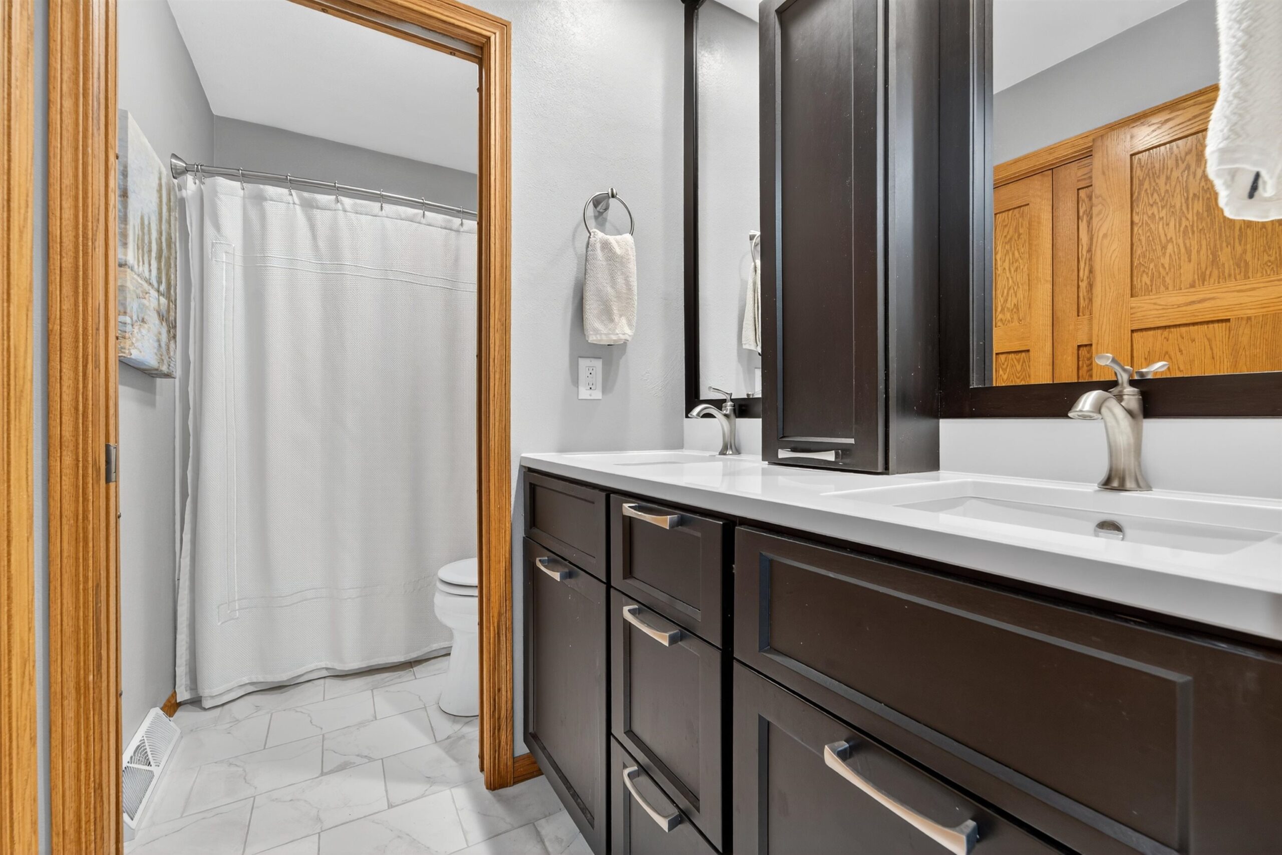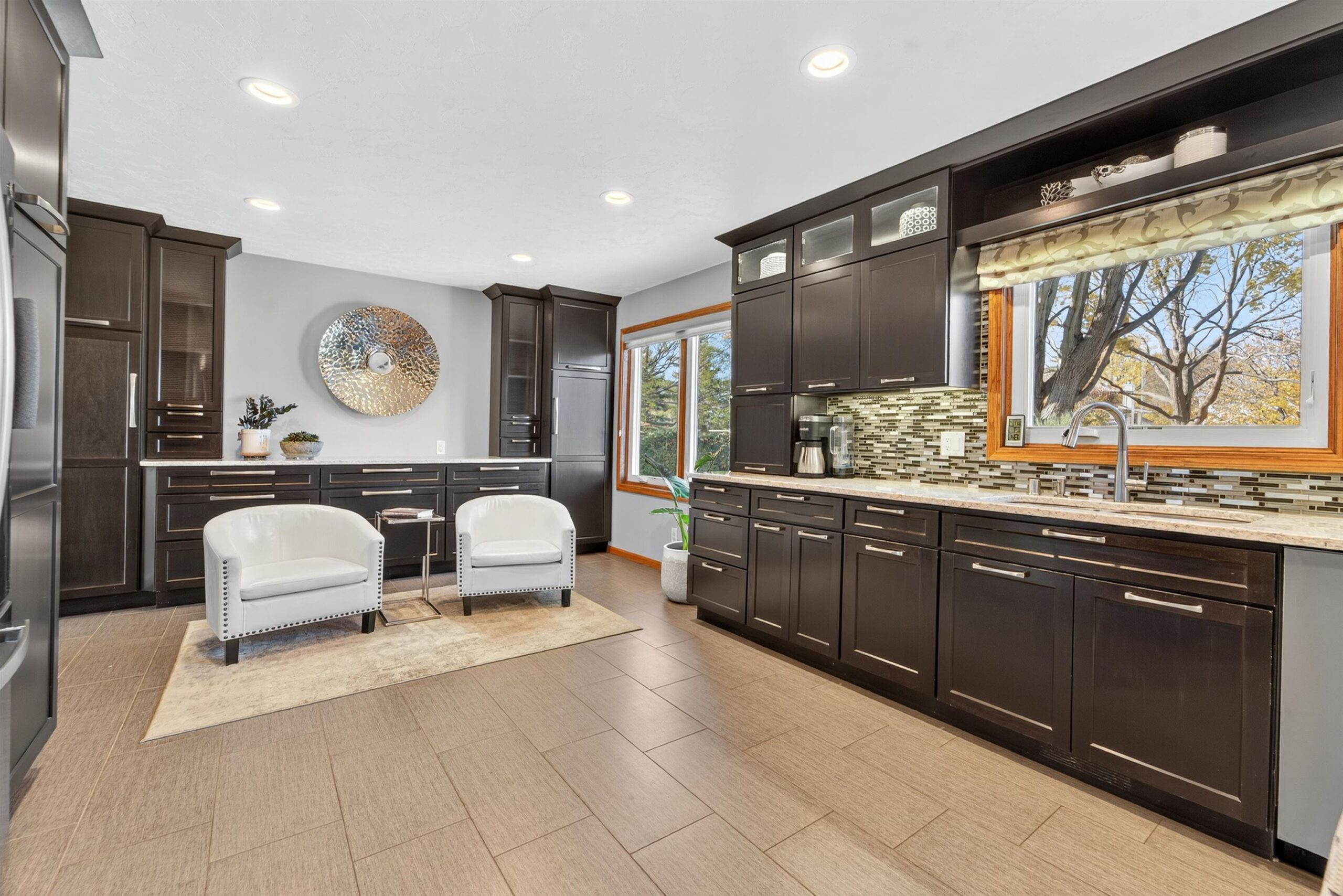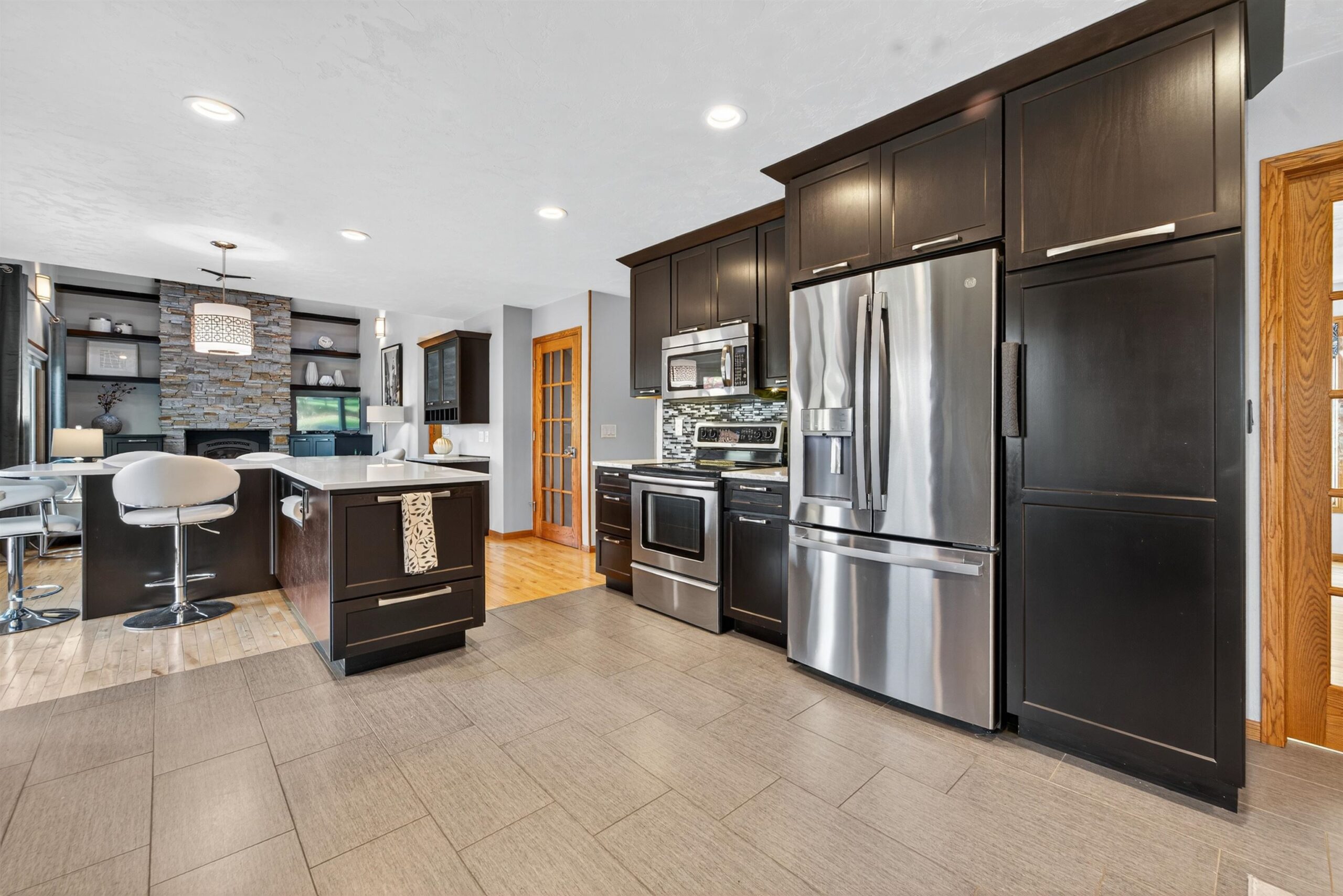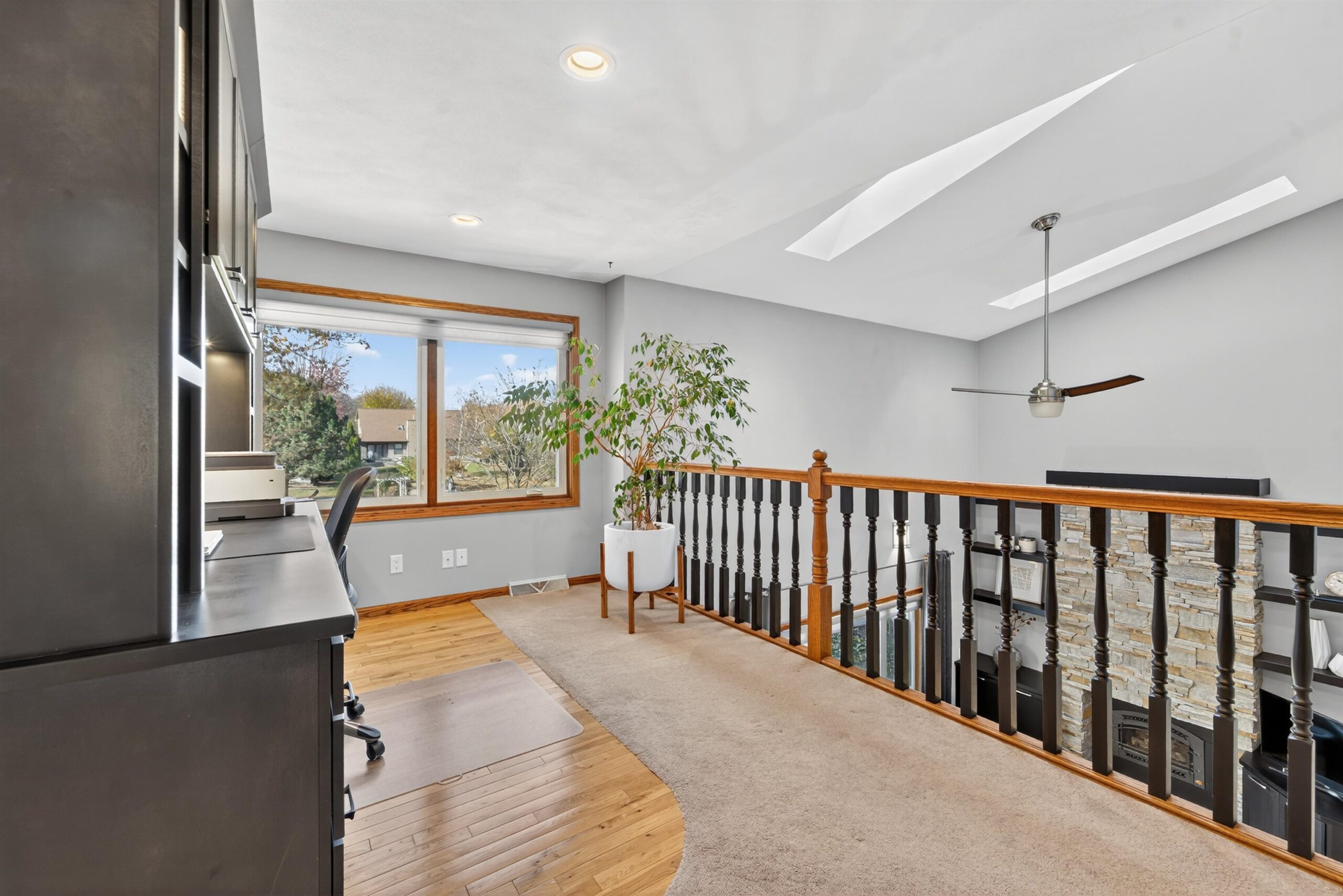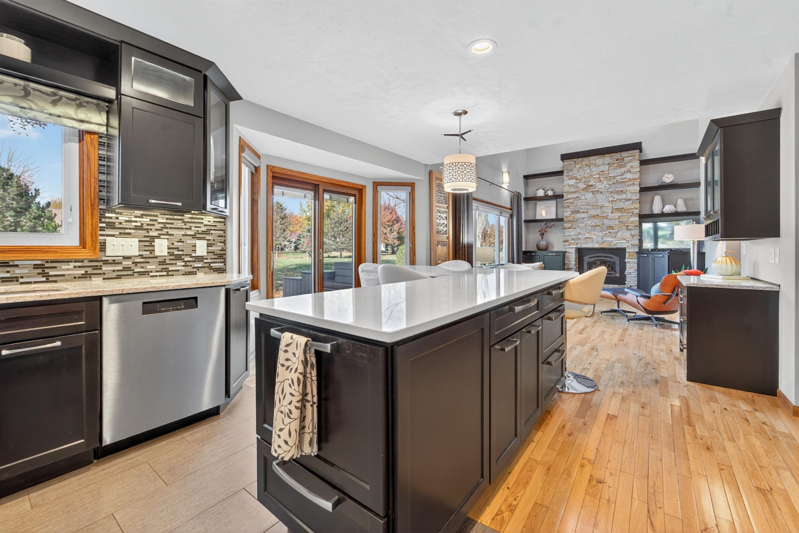 Truly a MUST SEE! This fully renovated home hosts more updates than can be mentioned here! The open concept features a sleek, contemporary, chef-worthy kitchen with stylish finishes. The open flow carries into the bright 2 story living room with a gorgeous fireplace, surrounding built-ins & huge windows overlooking the park-like yard. A 2nd level loft offers a fabulous view, custom desk & built-ins providing the perfect spot for creativity or study. Enjoy the outdoors on the spacious .42-acre landscaped lot, ideal for gatherings & relaxation with its inviting deck, fire-pit, and a 10x12 garden shed adorable inside and out. The LL rec room complete with a 2nd FP & a wet bar offers extra space for movie nights or hobbies. Designed with comfort and style, this house is ready to call HOME!