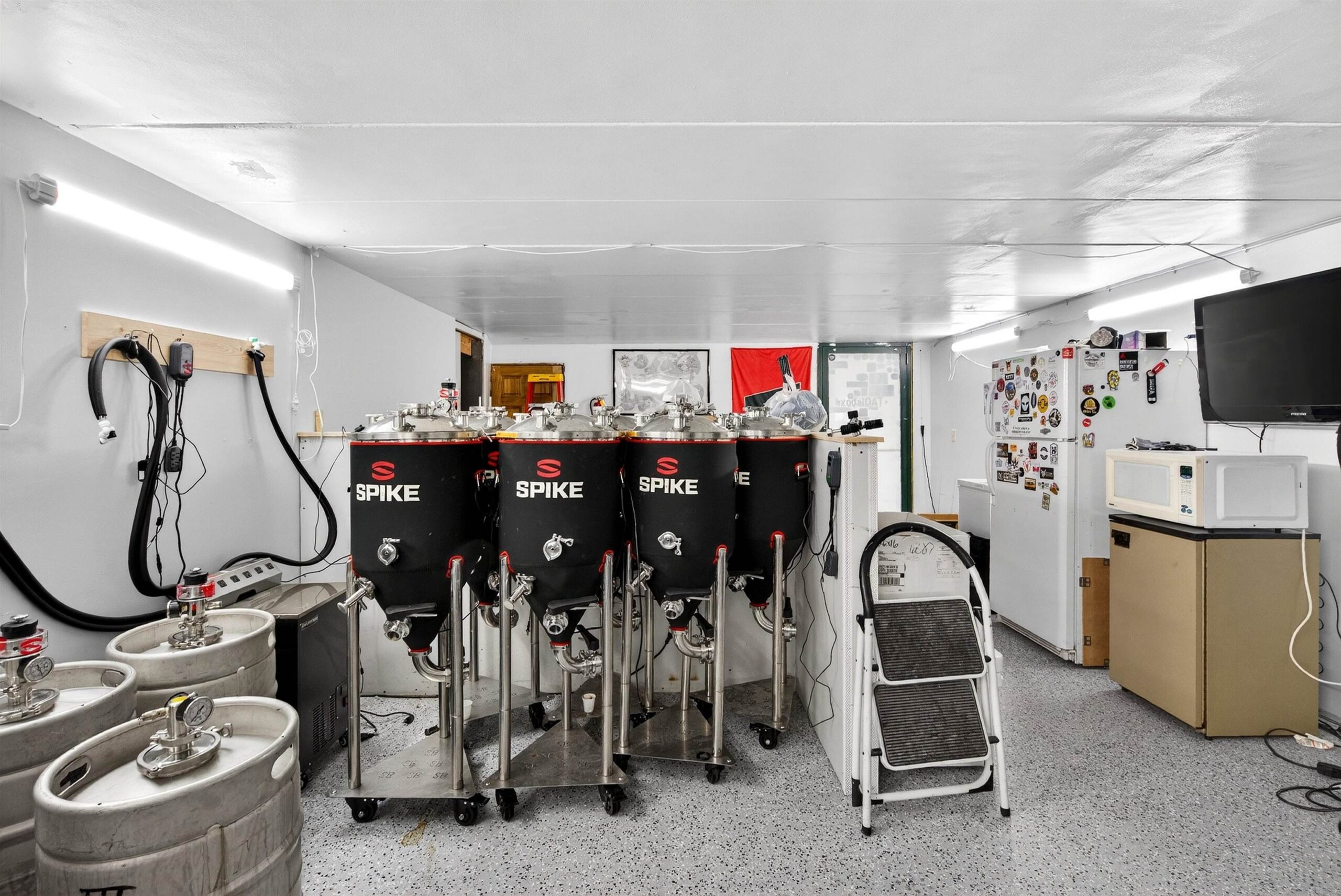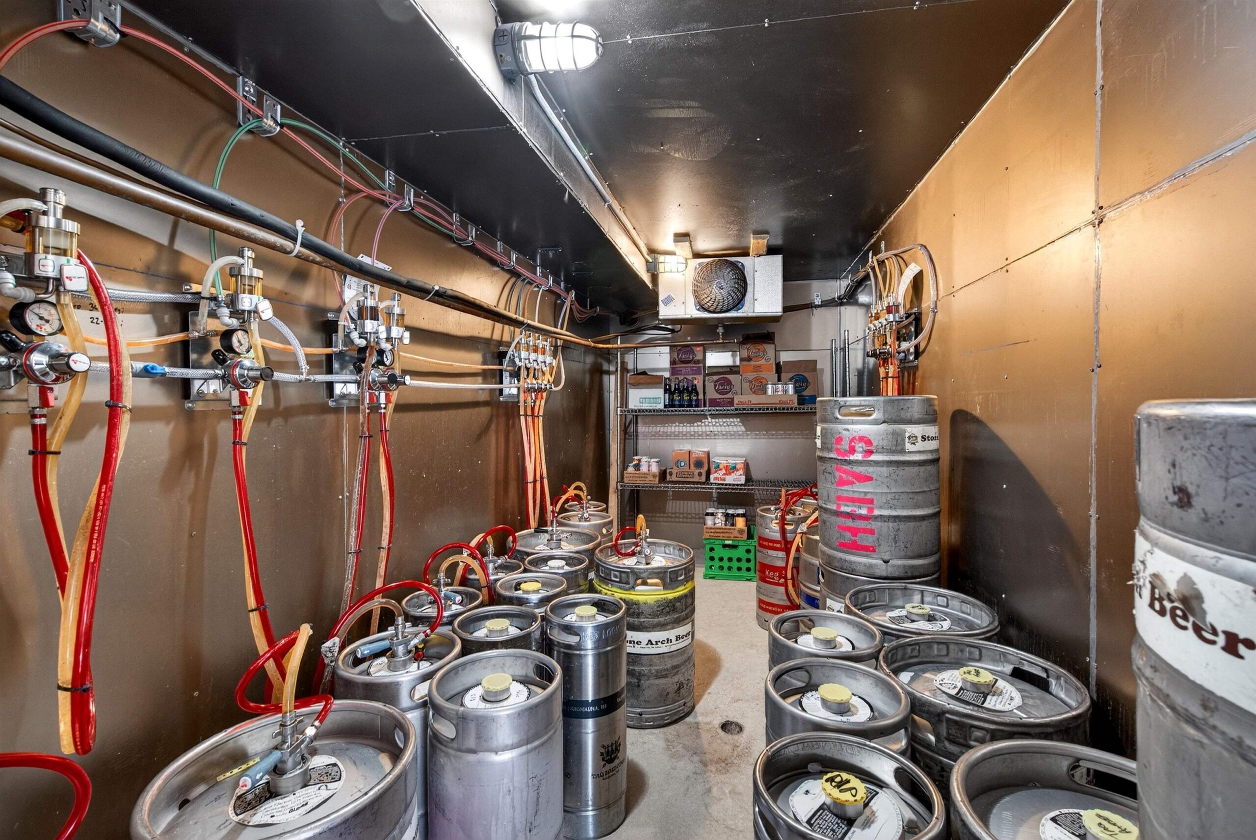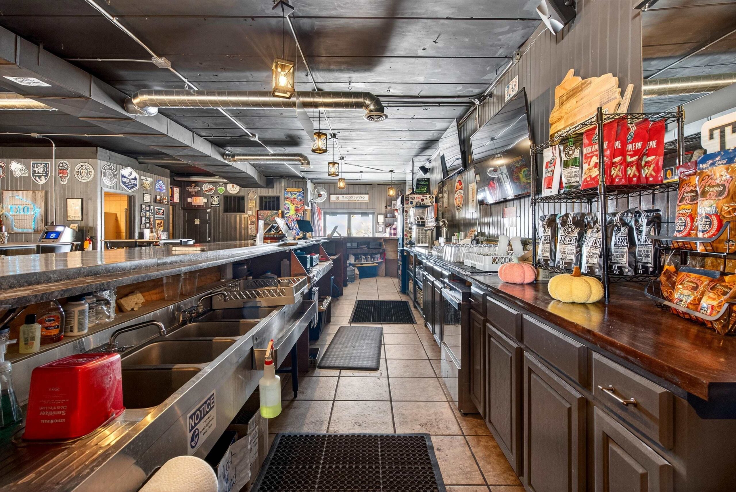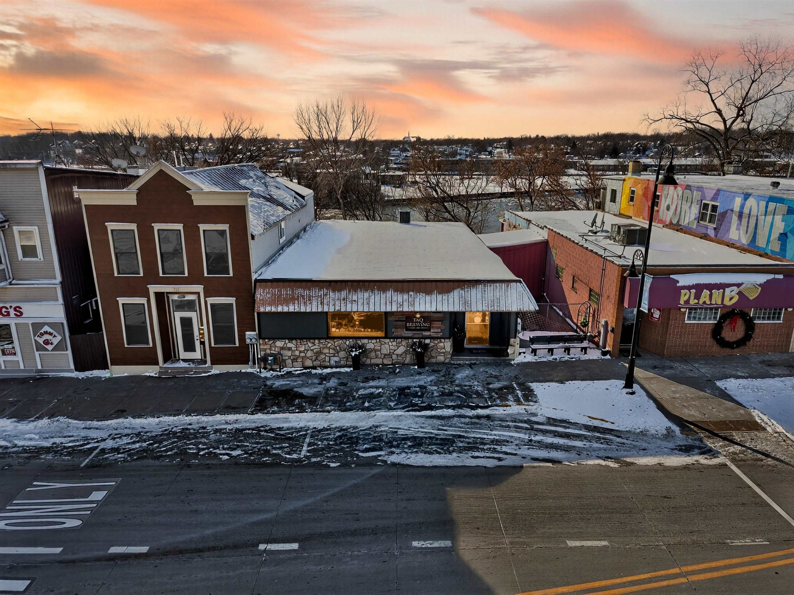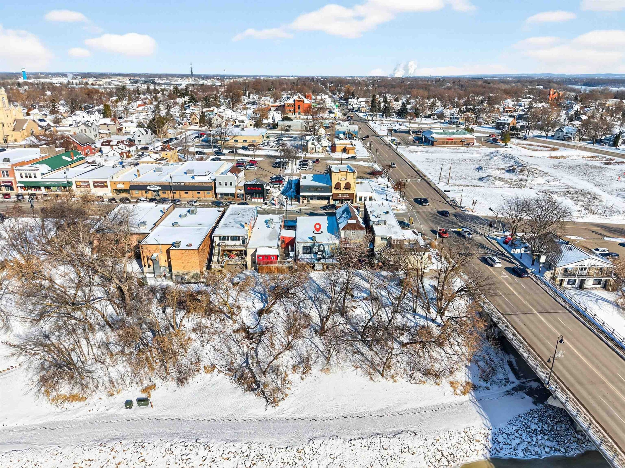 Prime commercial space in downtown Kaukauna with Fox River views. The 2,170 sq ft main level features spancrete construction, updated lighting, spiral ductwork, and an open layout. The walkout lower level adds 708 sq ft of newly finished space with epoxy flooring, a walk-in cooler, and a reverse osmosis system - ideal for food prep, storage, or continued brewing use. A newer rear deck overlooks the river, and the property includes two dedicated parking stalls plus one shared stall. Recent updates include electrical, HVAC, interior/exterior paint, and plumbing (full list available). Current tenant closes end of 2025; property will be delivered vacant. Fixtures, furniture, and equipment are available for purchase separately.