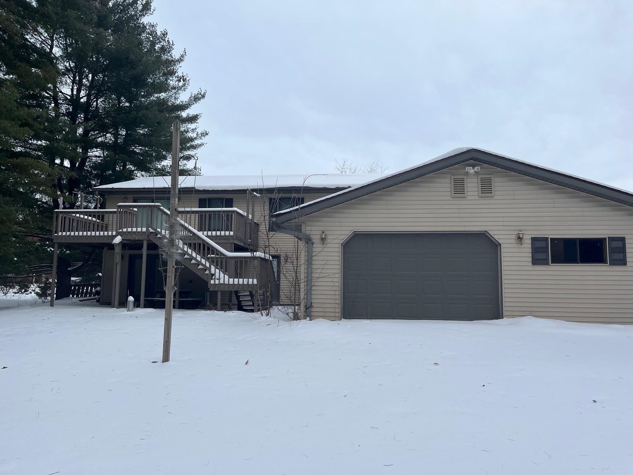 Experience the peacefulness of country living in this bi-level 3 bedroom 2 bath home located on a dead end road with 120' of frontage on the back waters of the Wolf River. Spacious upper level with open concept living room, kitchen and dinette highlight this 2600' home built in 2003. Upper level opens up to a large deck for a relaxing evening. Lower lever has bar and walk out for access to large back yard and the Wolf River. Attached 2.5 stall garage with overhead door leading to the back yard. A 12x12 storage shed is included. Roof has new shingled roof in 2023. Basement floor is painted.